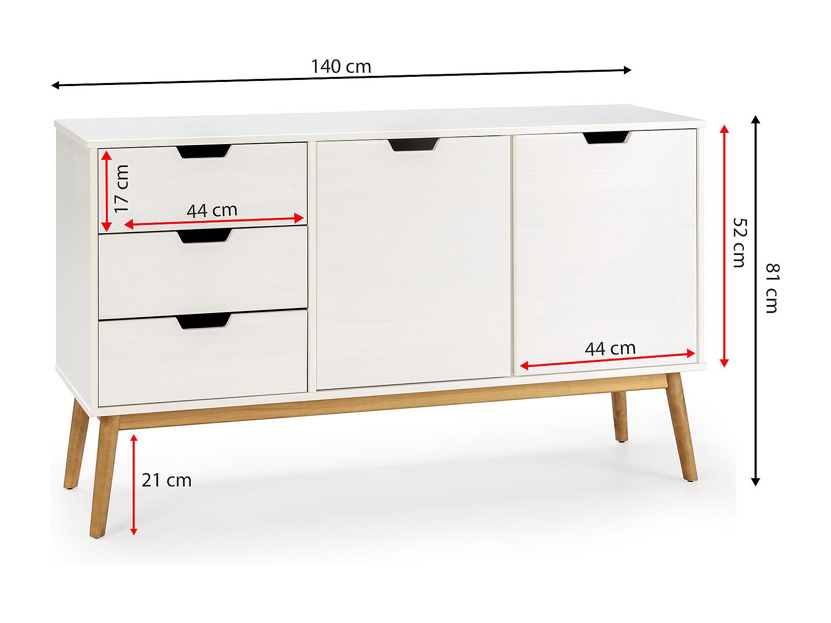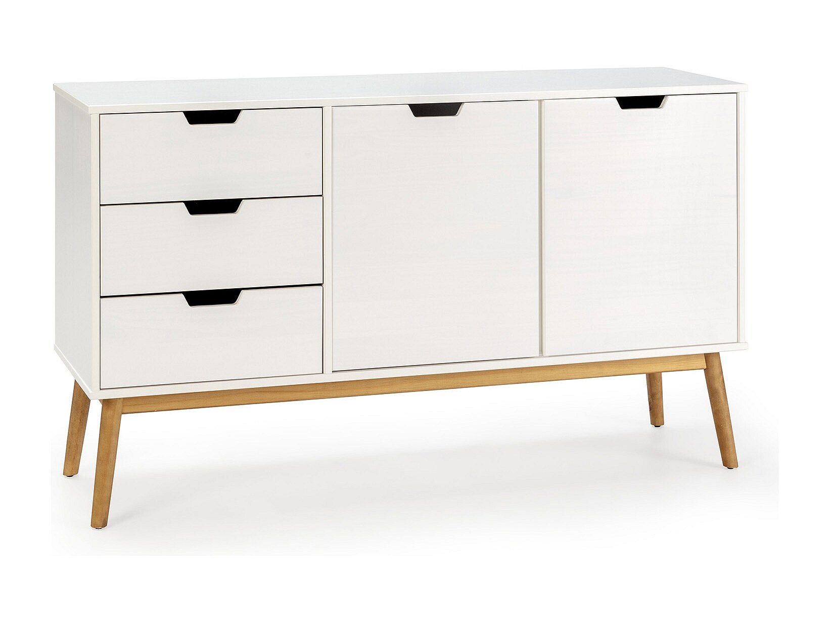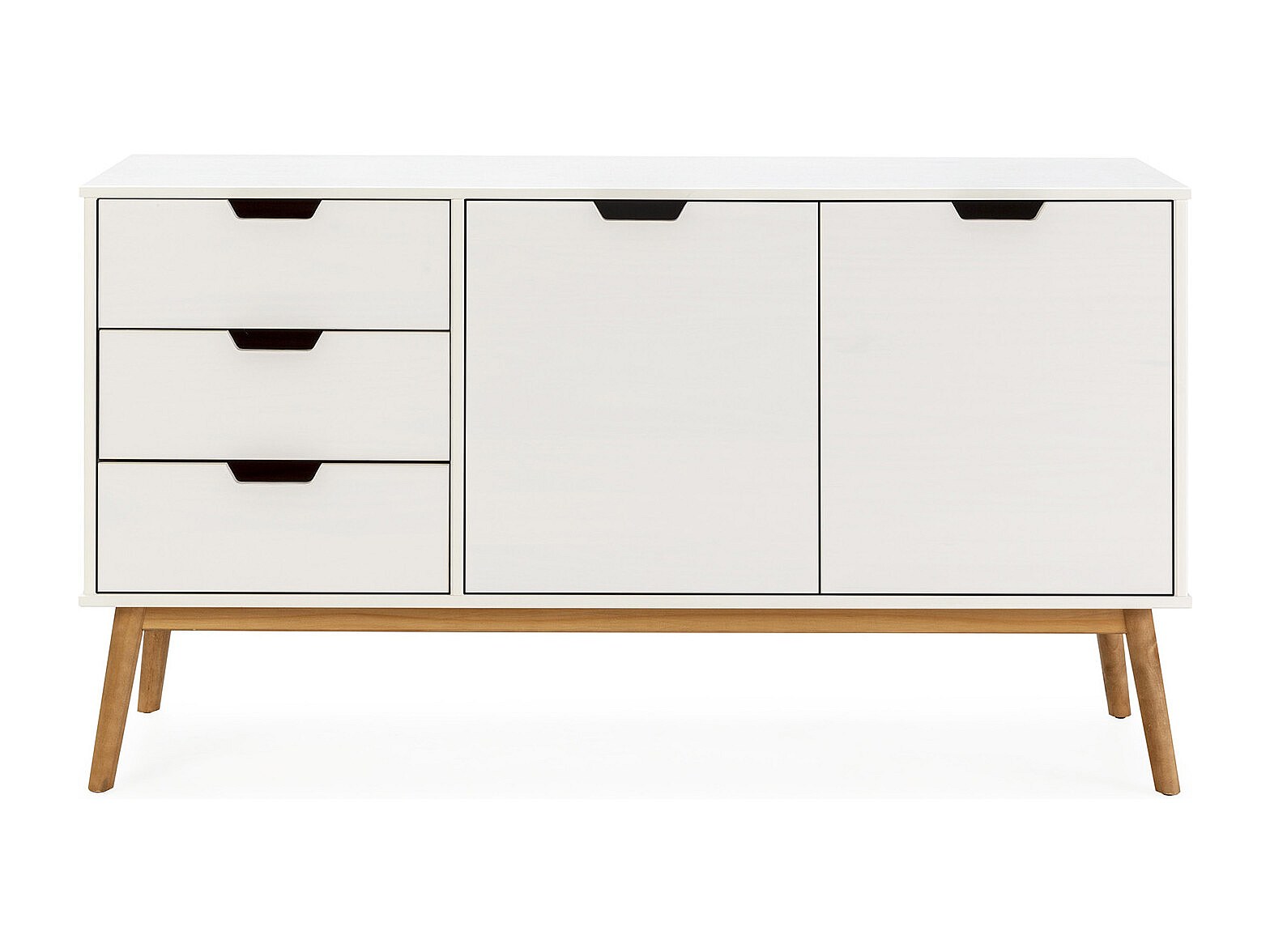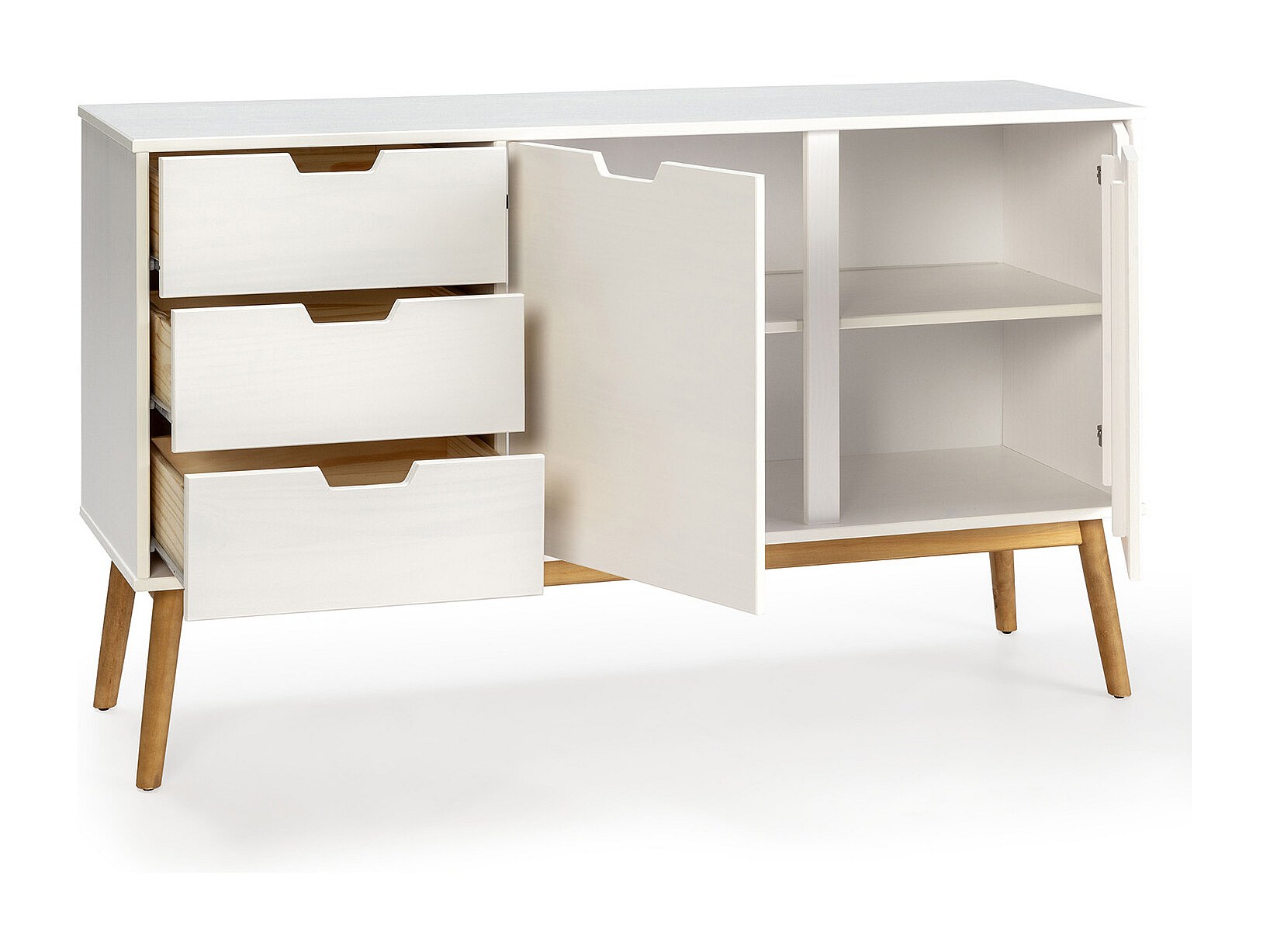 Buffet Baku 3 tiroir y 2 porte blanc, pin massif, longueur 140 cm