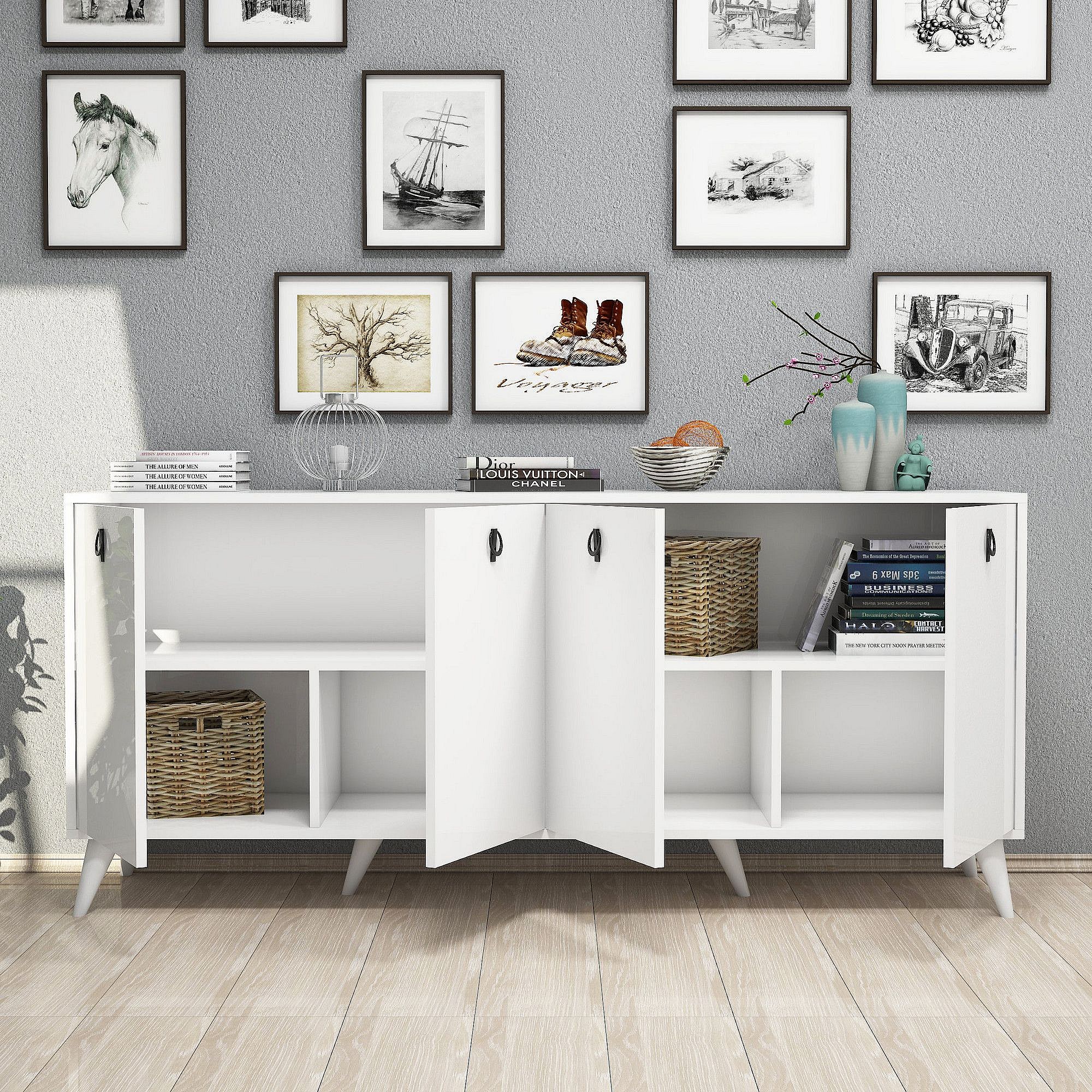 Buffet bas 4 tiroirs Bergerat 180cm Bois Blanc