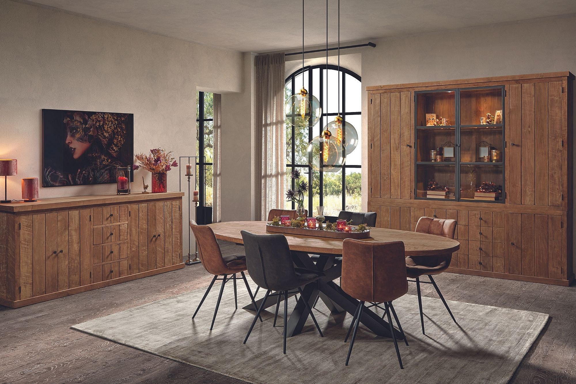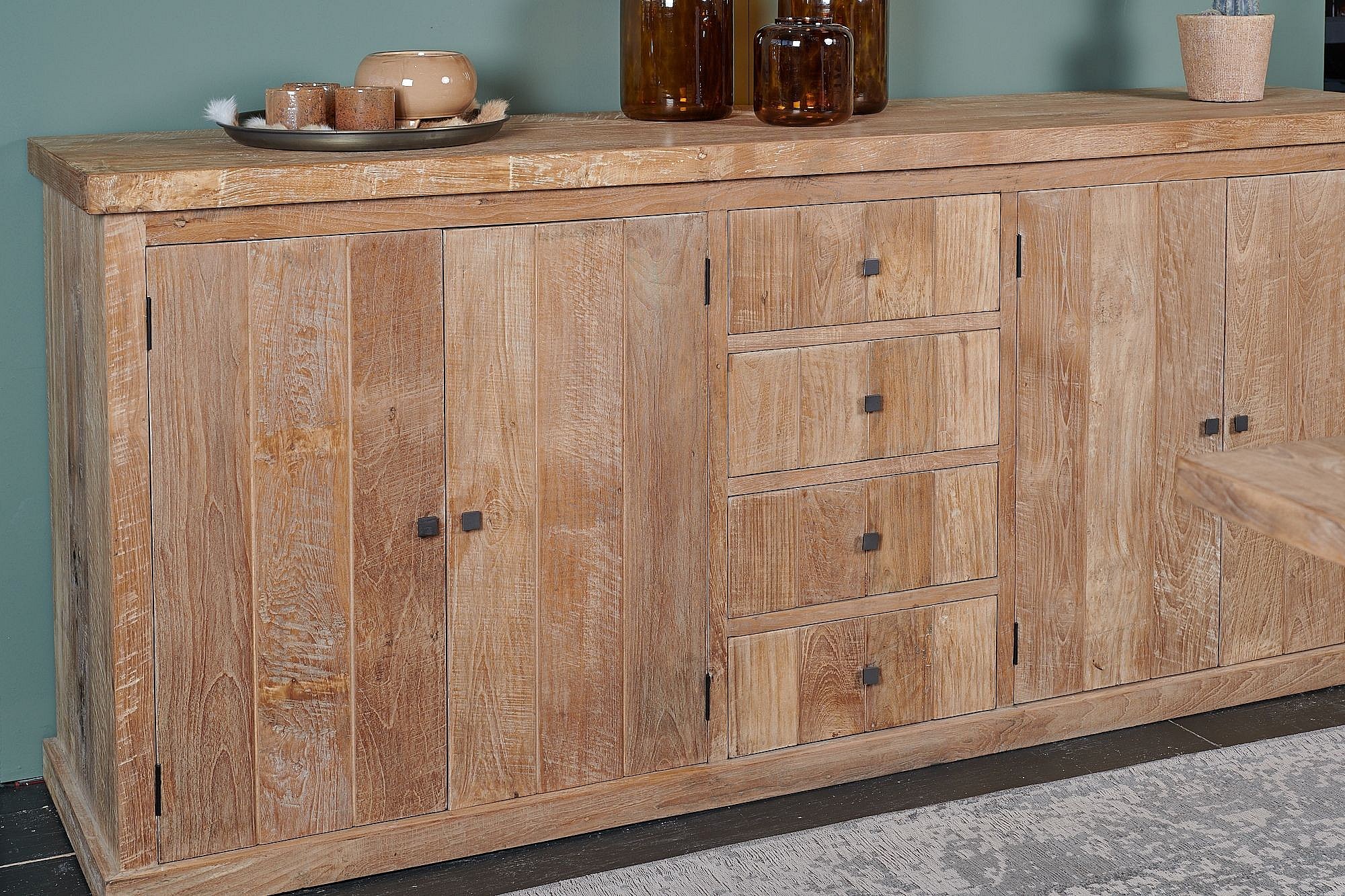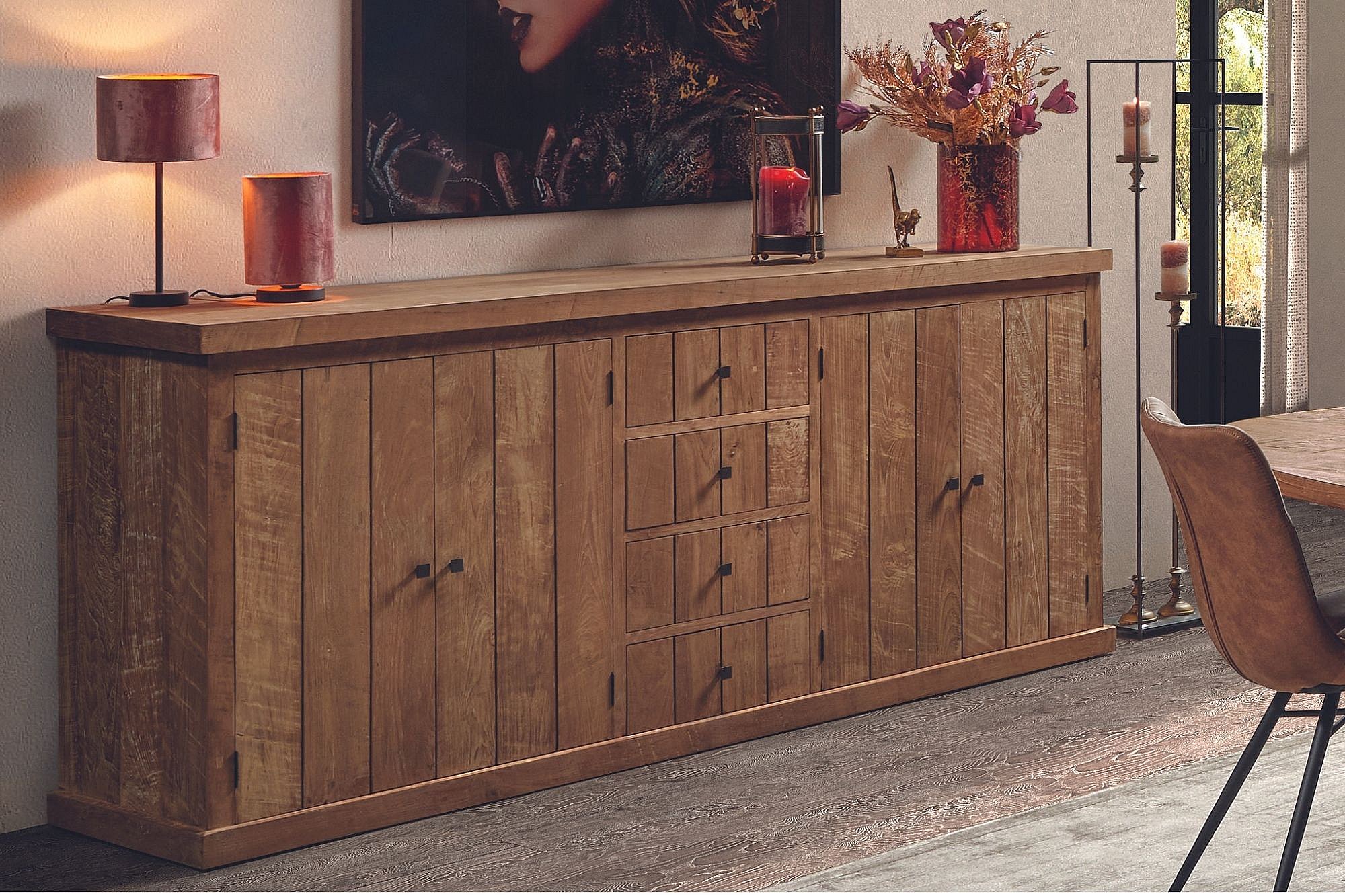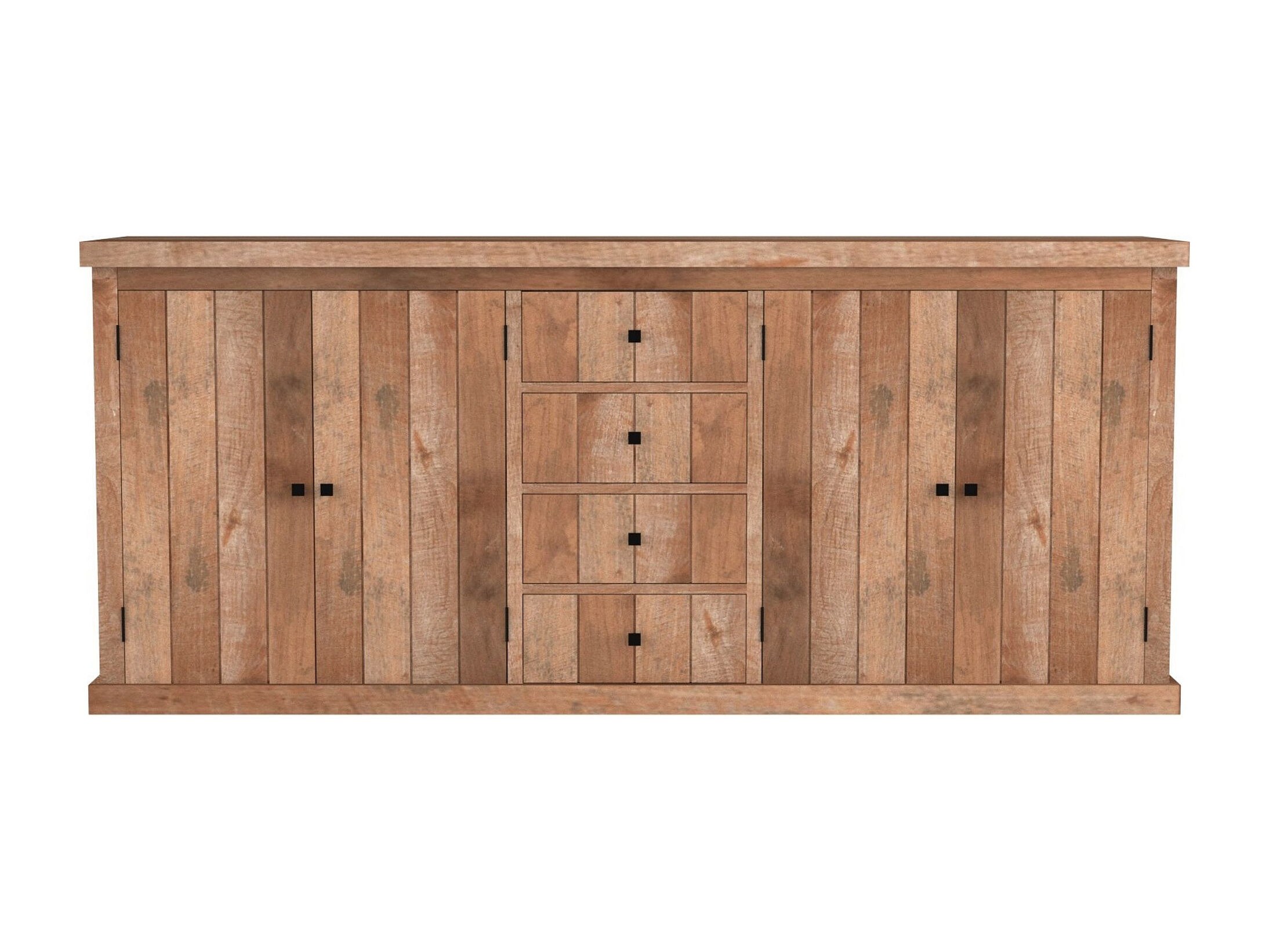 Buffet bas en bois massif recyclé 4 portes 4 tiroirs L 220 cm - LINAS