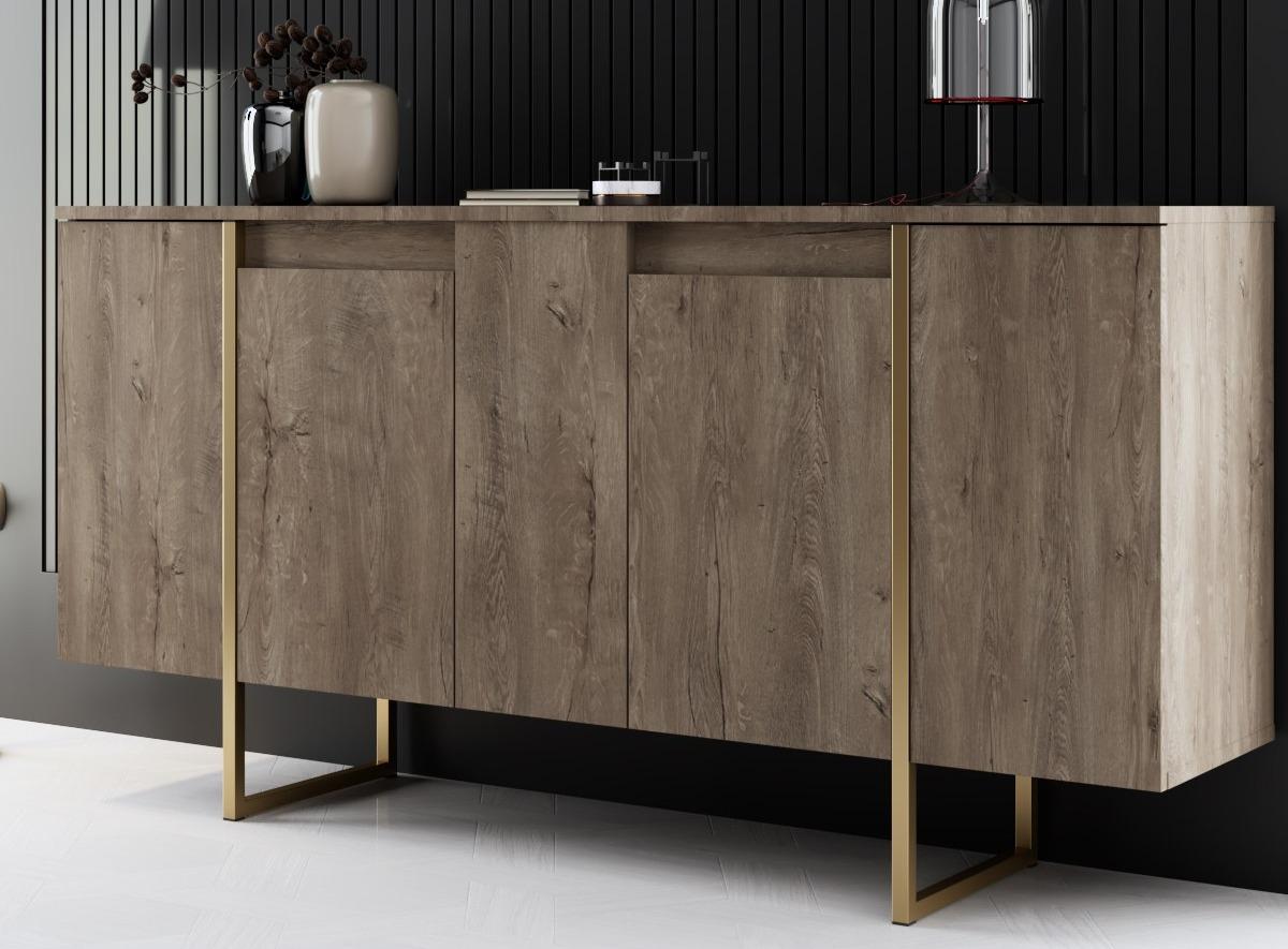 Buffet bas Sibylle L160cm Métal Or et Bois foncé