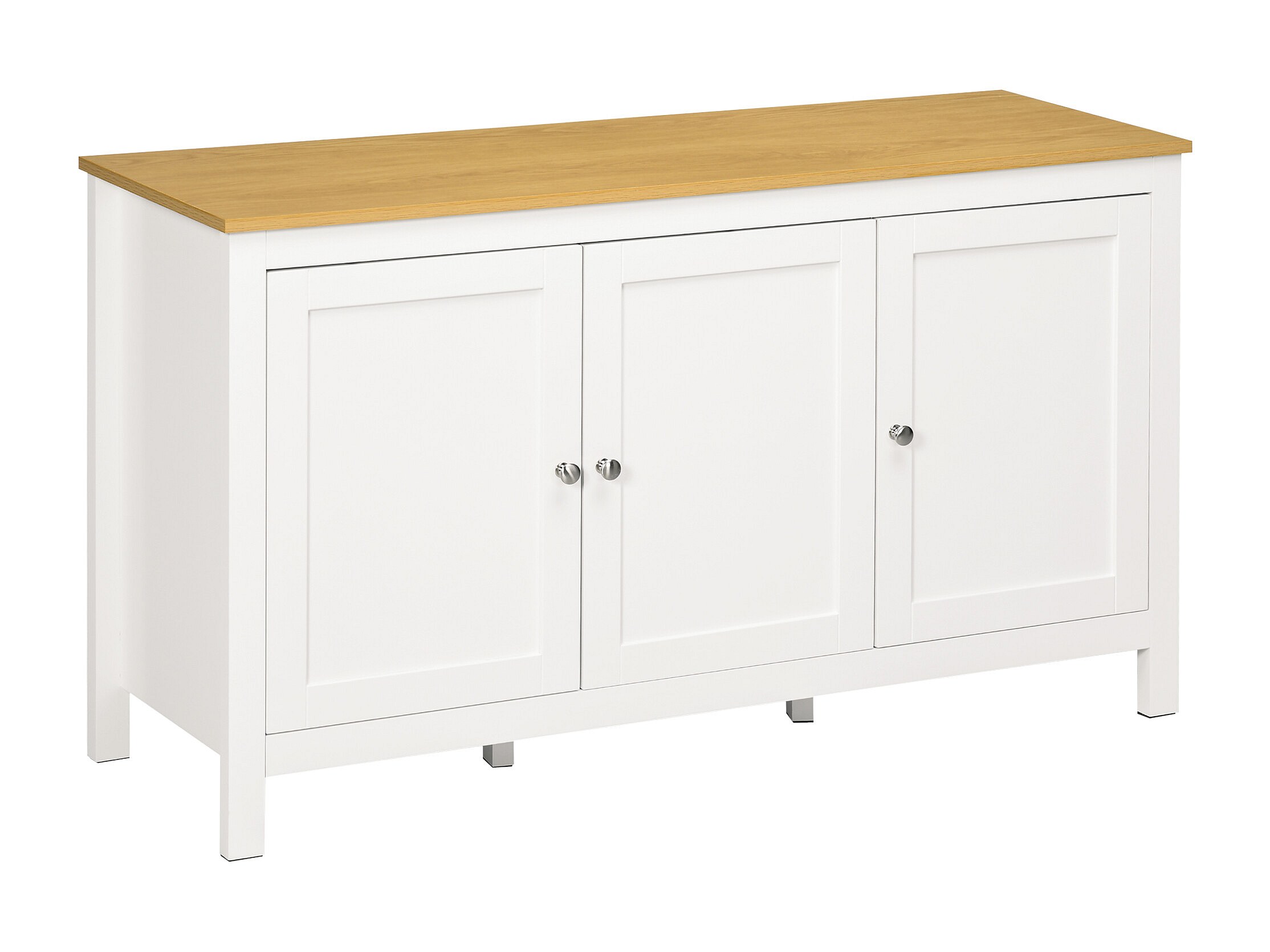 Buffet bas style classique chic - 3 portes, 2 étagères réglables - MDF panneaux blanc aspect bois clair