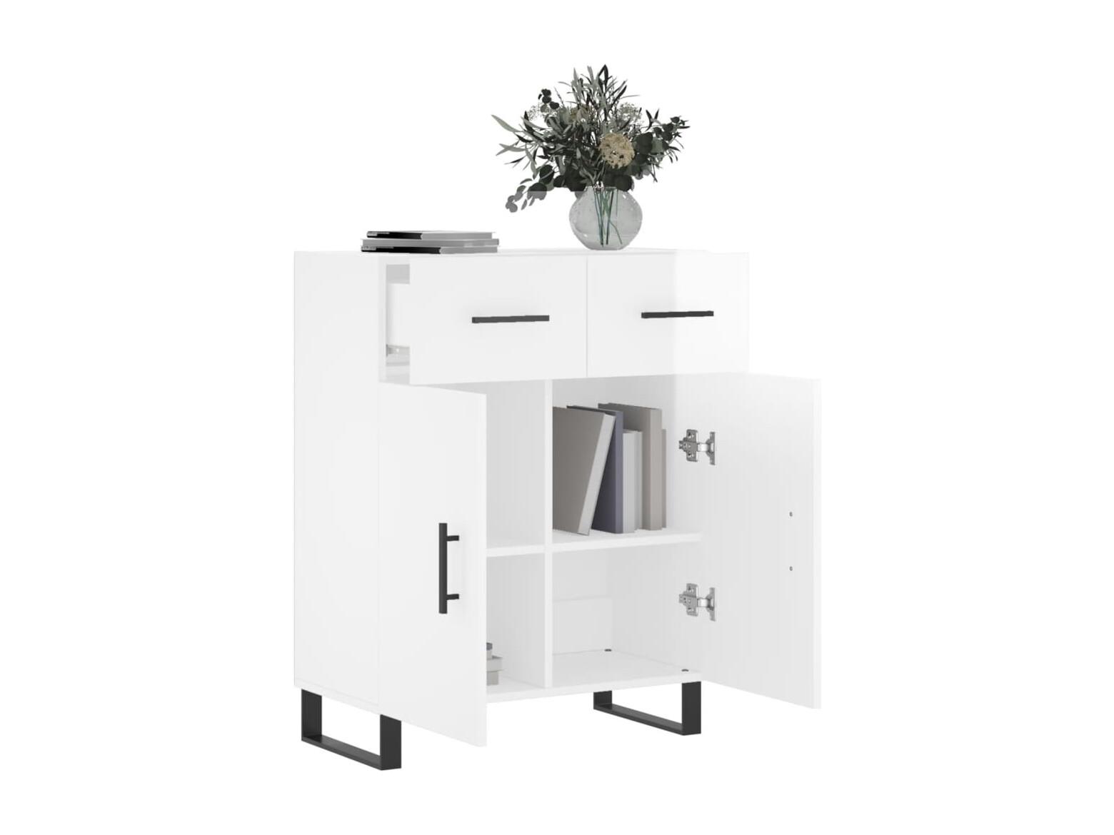 Buffet Blanc brillant 69,5x34x90 Bois d'ingénierie