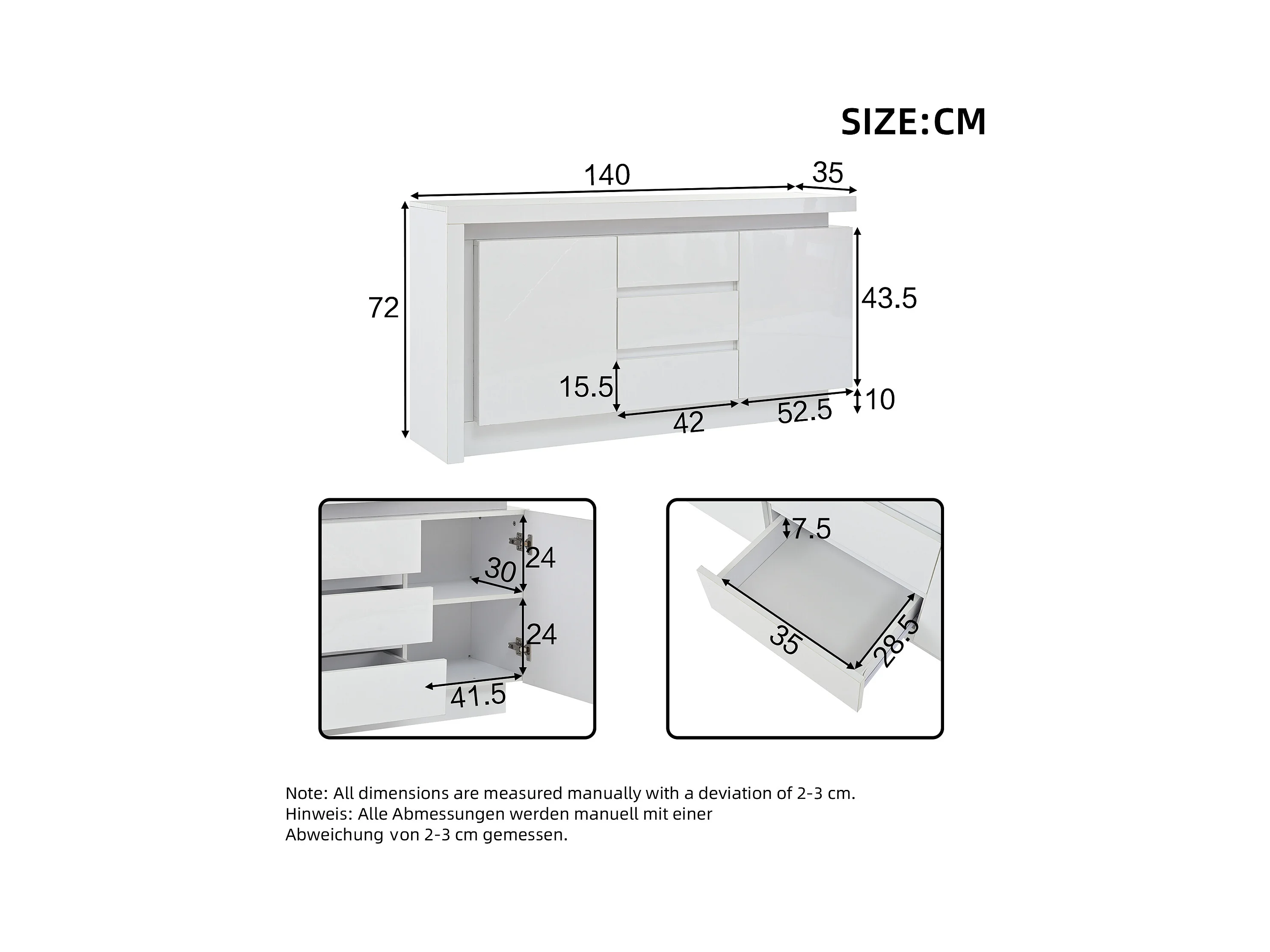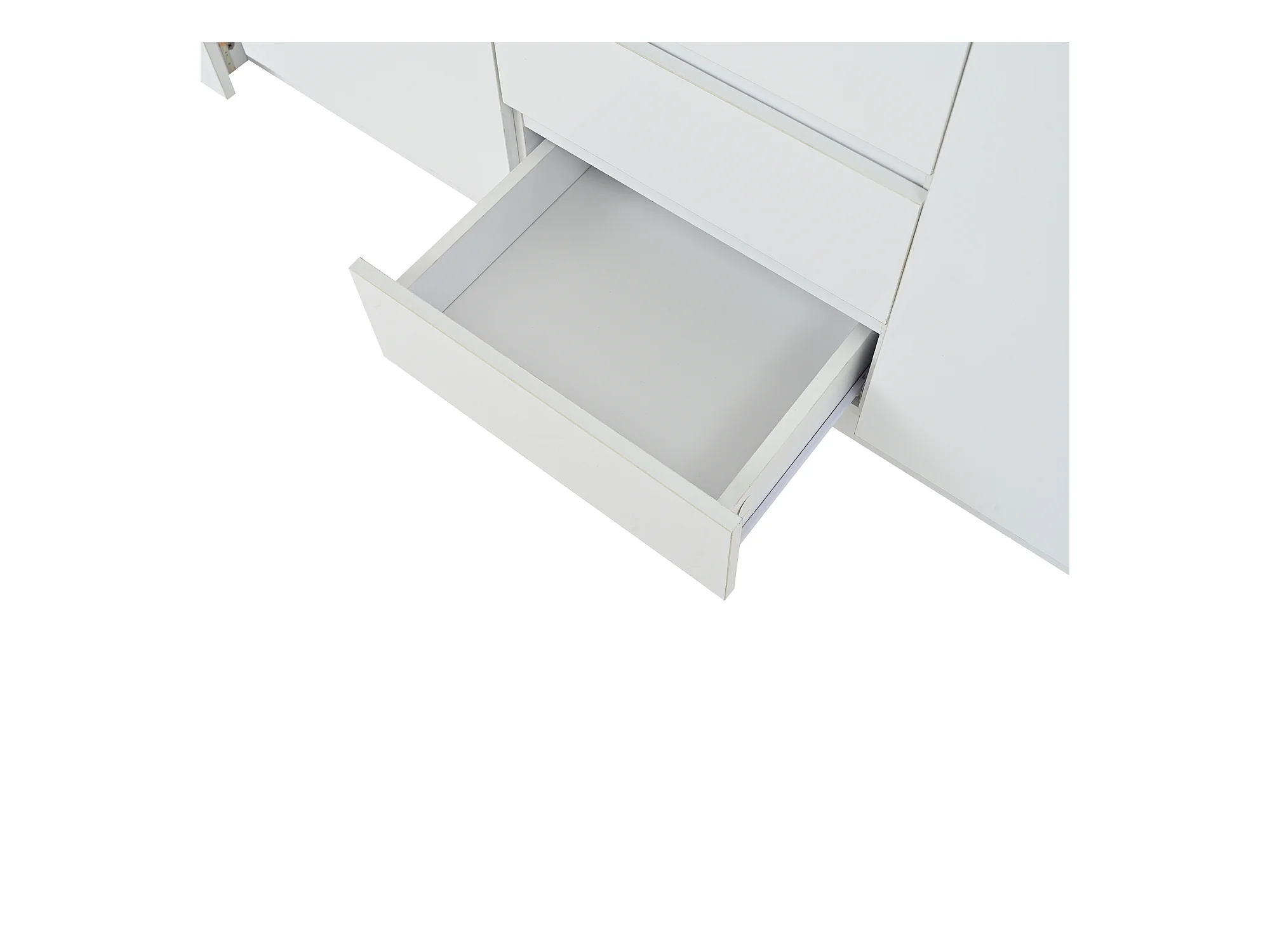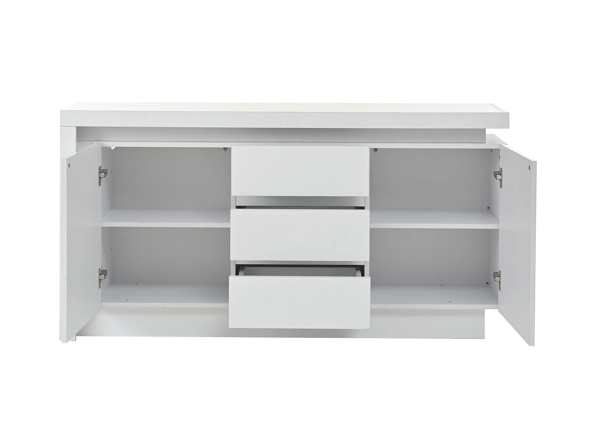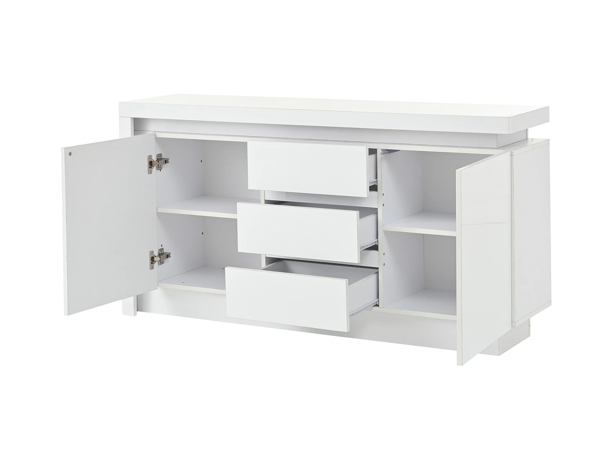 Buffet blanc brillant à 3 tiroirs - Buffet à 2 portes avec éclairage LED - etagères réglables