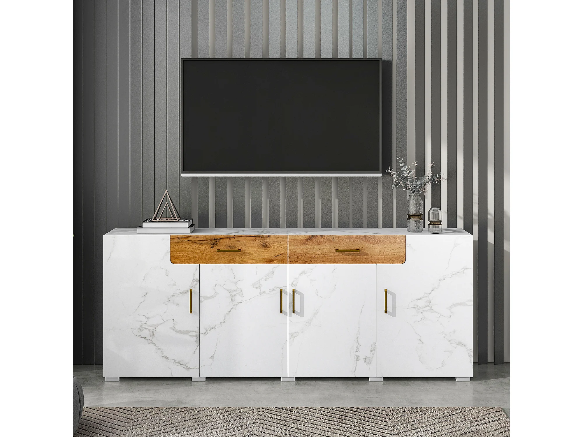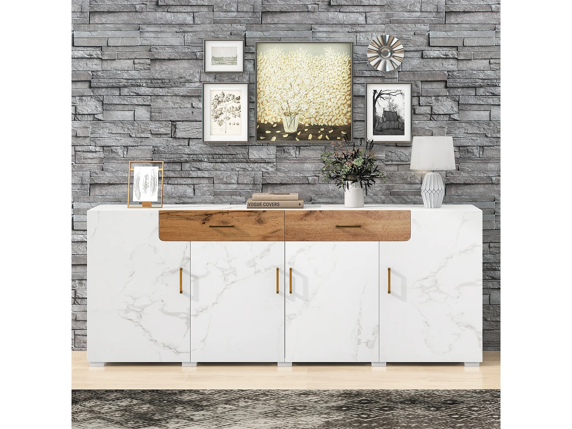 Buffet blanc effet marbre 4 portes 2 tiroirs 208x39,5x80cm ELAD