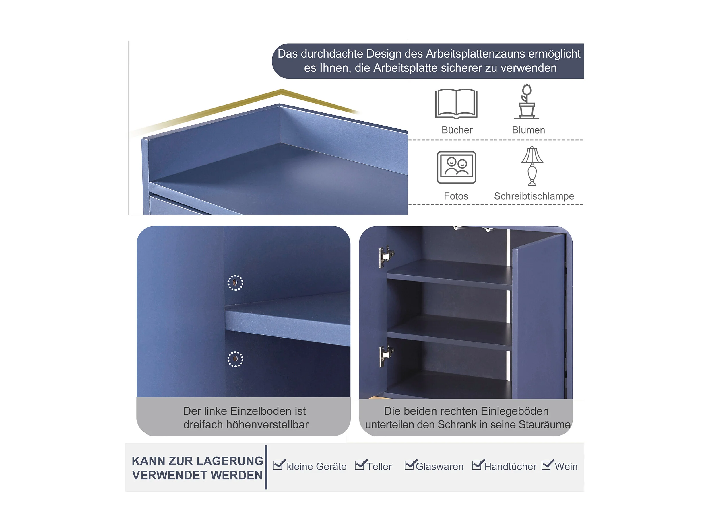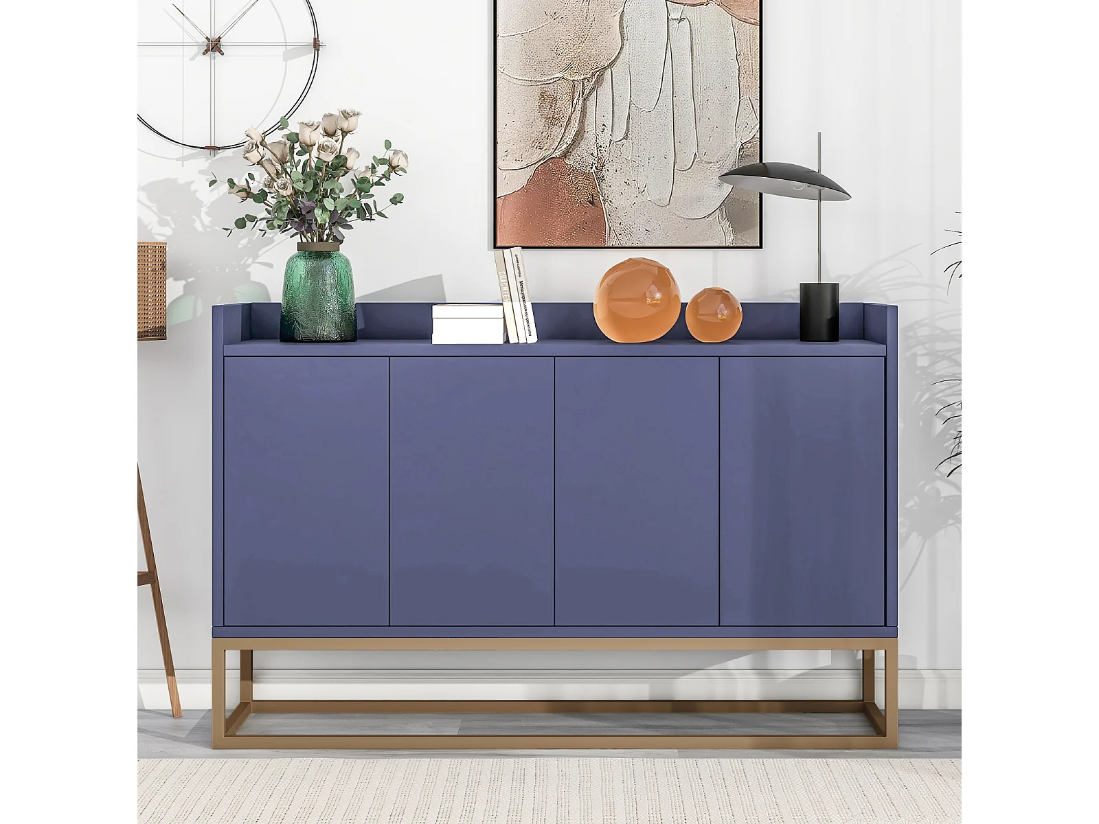 Buffet,Buffet moderne minimaliste avec 4 portes et cadre en métal pour salle à manger, salon, cuisine,bleu