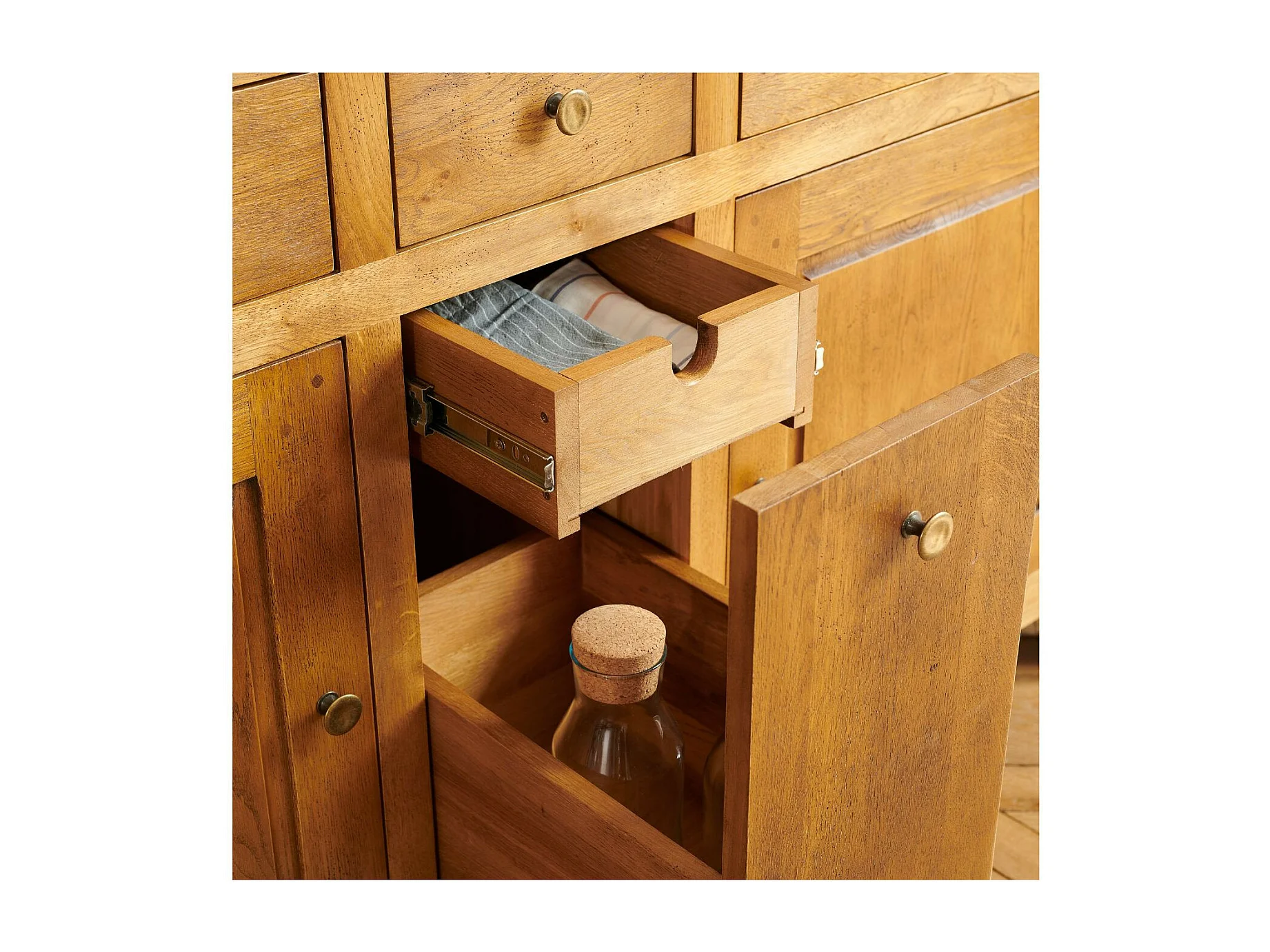 Buffet campagne 2 portes 4 tiroirs en chêne massif - KATELL