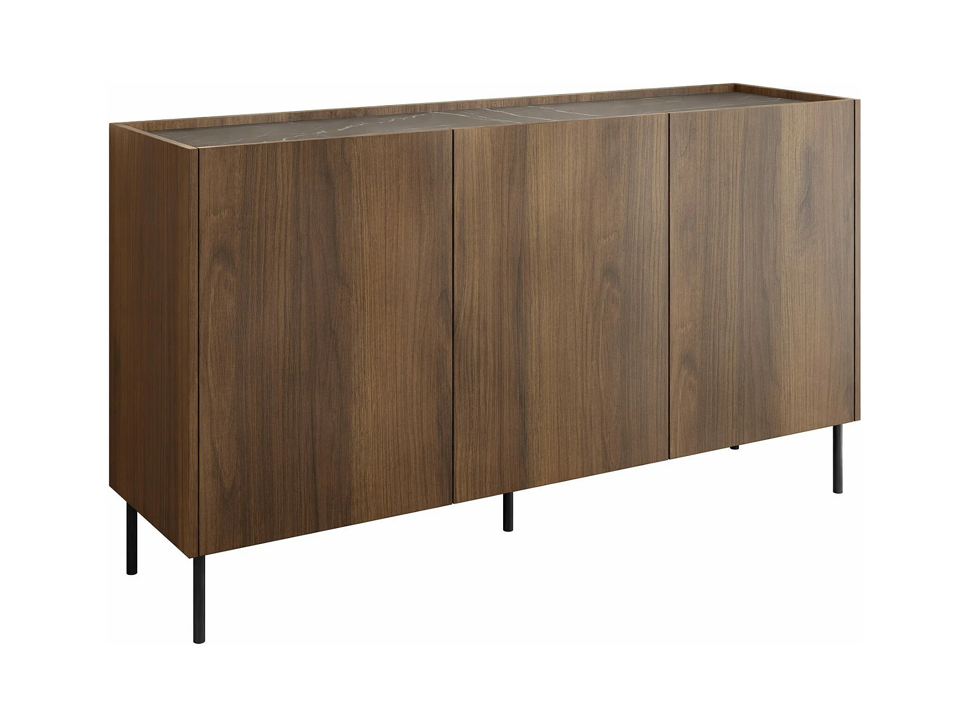 Buffet Comfivo Belviro 100, Noyer|Marbre noir, 78x144x37cm, Stratifié
