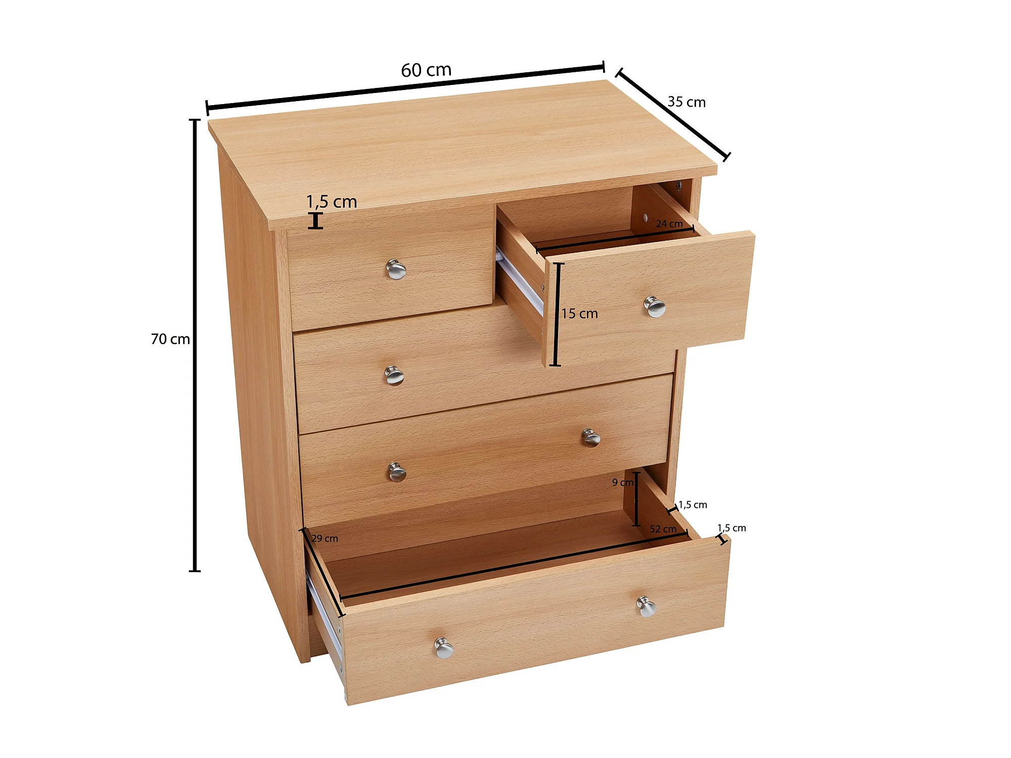 Buffet Commode 60x70x35cm avec 5 tiroirs Bois Étagère fermée Armoire