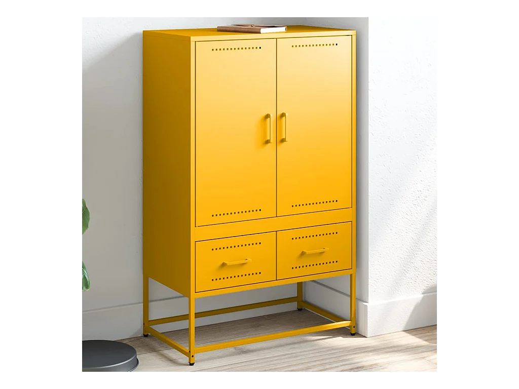 Buffet | Commode à tiroir | Meuble de rangement haut jaune moutarde 68x39x111,5 cm acier