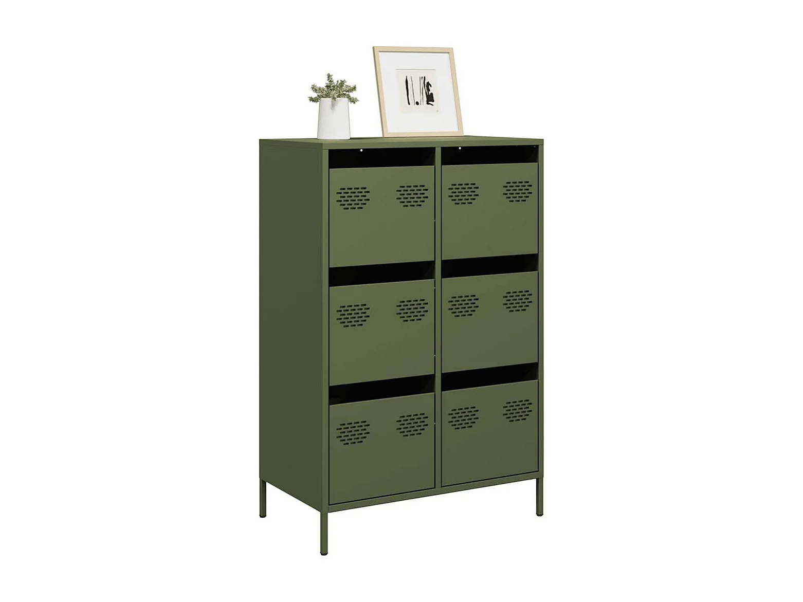 Buffet | Commode à tiroir | Meuble de rangement haut vert olive 68x39x101,5 cm acier