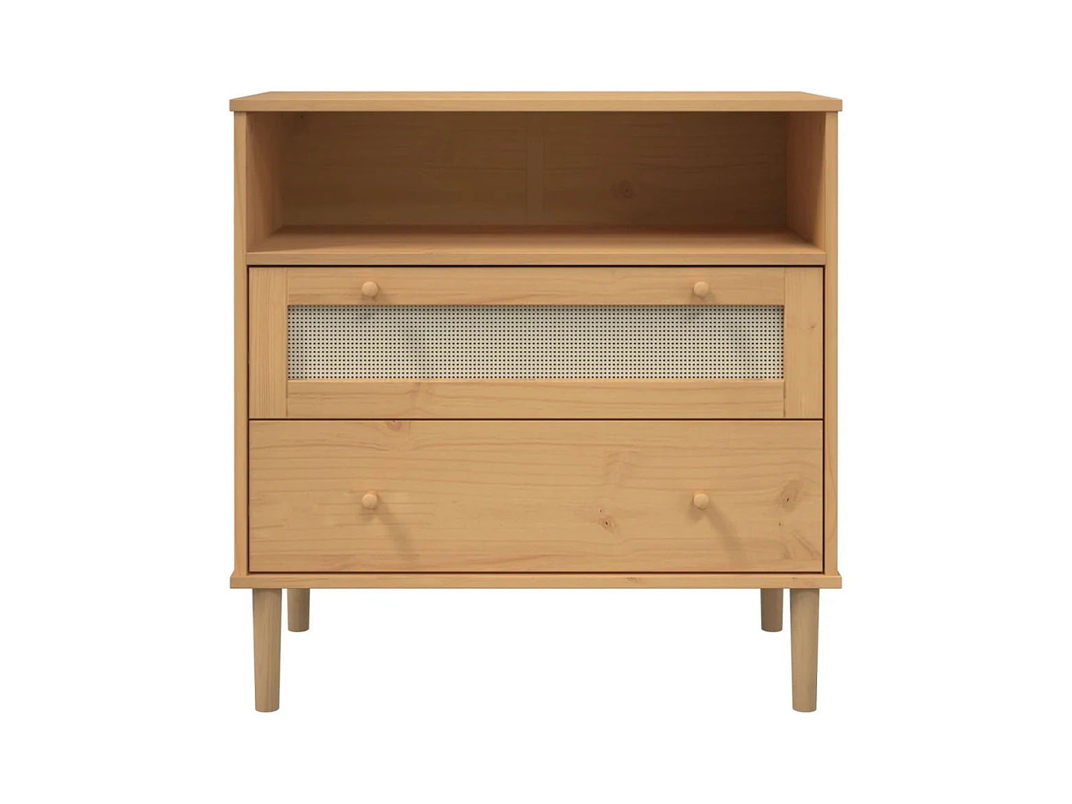 Buffet | Commode à tiroir | Meuble de rangement SENJA aspect rotin marron 80x40x80 cm bois massif de pin