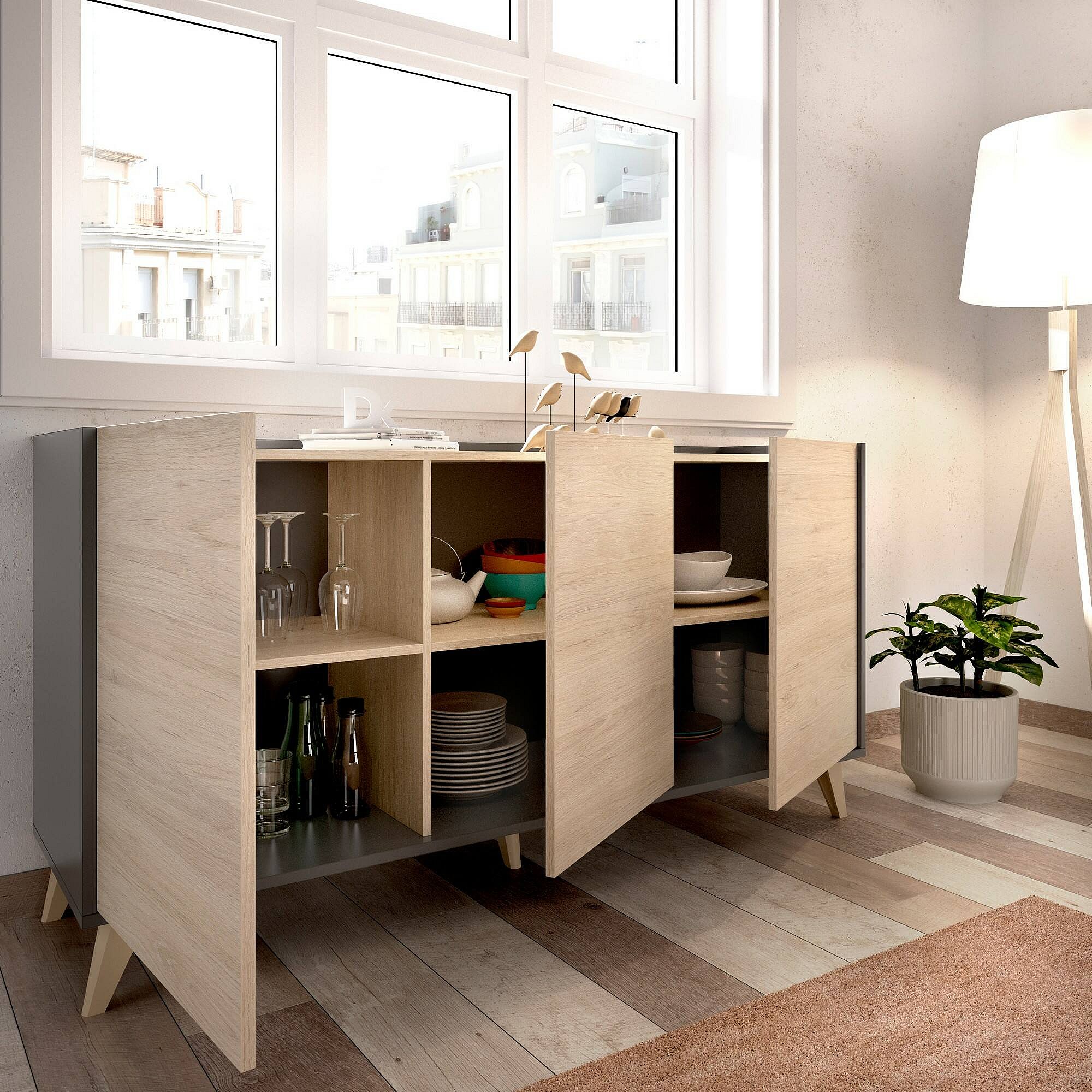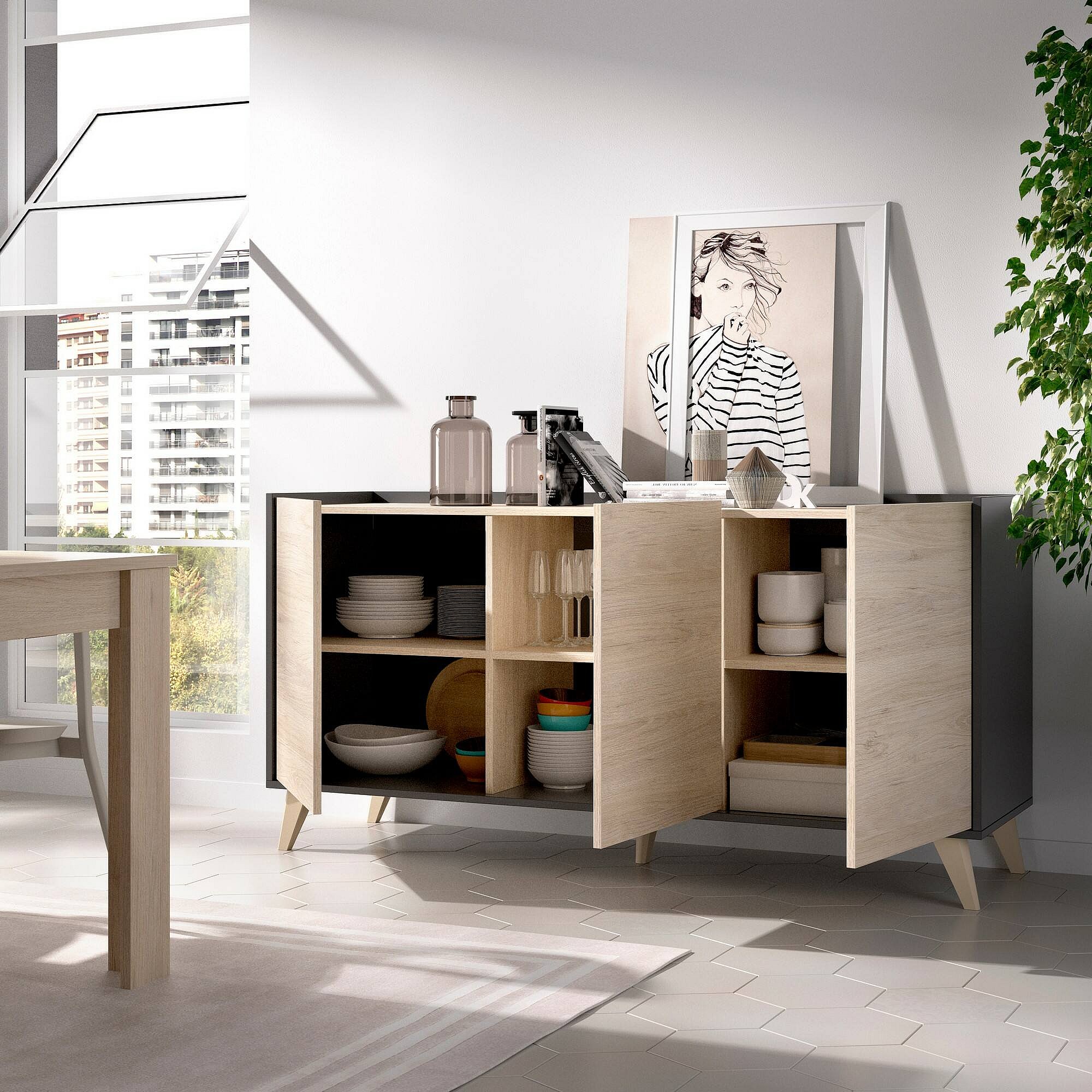 Buffet Dadop-vous, Buffet de salon, Buffet de salon moderne avec 3 portes, 155x43h75 cm, Chêne et Anthracite