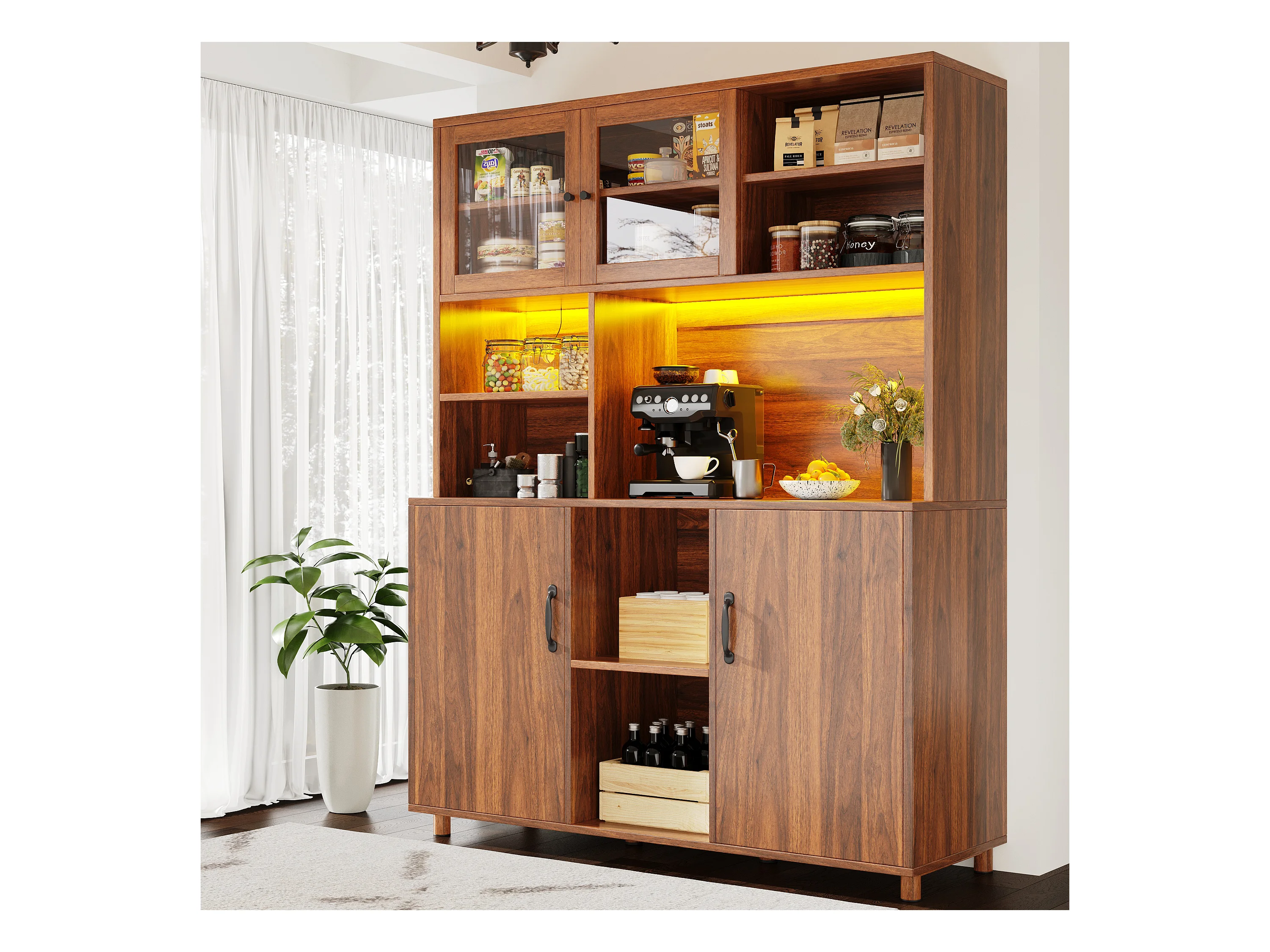Buffet de cuisine 120x40x185cm - 2 portes - avec éclairage LED - meuble haut - buffet polyvalent - Marron