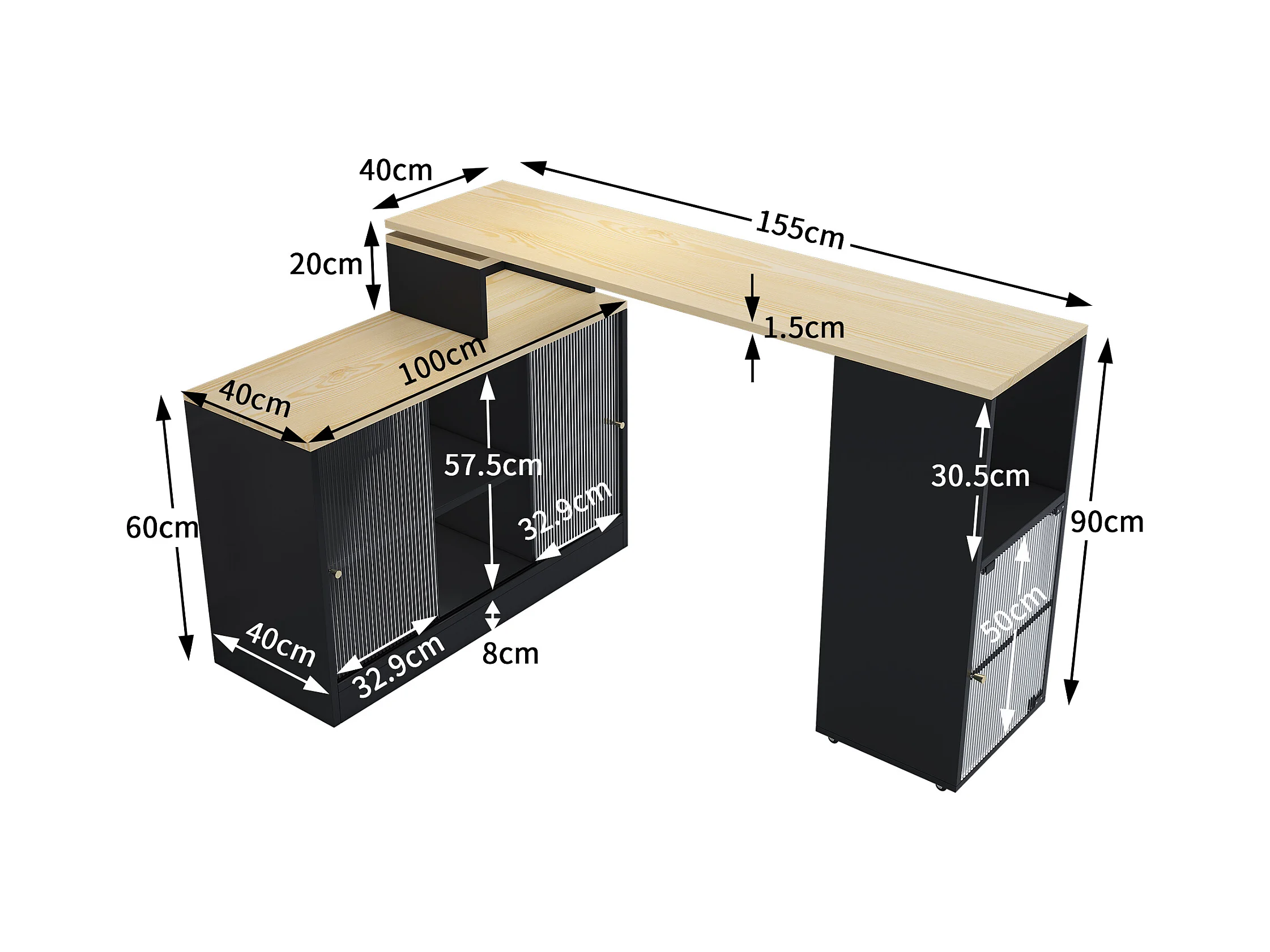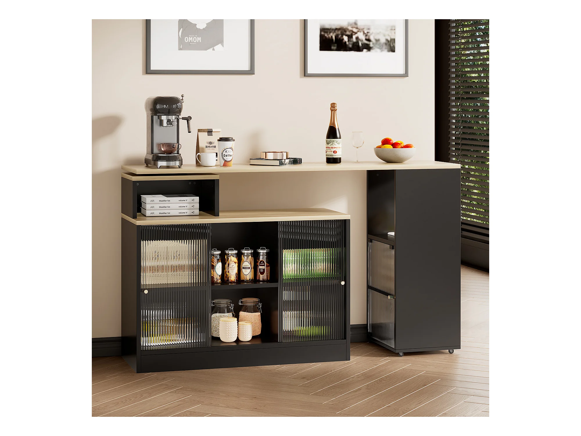 Buffet de Cuisine(155x100x90cm) Extensible 3-en-1 avec Rangements et Roulettes - noir