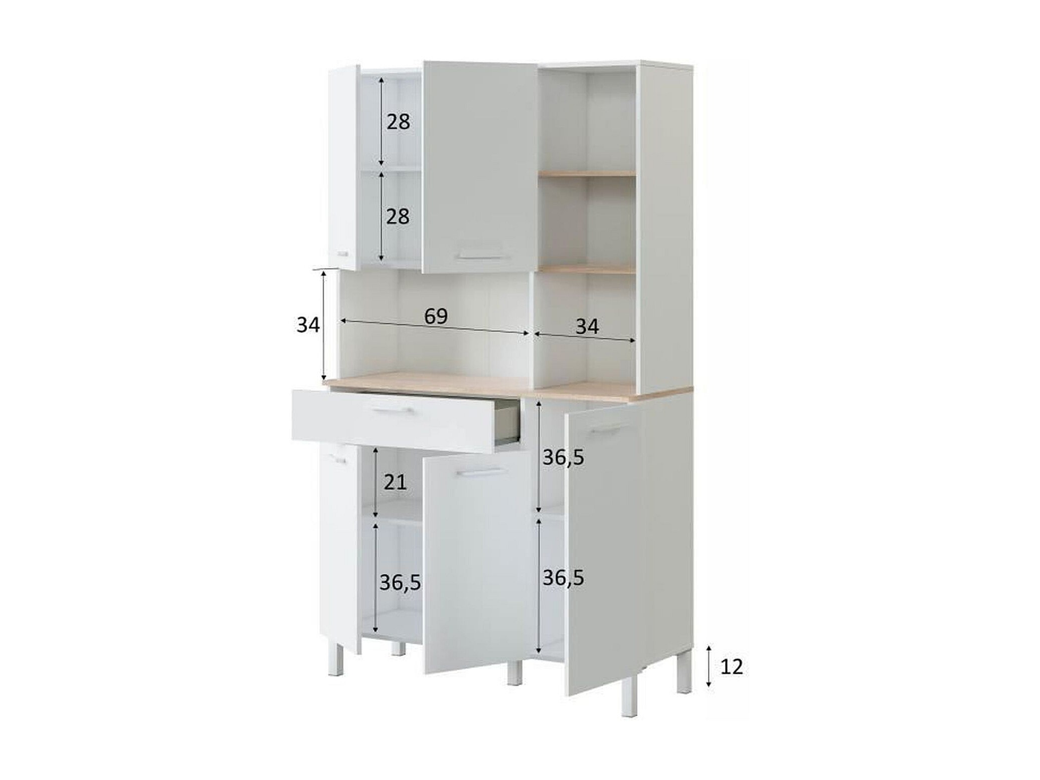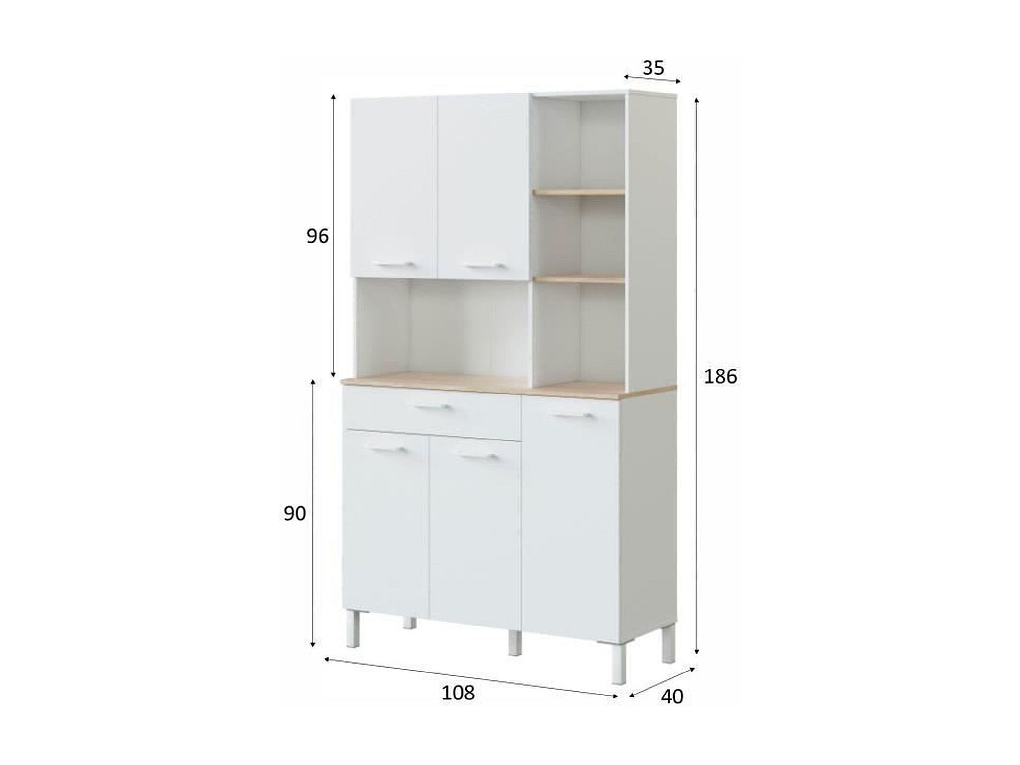 Buffet de cuisine 5 portes et 1 tiroir Kira - H186 cm