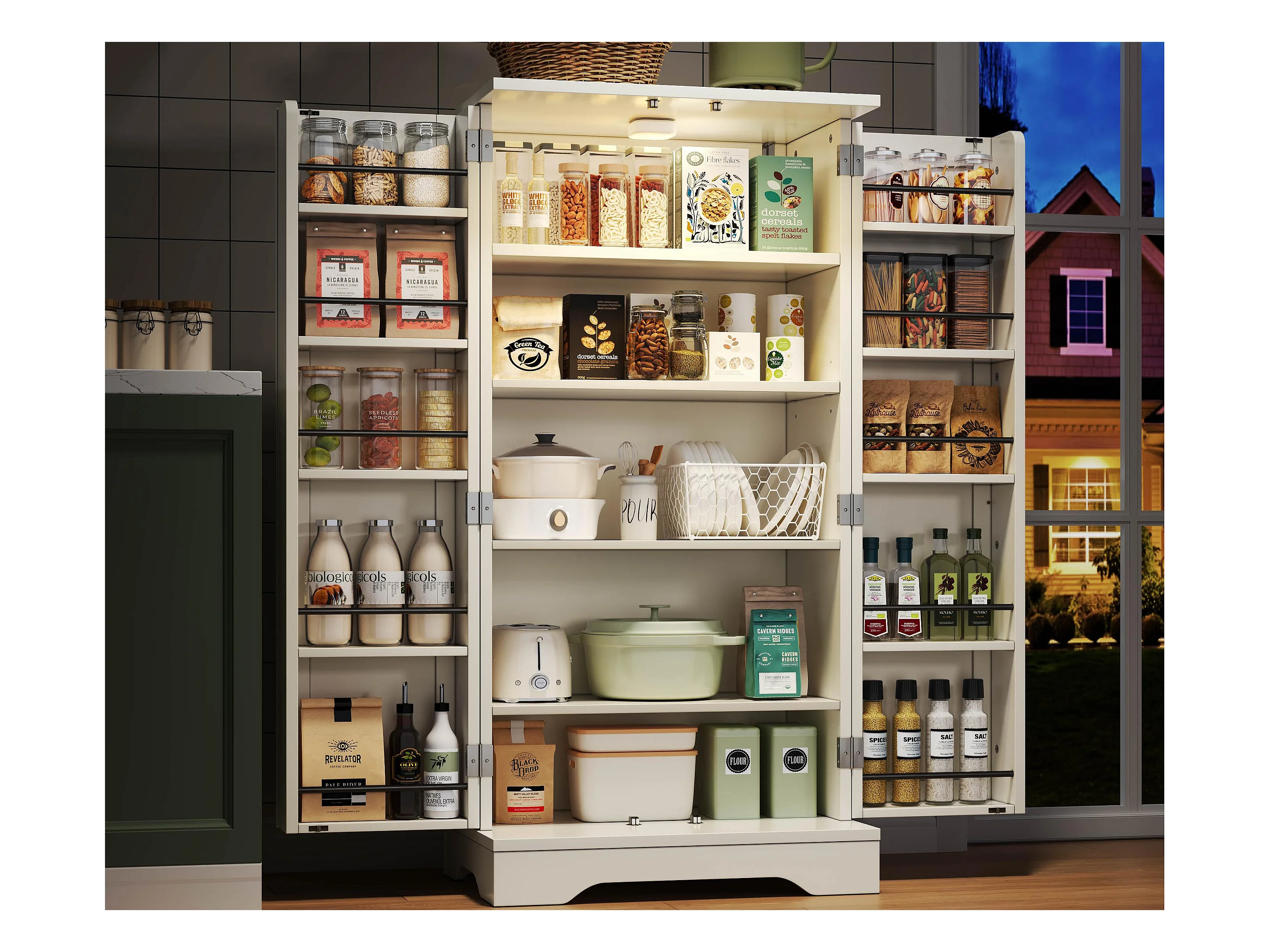 Buffet de cuisine 60x40x120cm - avec capteur de lumière LED - avec 4 portes - avec étagères - Blanc