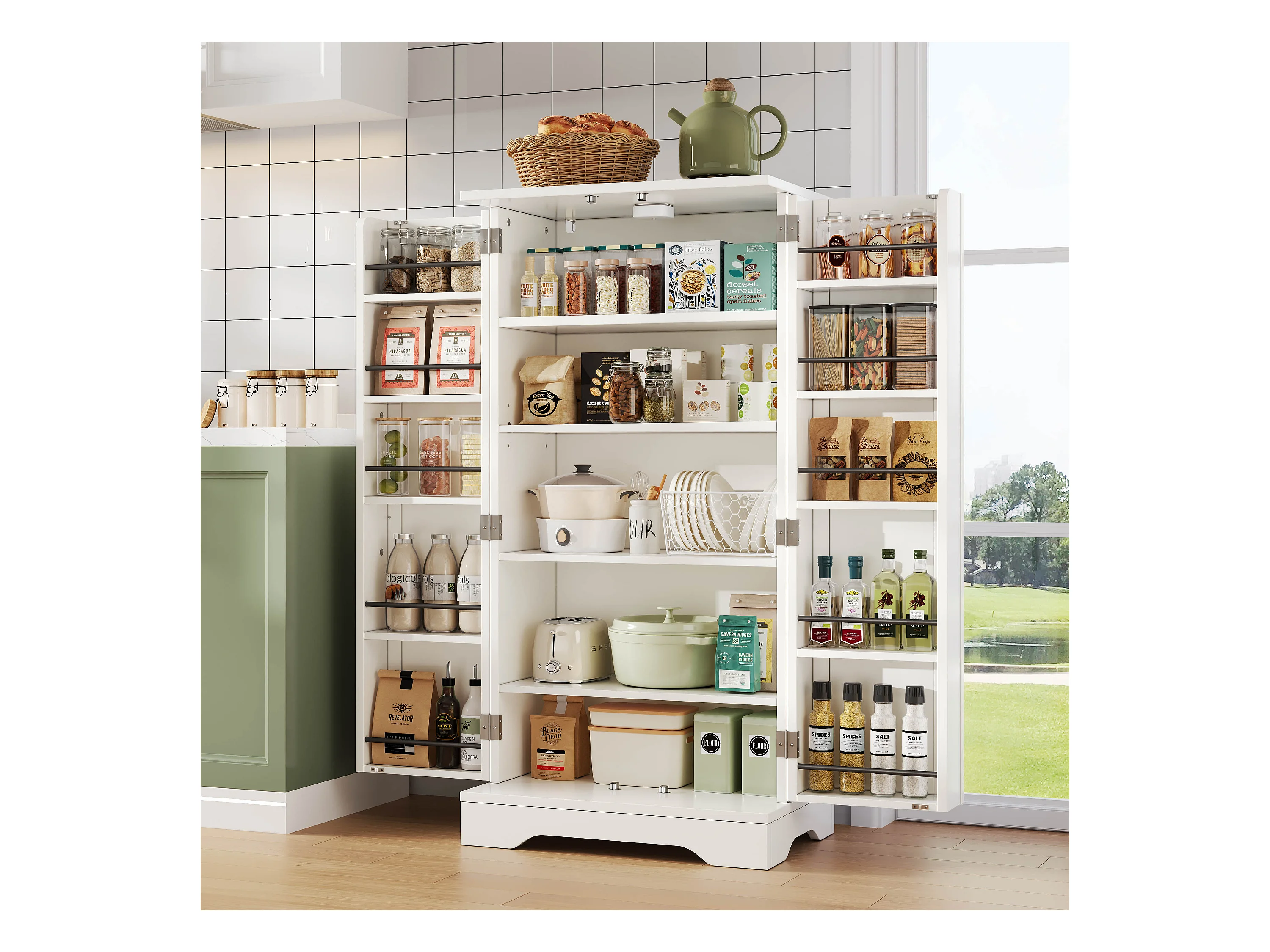 Buffet de cuisine 80x40x182cm - avec 2 portes et 1 tiroir - 2 portes avec étagères - Blanc