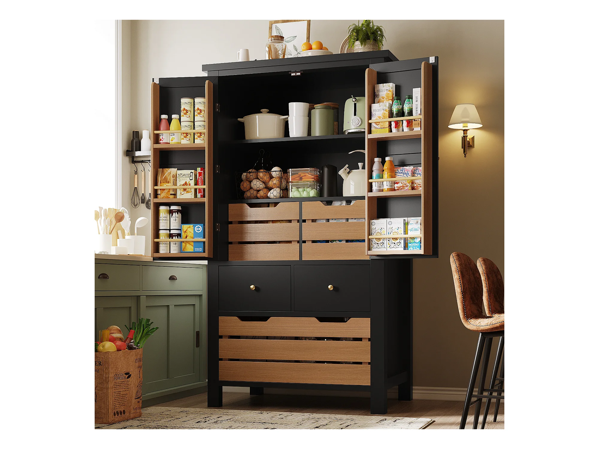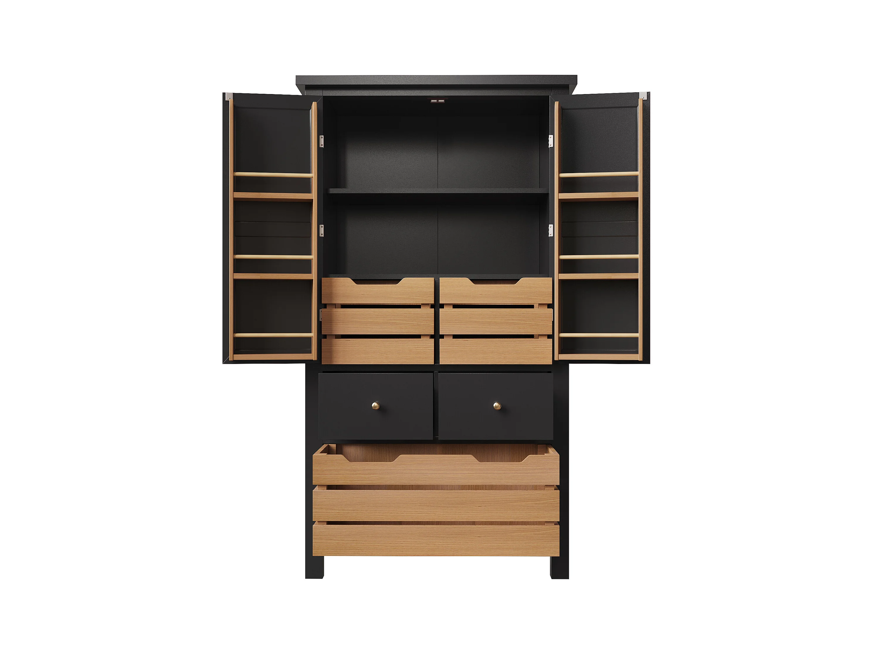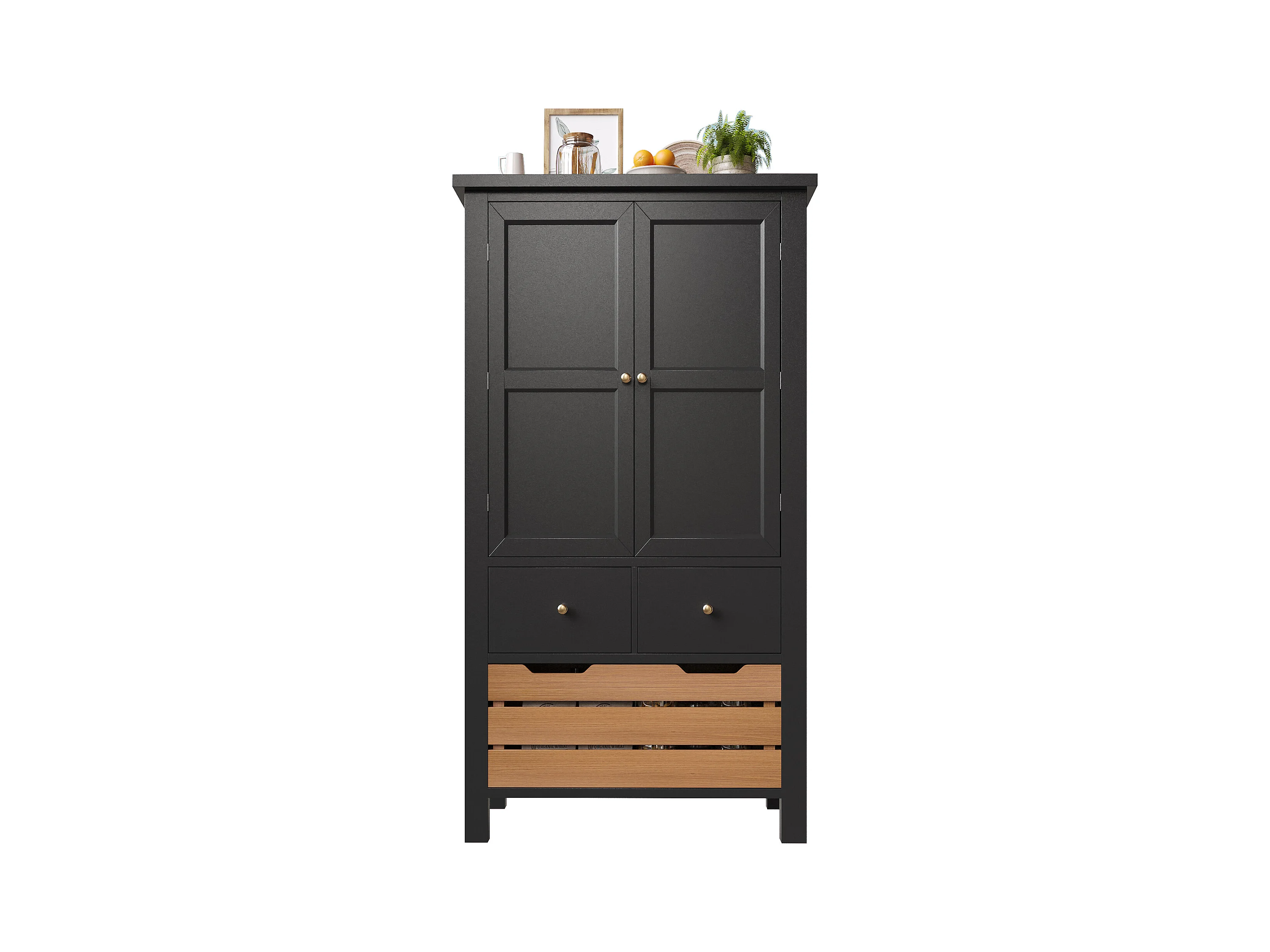 Buffet de cuisine 80x40x140cm - 2 portes + 2 tiroirs - avec panier à collation amovible marron - Noir