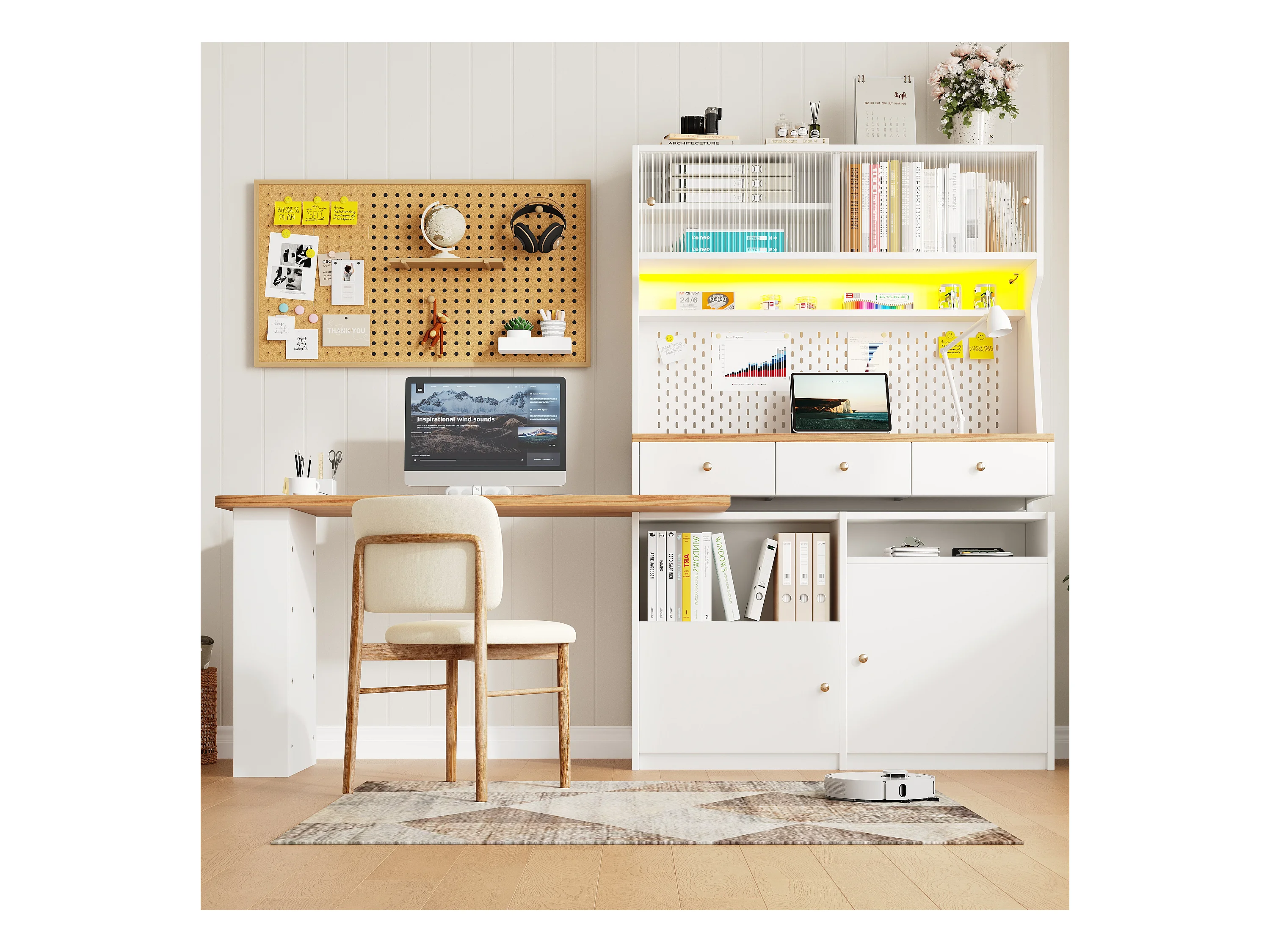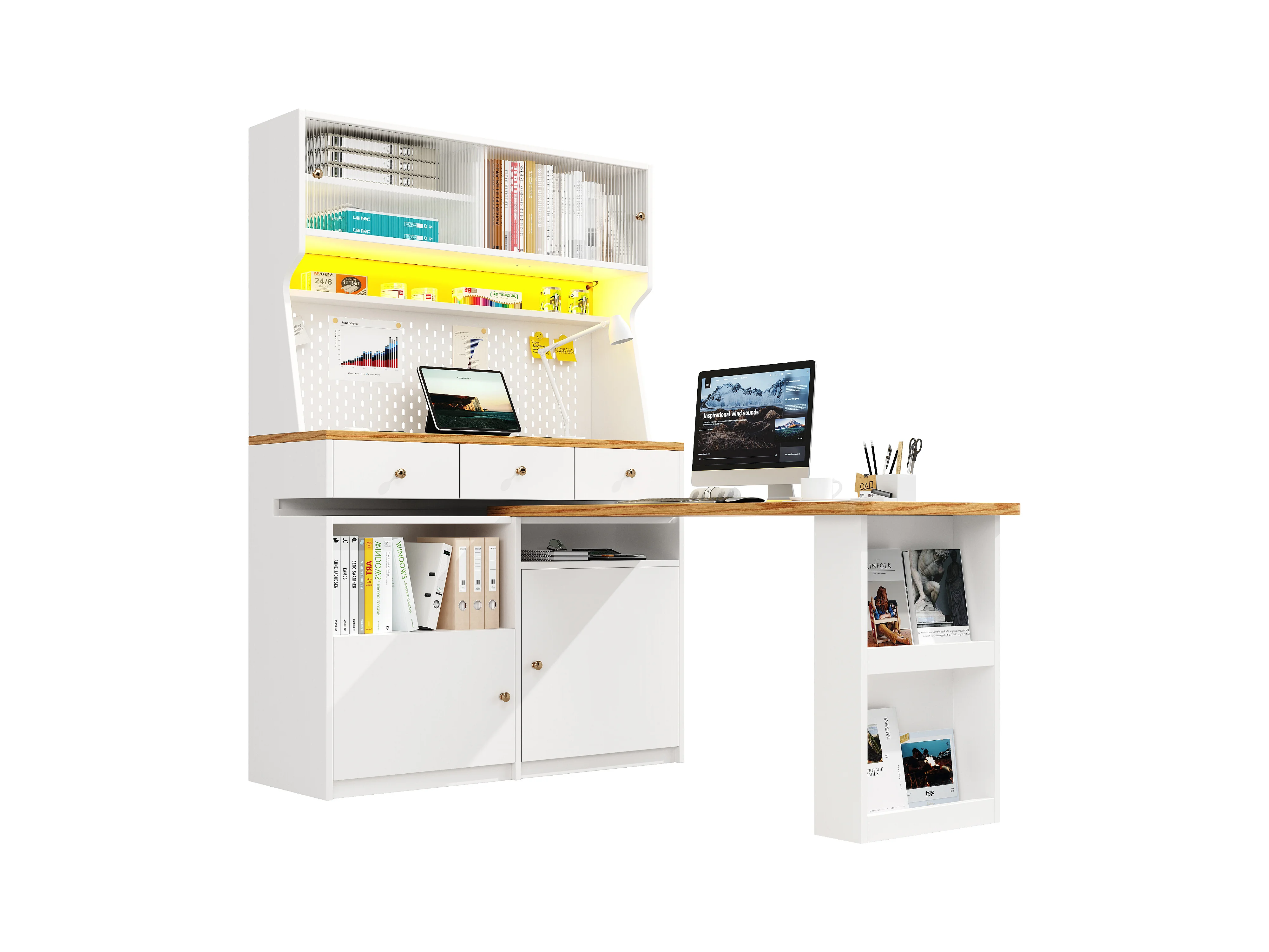 Buffet de cuisine - avec table de bar rotative rétractable - avec éclairage LED - 2 portes + 3 tiroirs - Blanc