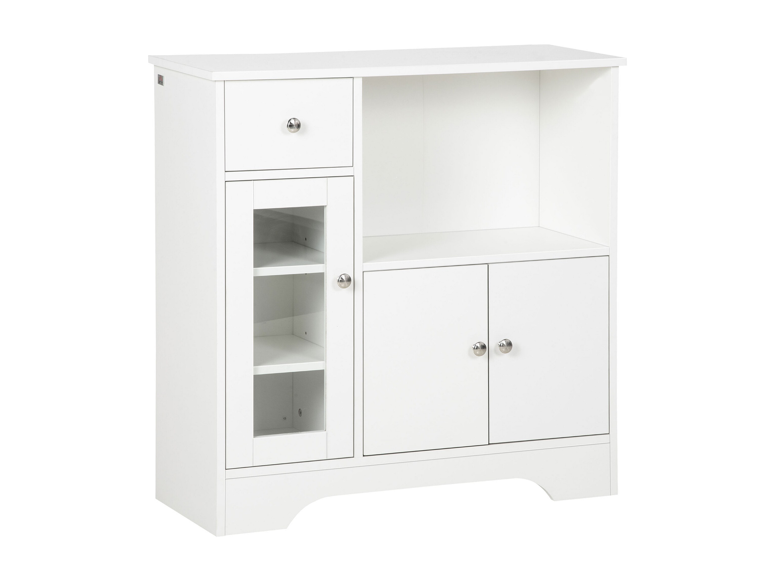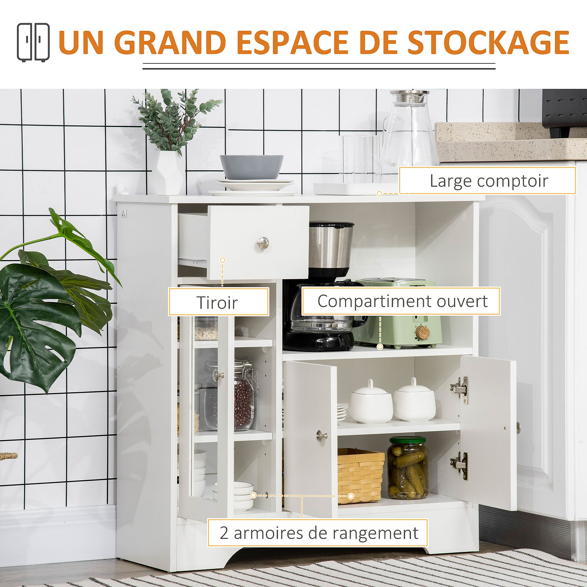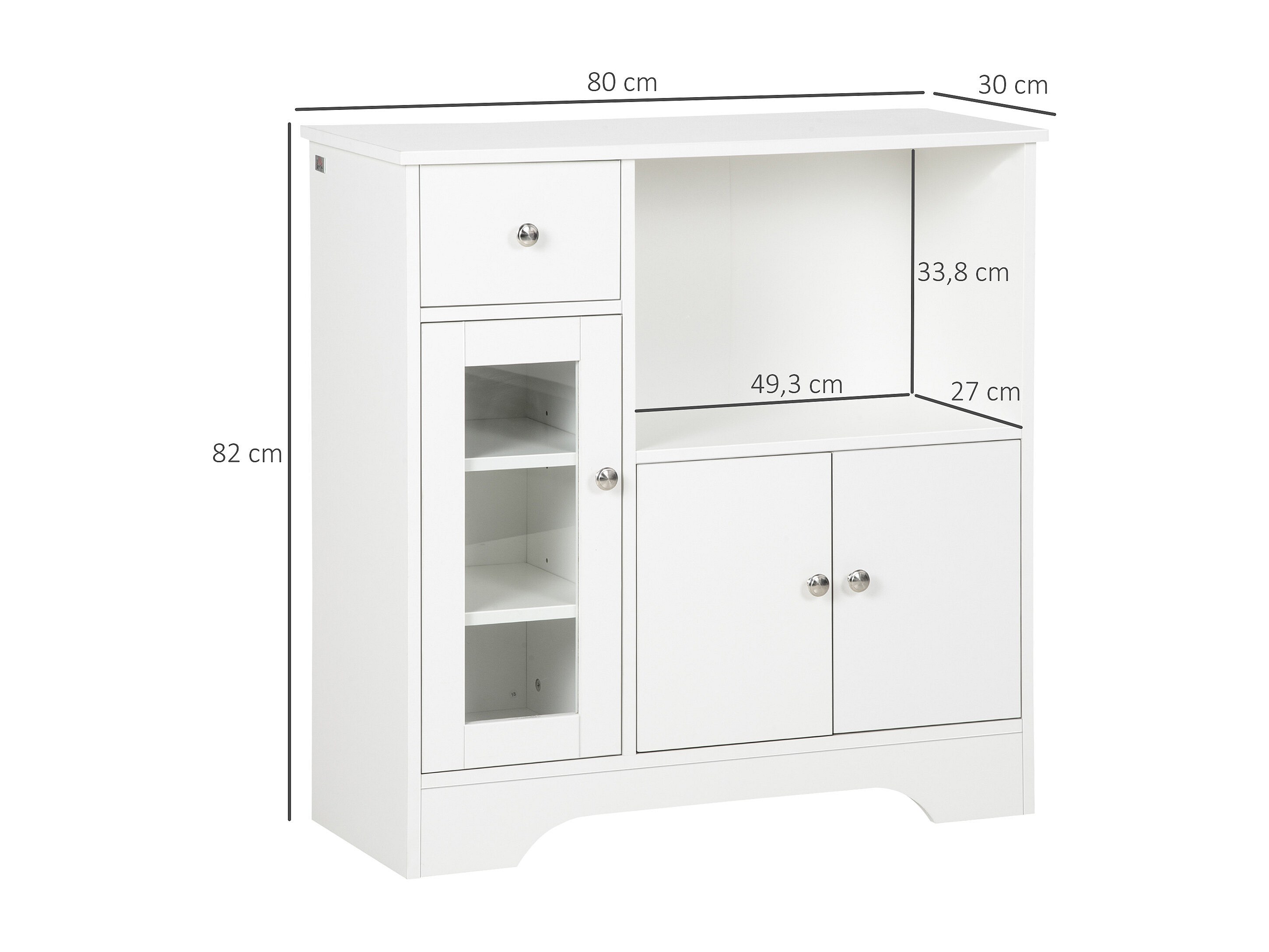 Buffet de cuisine meuble de rangement moderne avec porte en verre, tiroir, grande niche et étagères réglables, 80 x 30 x 82 cm, blanc