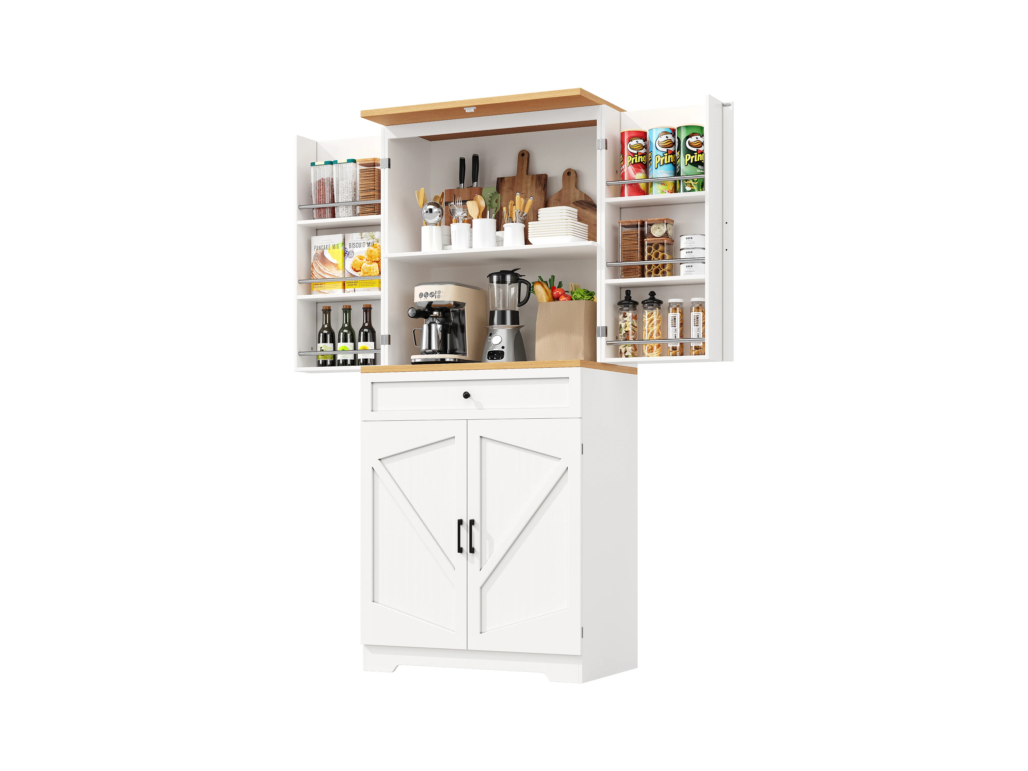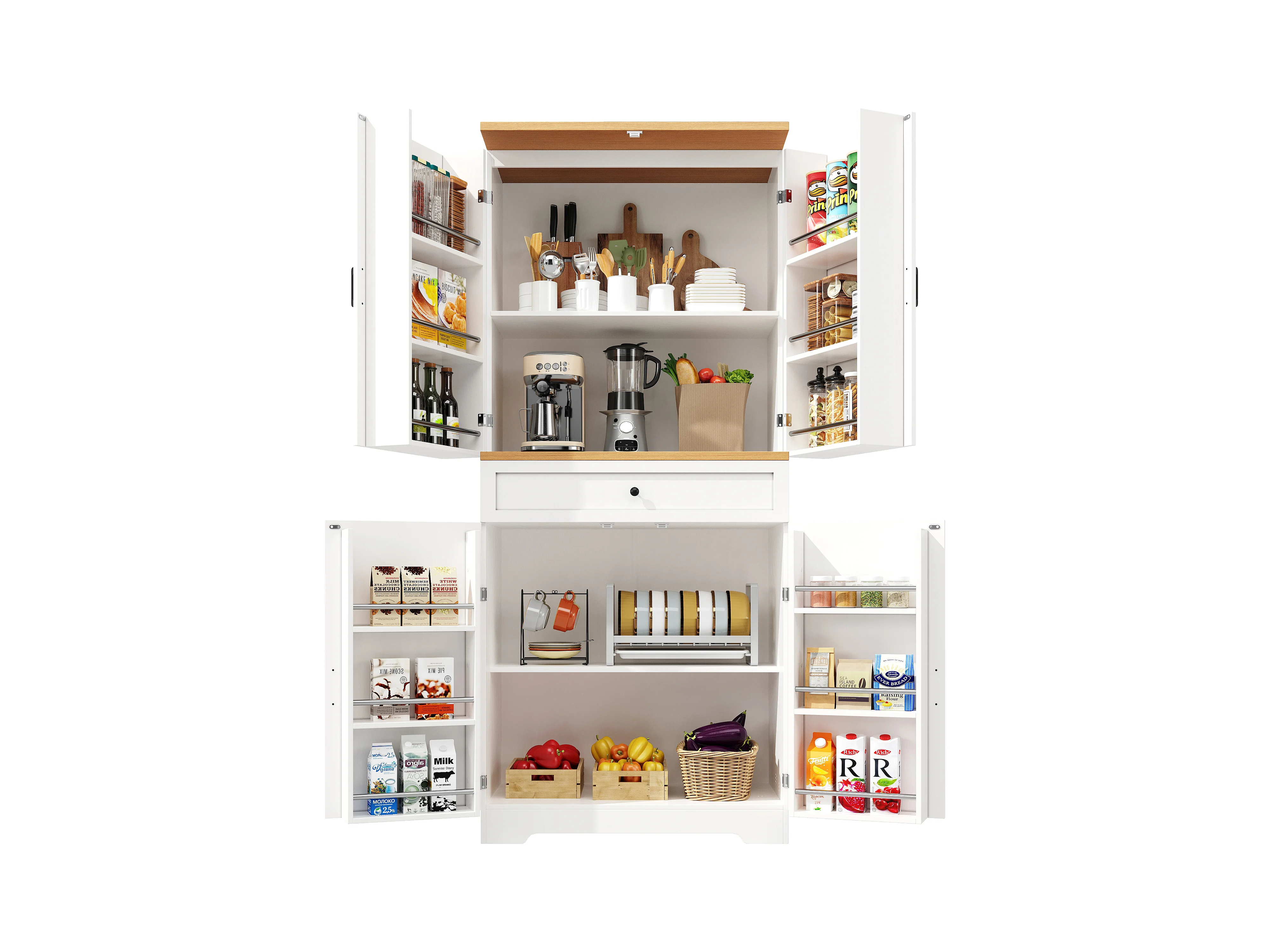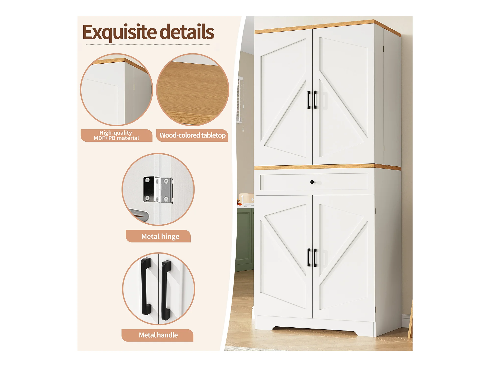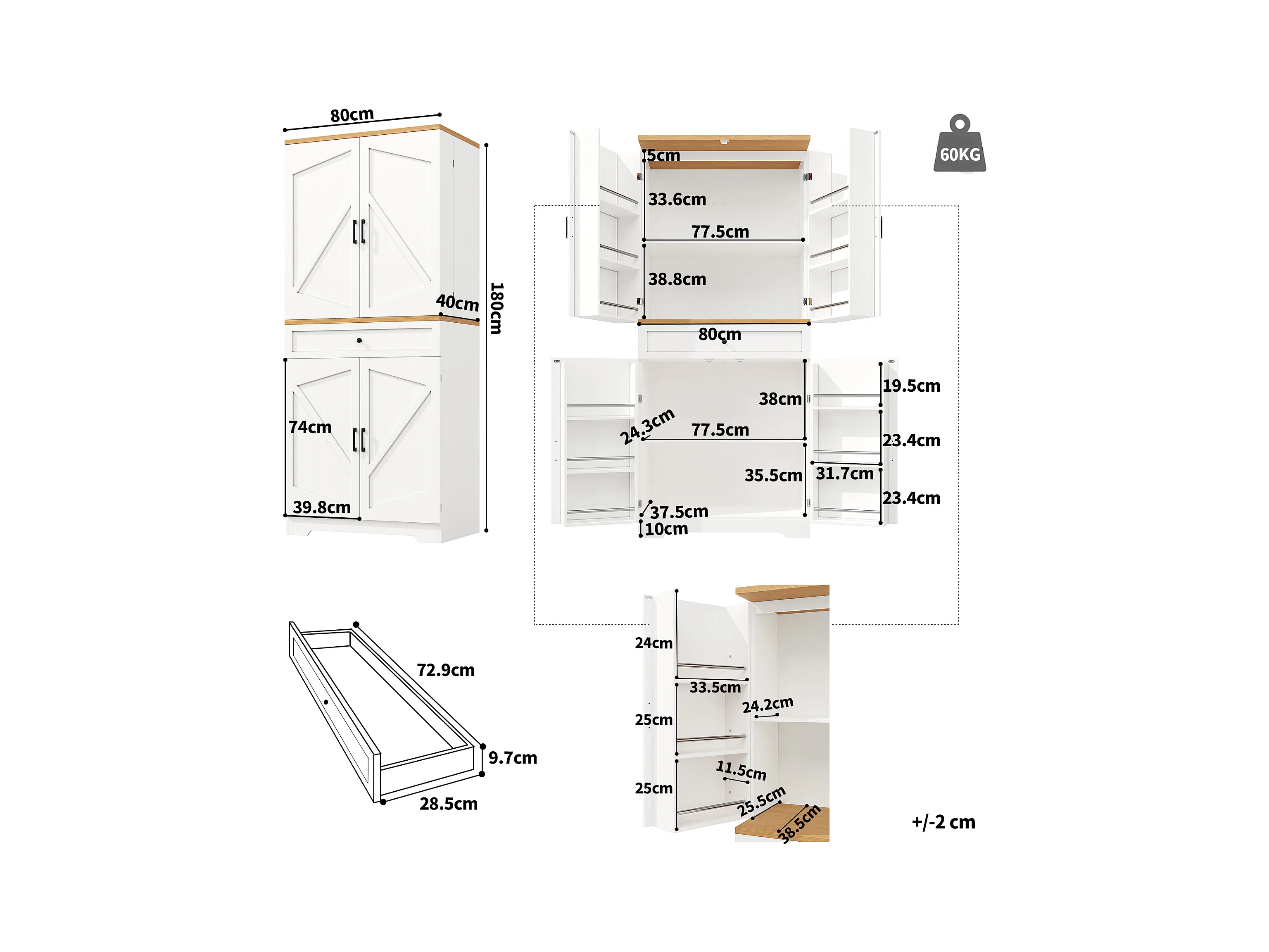 Buffet de cuisine moderne 80x40x180cm - 4 portes + 1 tiroir - meuble haut - MDF - Blanc