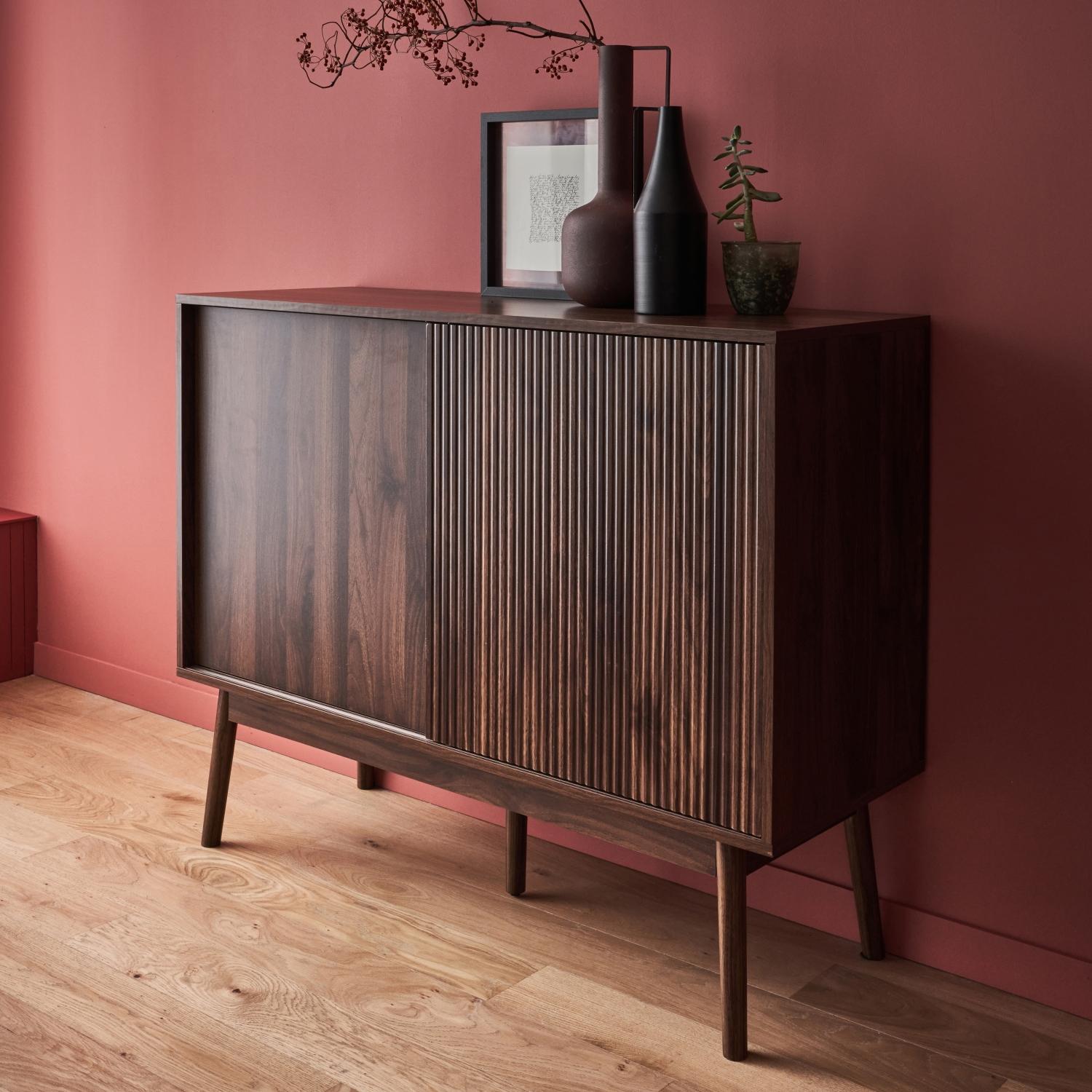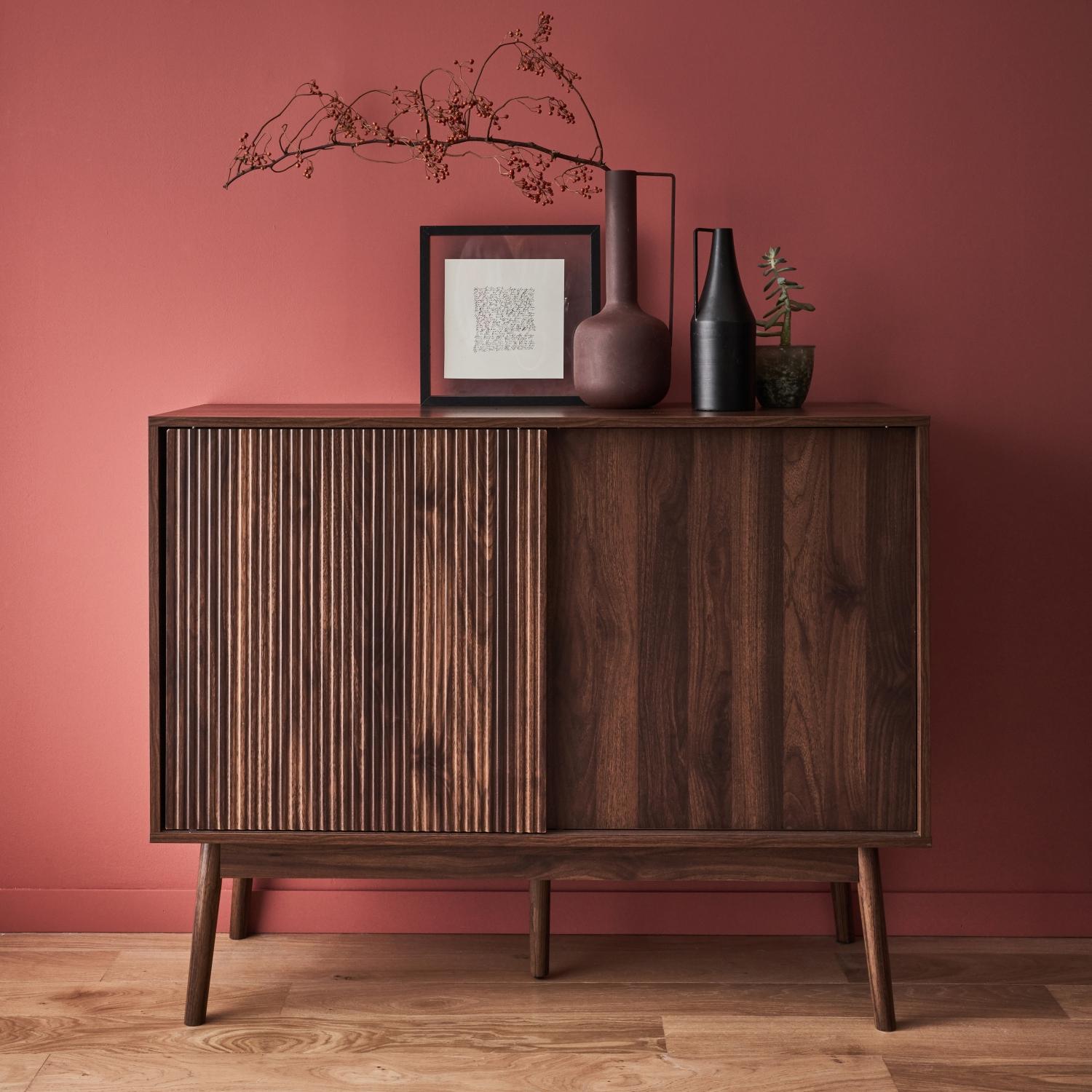 Buffet de rangement décor bois de noyer. 2 portes coulissantes. buffet haut. vaisselier. L 115 x l 39.5 x H 90cm - Linear