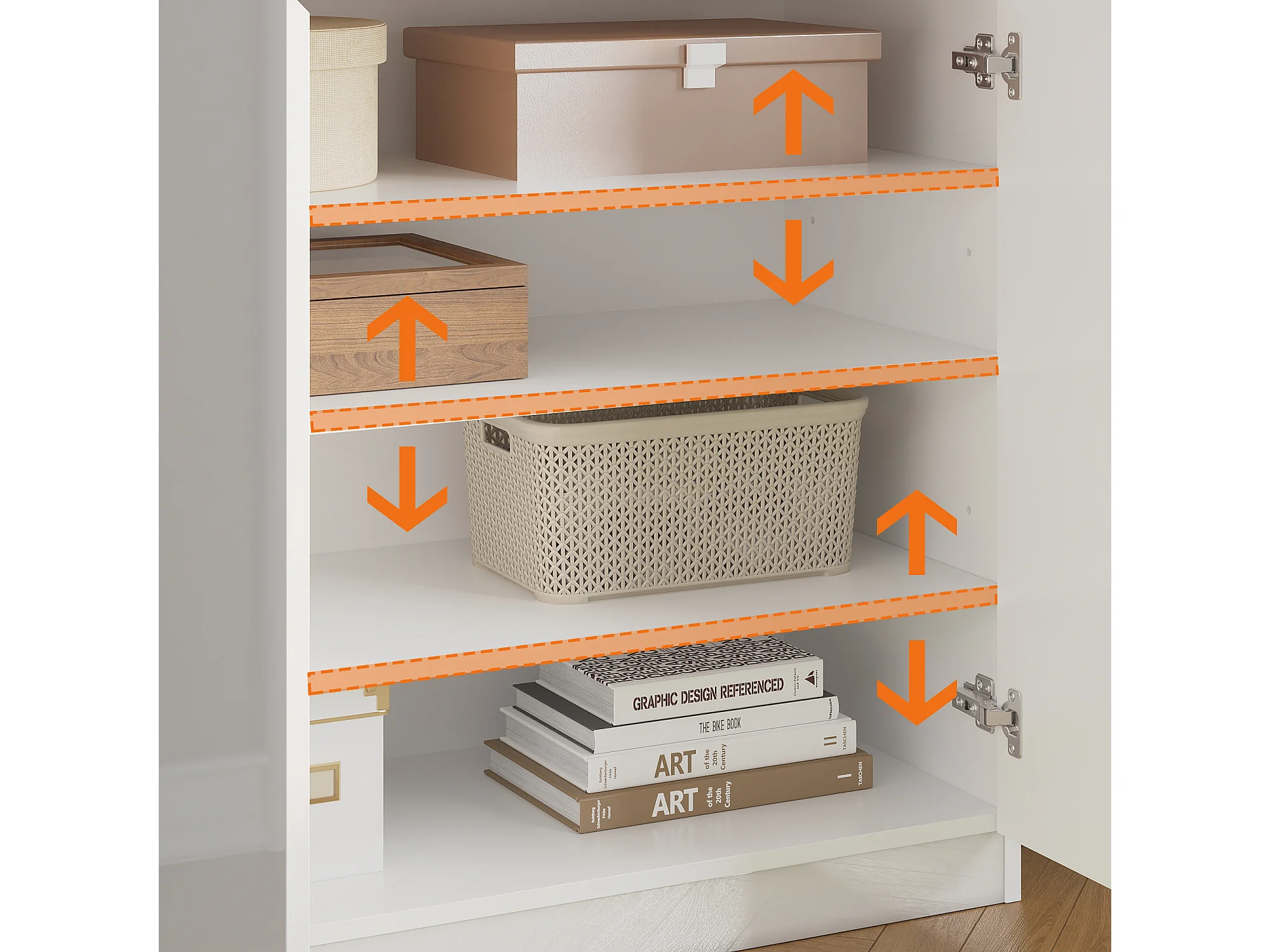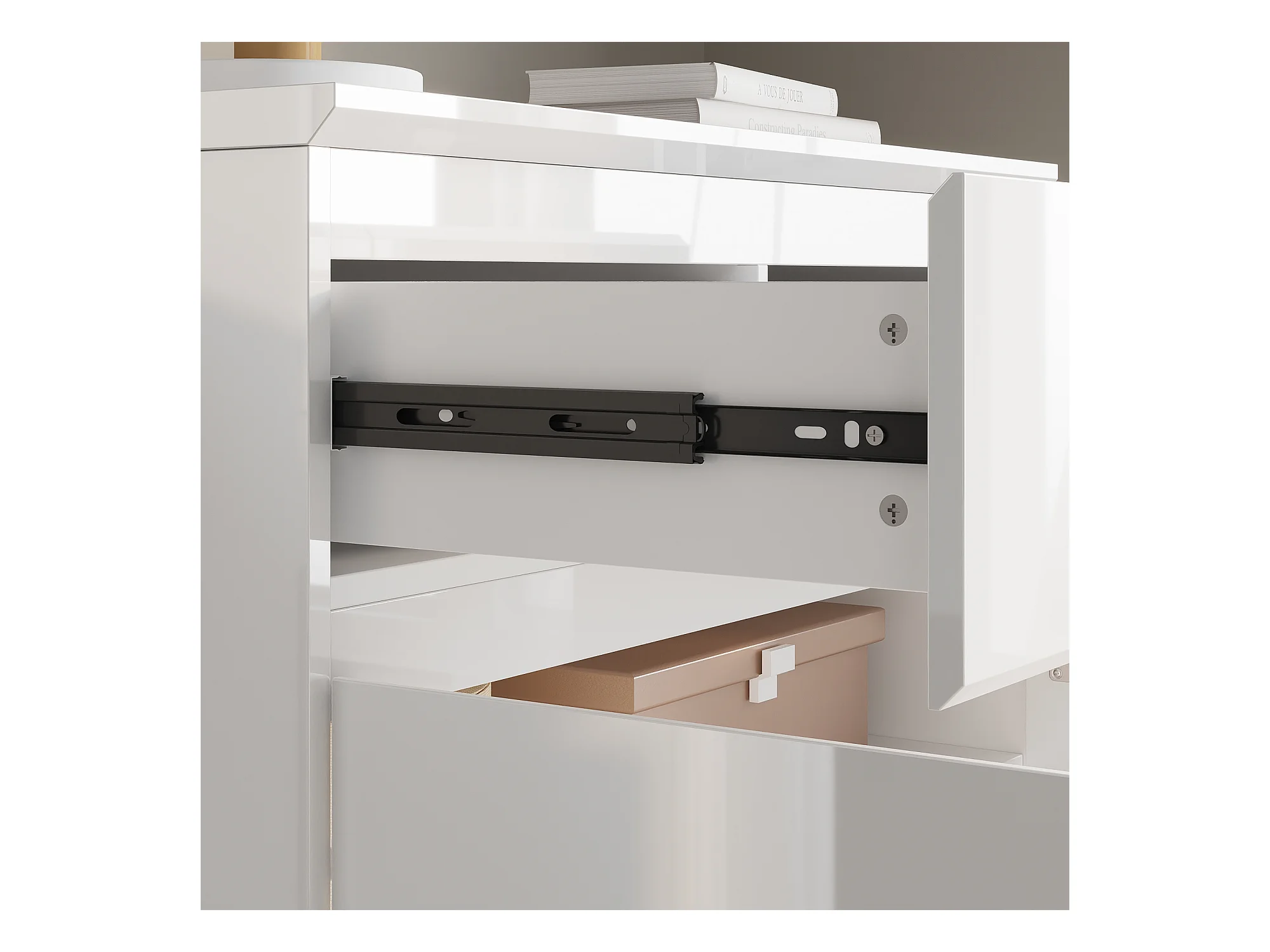 Buffet de Salon avec 2 Portes et 2 Tiroirs, Petit Rangement de Chambre sans Poignée, 80 x 40 x 103, Blanc Brillant