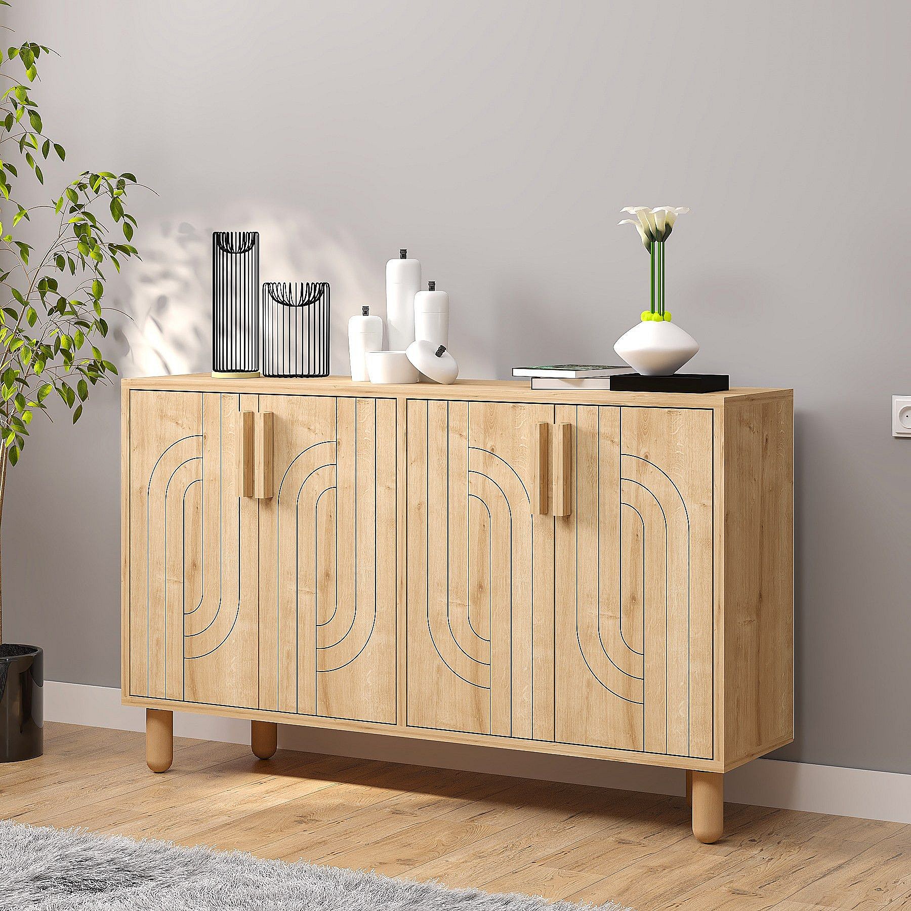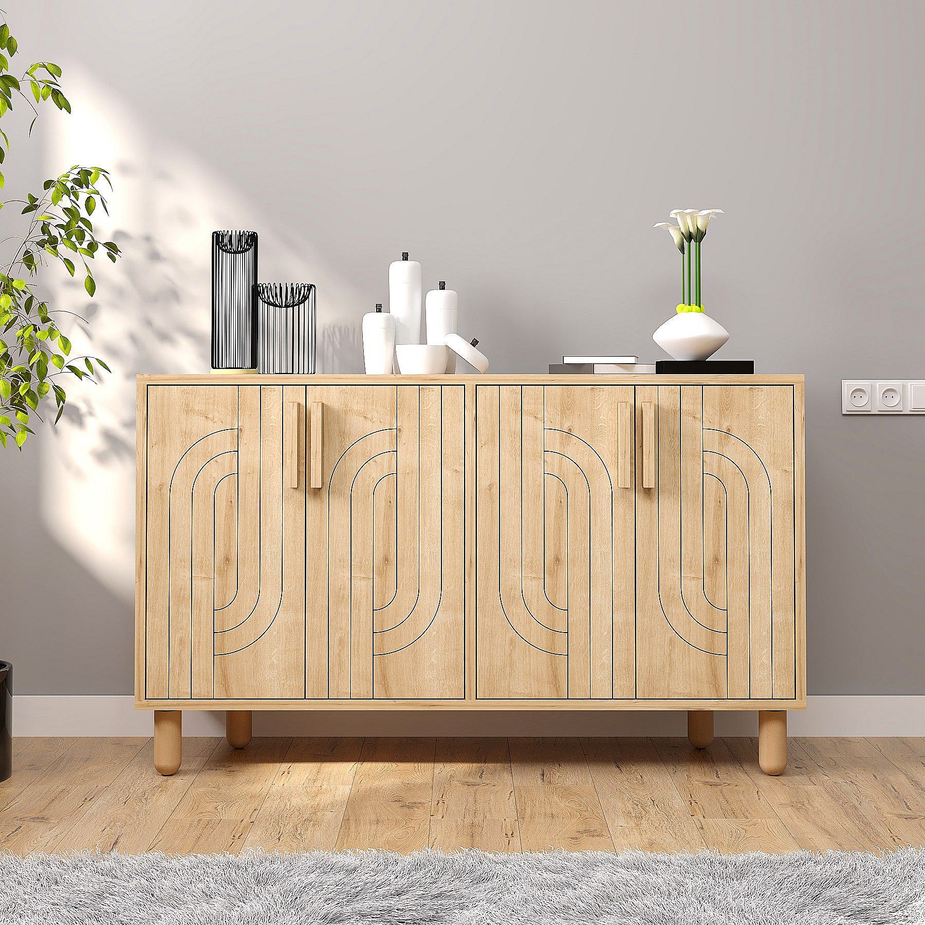 Buffet design 4 portes battantes Cerka L120cm Chêne clair