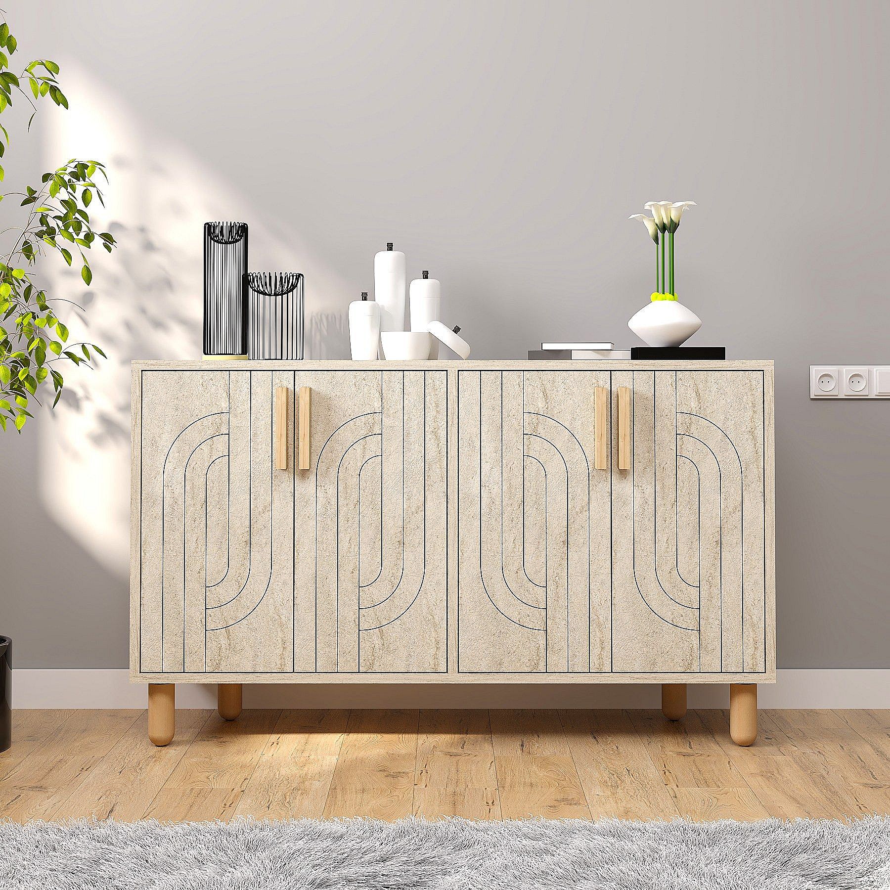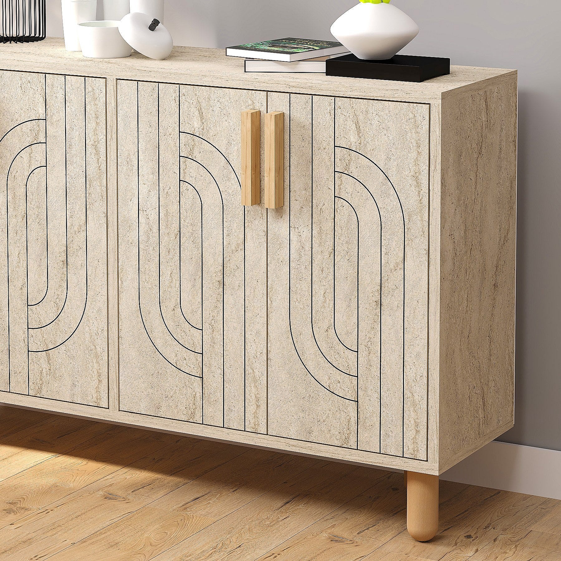 Buffet design 4 portes battantes Cerka L120cm Effet travertin beige