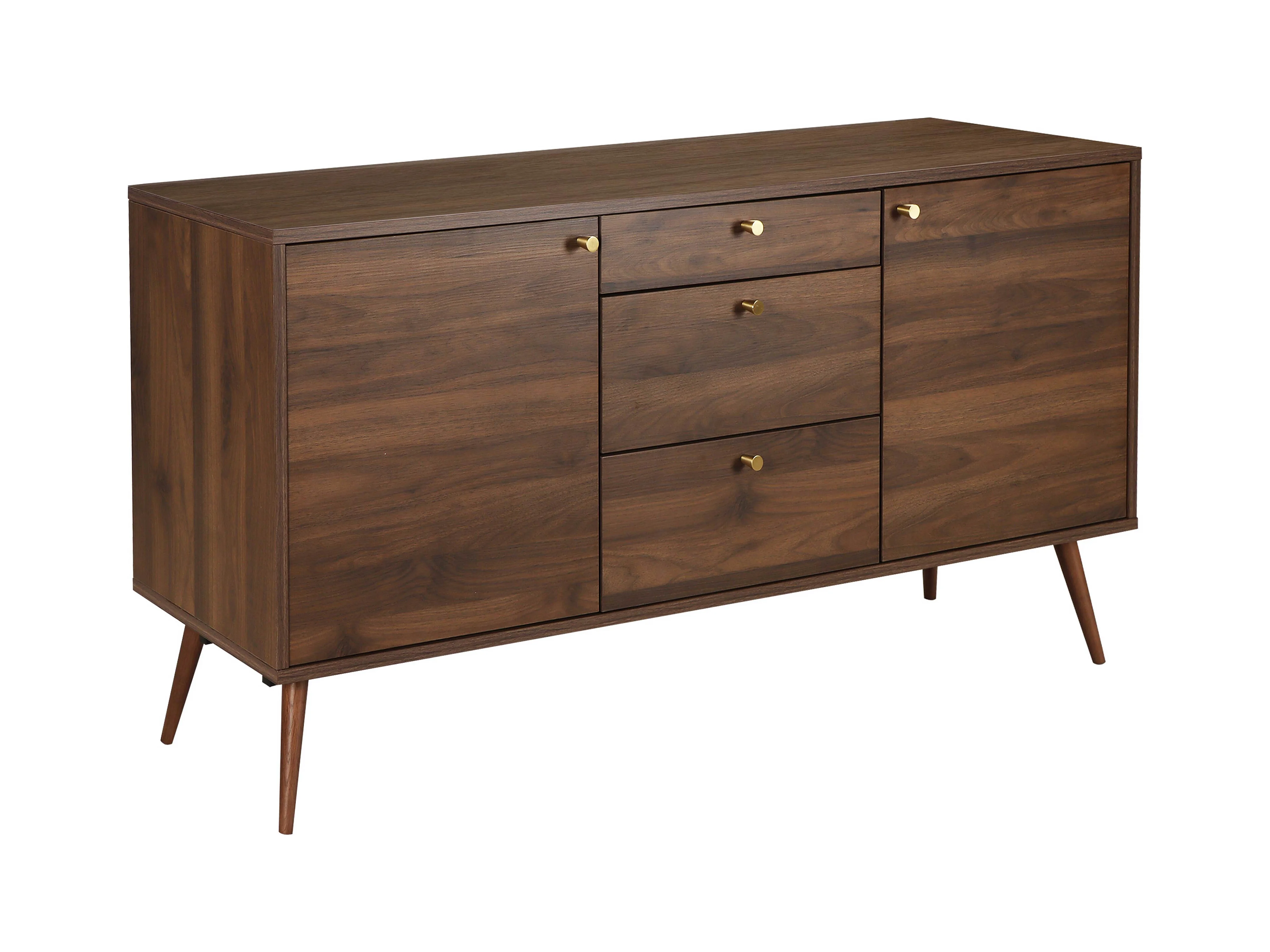 Buffet design effet bois foncé 2 portes 3 tiroirs 150 cm marron