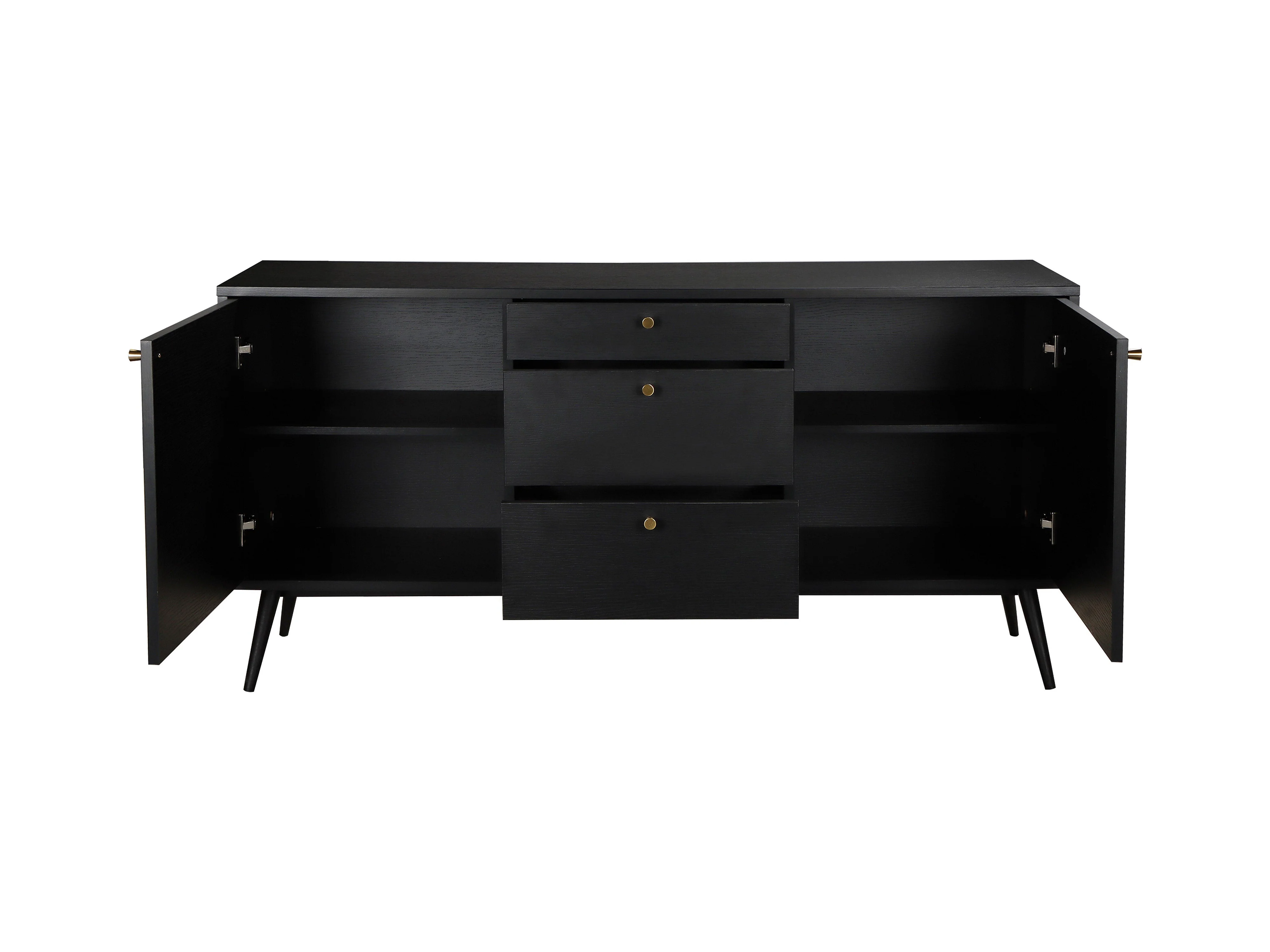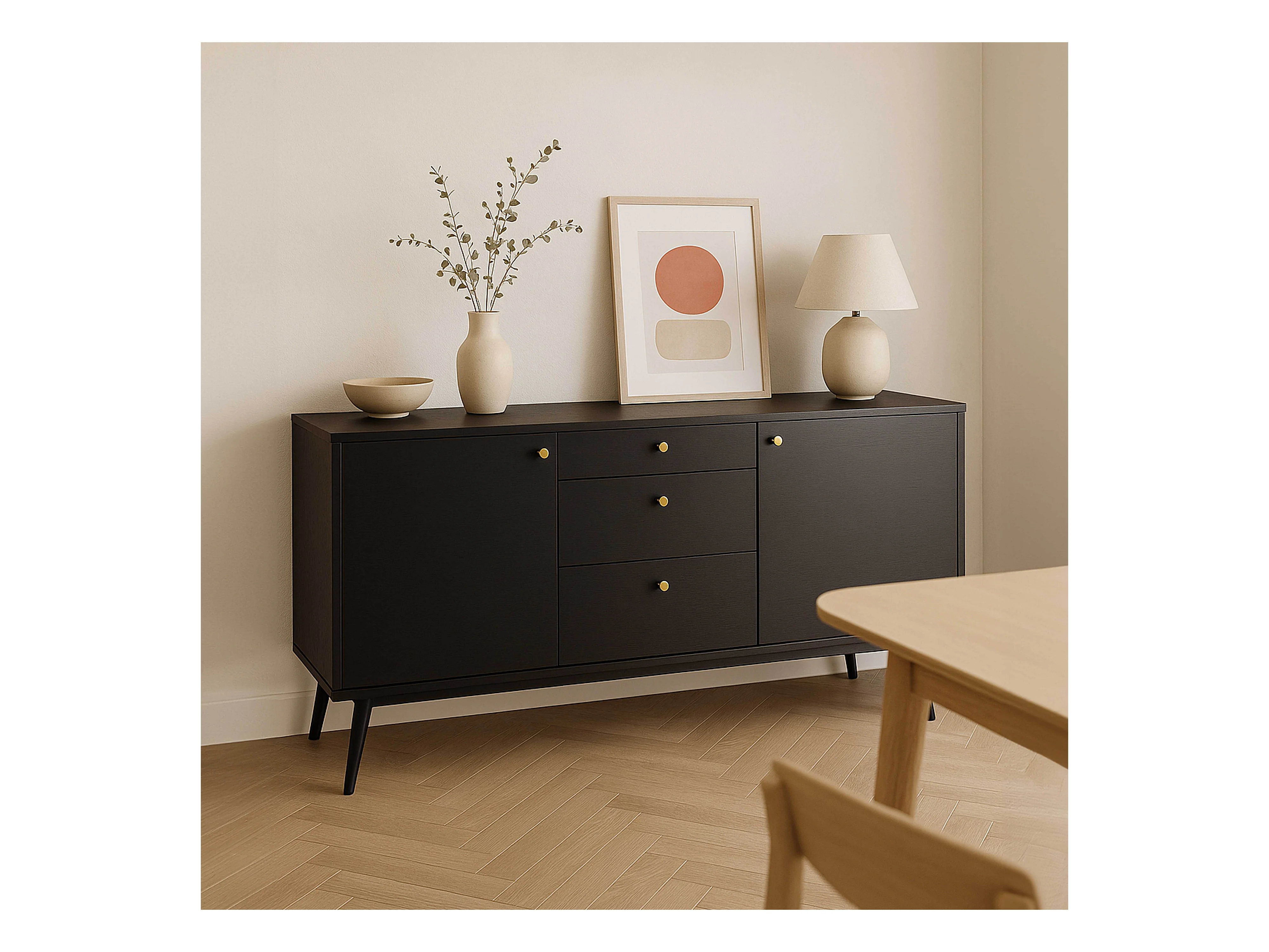 Buffet design effet bois foncé 2 portes 3 tiroirs 150 cm noir