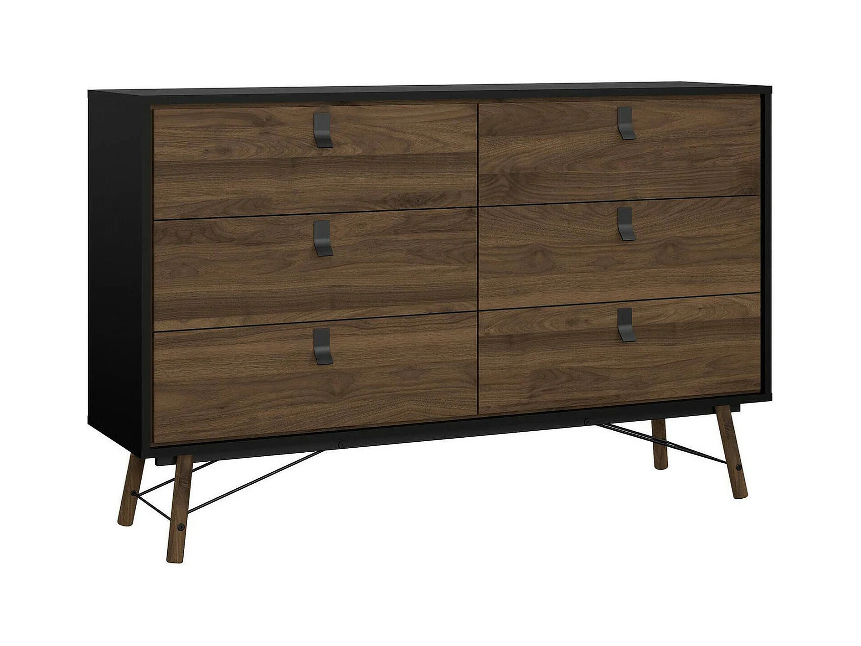 Buffet Dsalvett, Buffet du salon, Commode de salon, Garde-manger de cuisine, 150x40 h95 cm, Noir et Noyer
