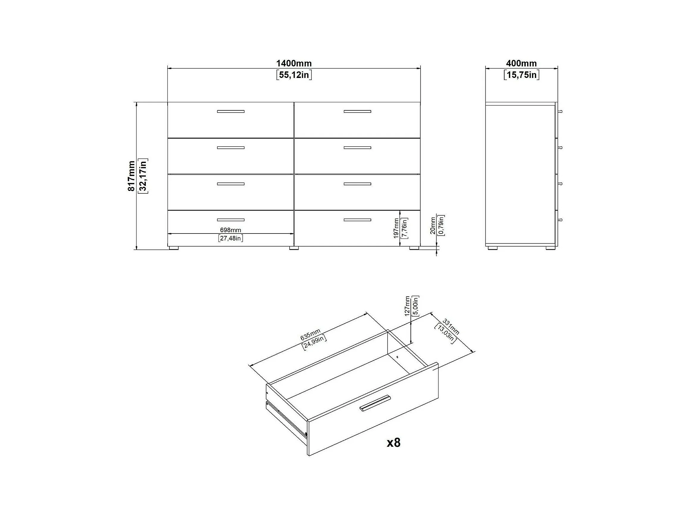 Buffet Dsattol, Buffet du salon, Commode de salon, Garde-manger de cuisine, 140x40 h82 cm, Blanc