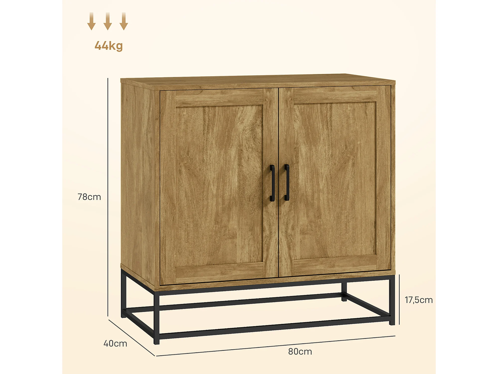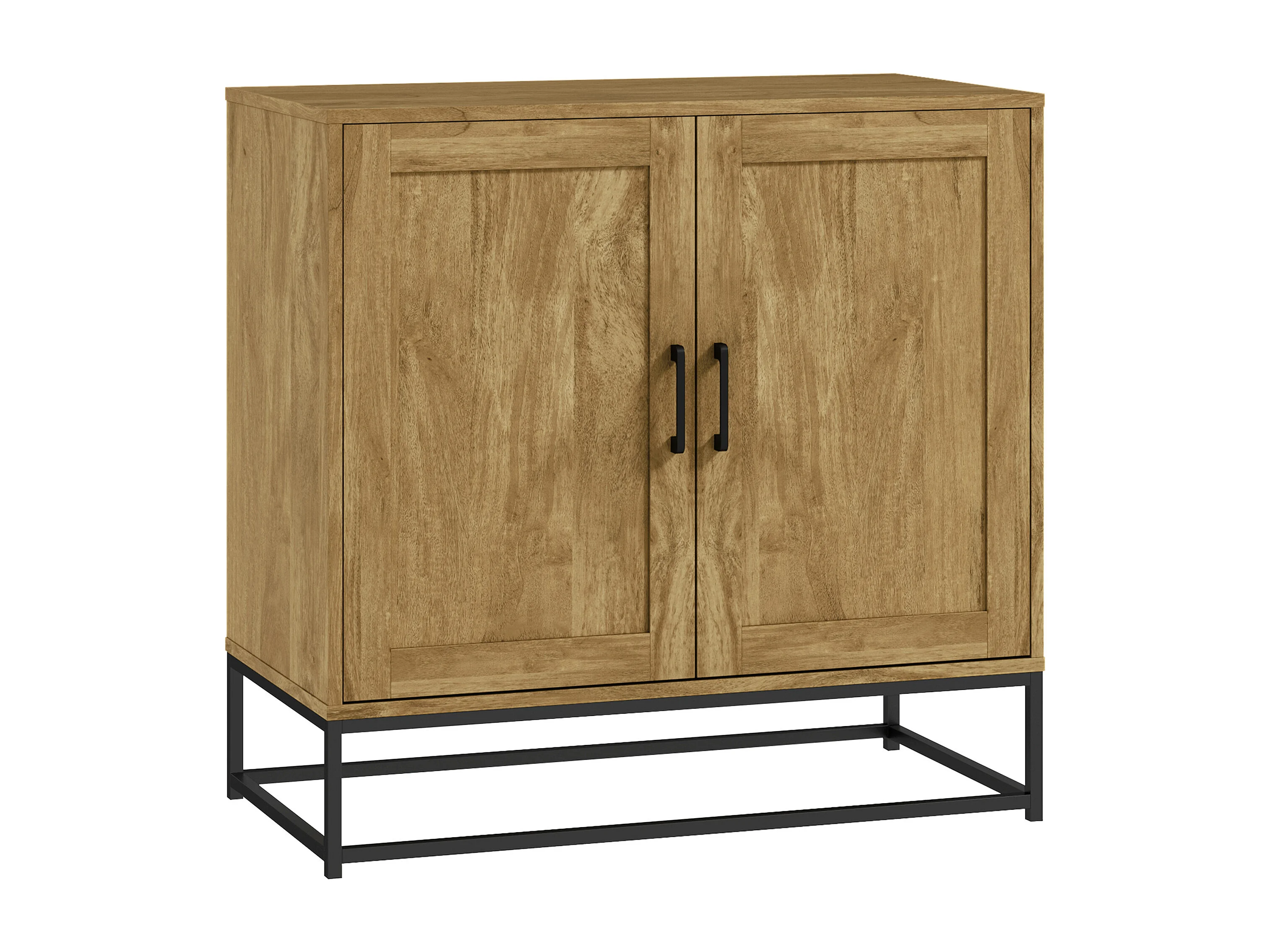 Buffet effet bois exotique - 2 portes, étagère - piètement poignées métal noir