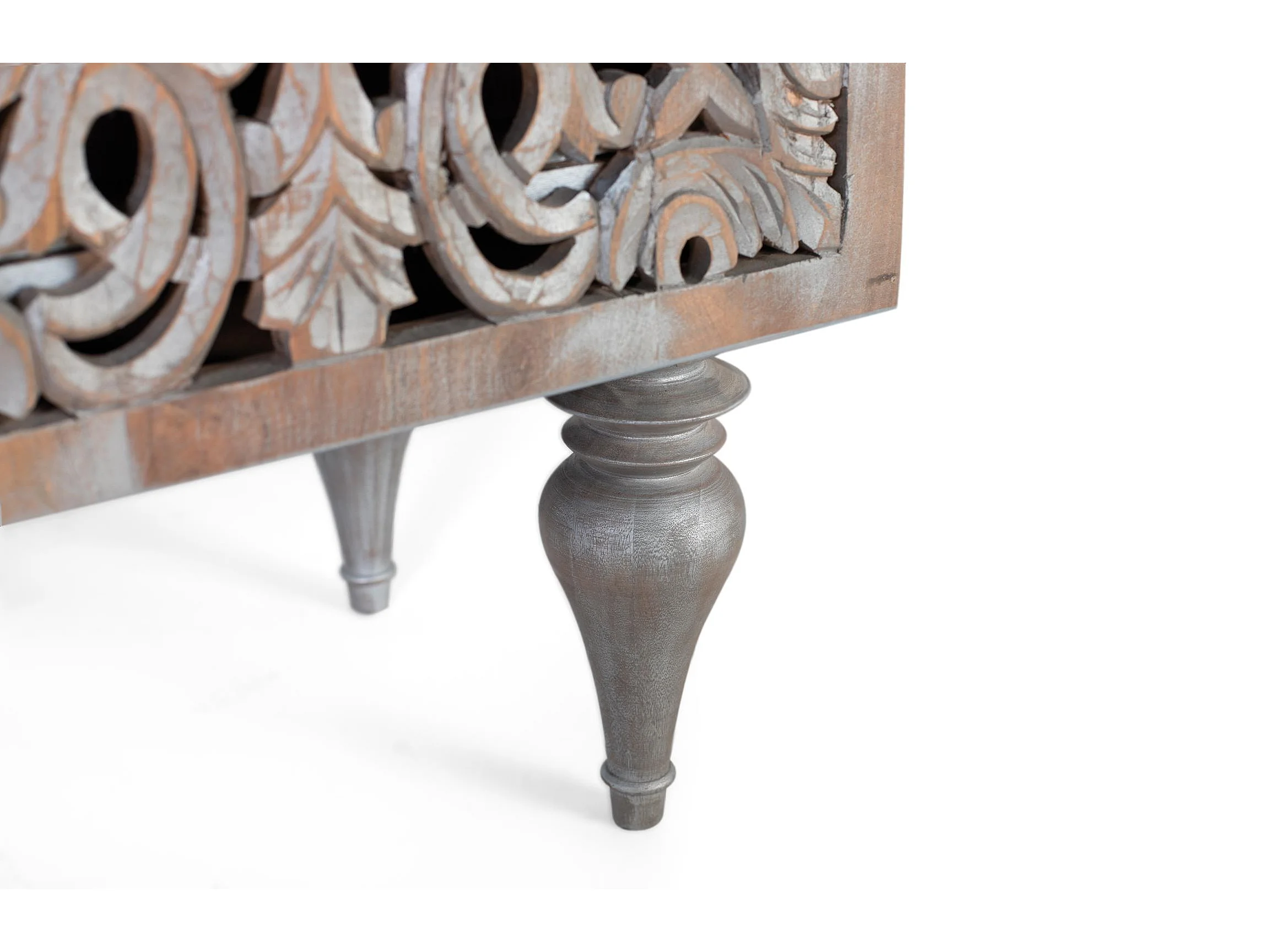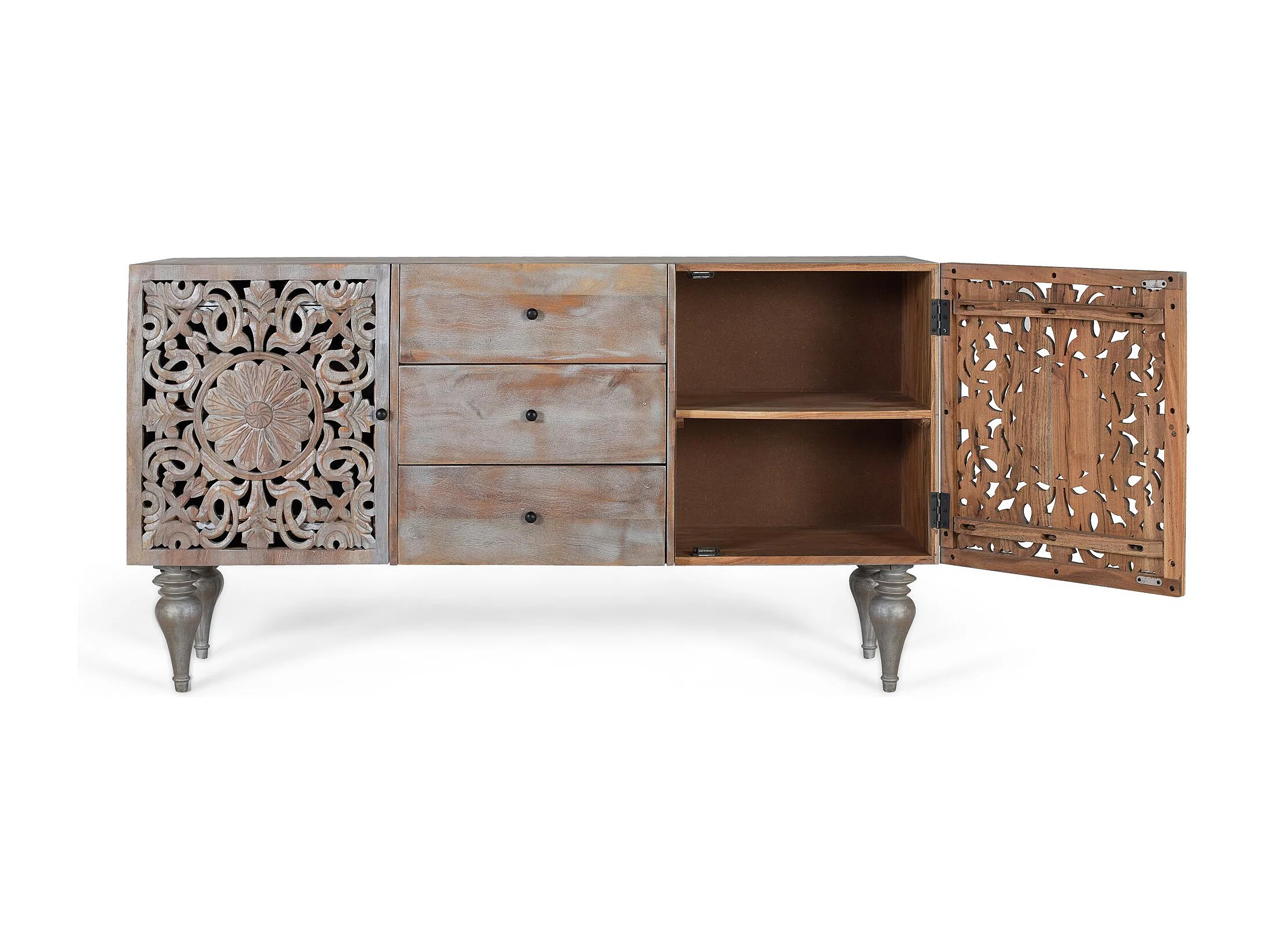 Buffet en bois de manguier avec deux portes latérales sculptées