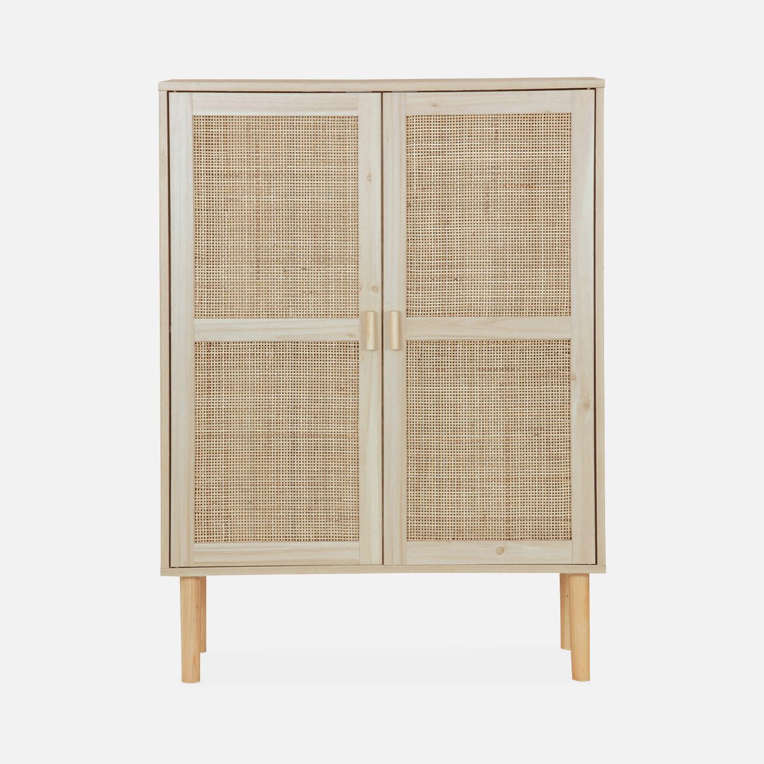 Meuble de rangement en cannage 80x39x65.8cm Bohème - Naturel - 2 niveaux - 1 porte - pieds scandinaves. buffet bas