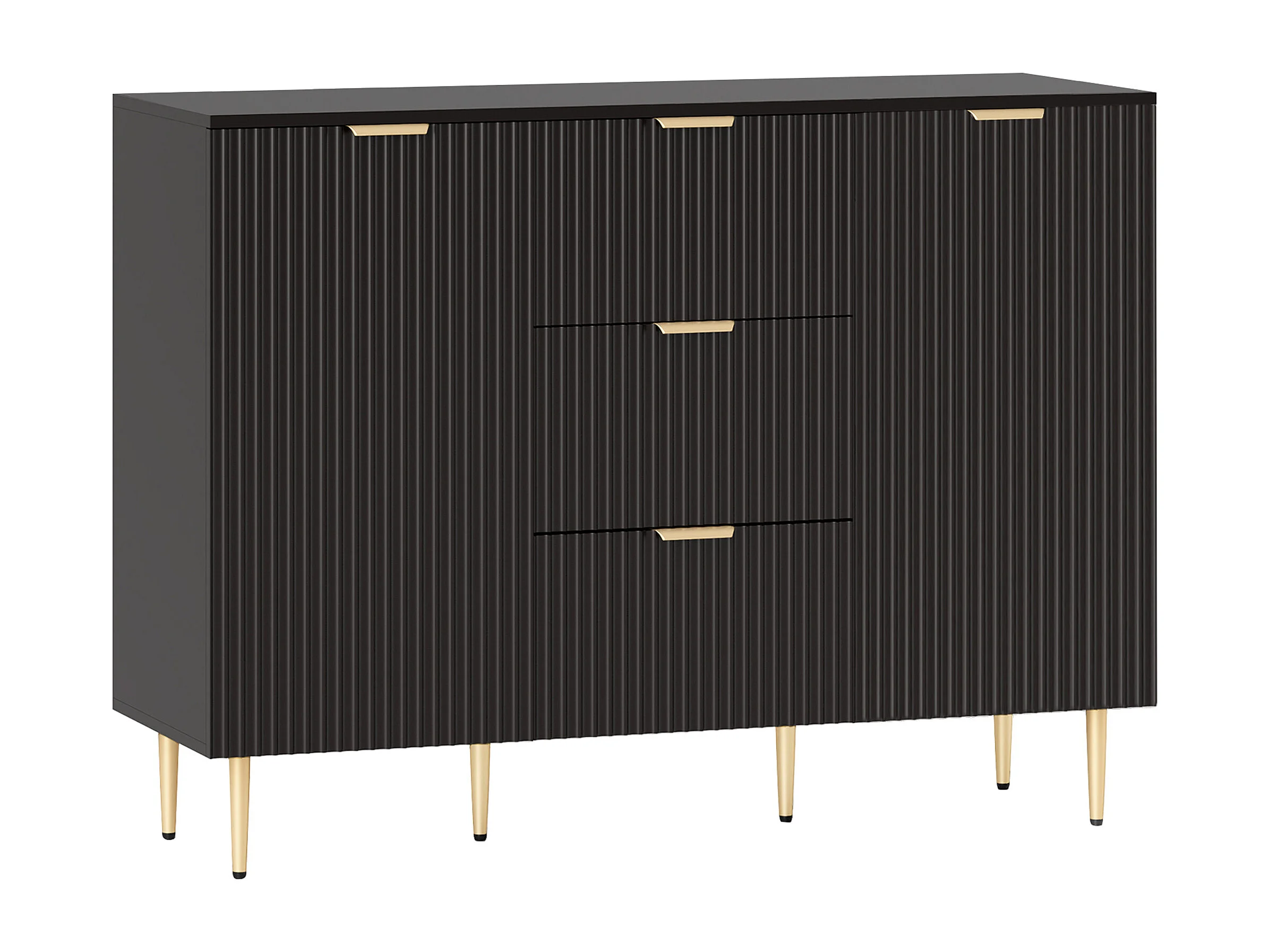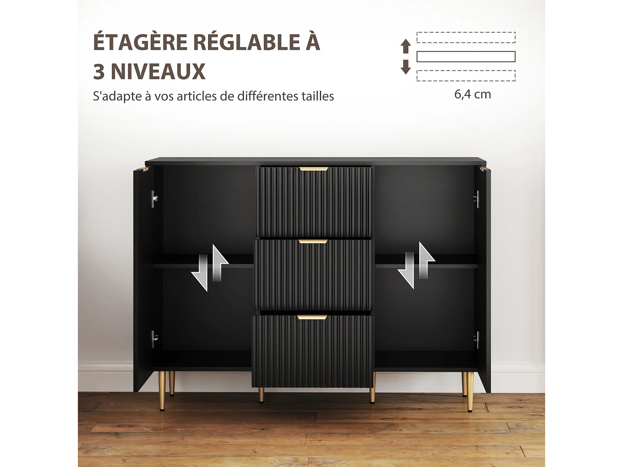 Buffet enfilade 2 portes 2 étagères 3 tiroirs - dim. 120 x 40 x 90 cm - métal doré noir