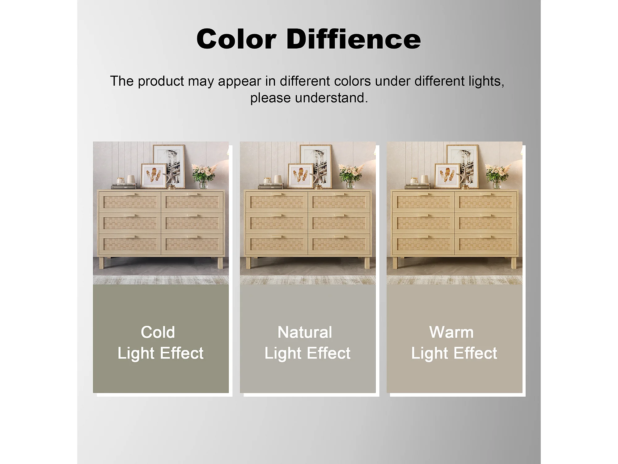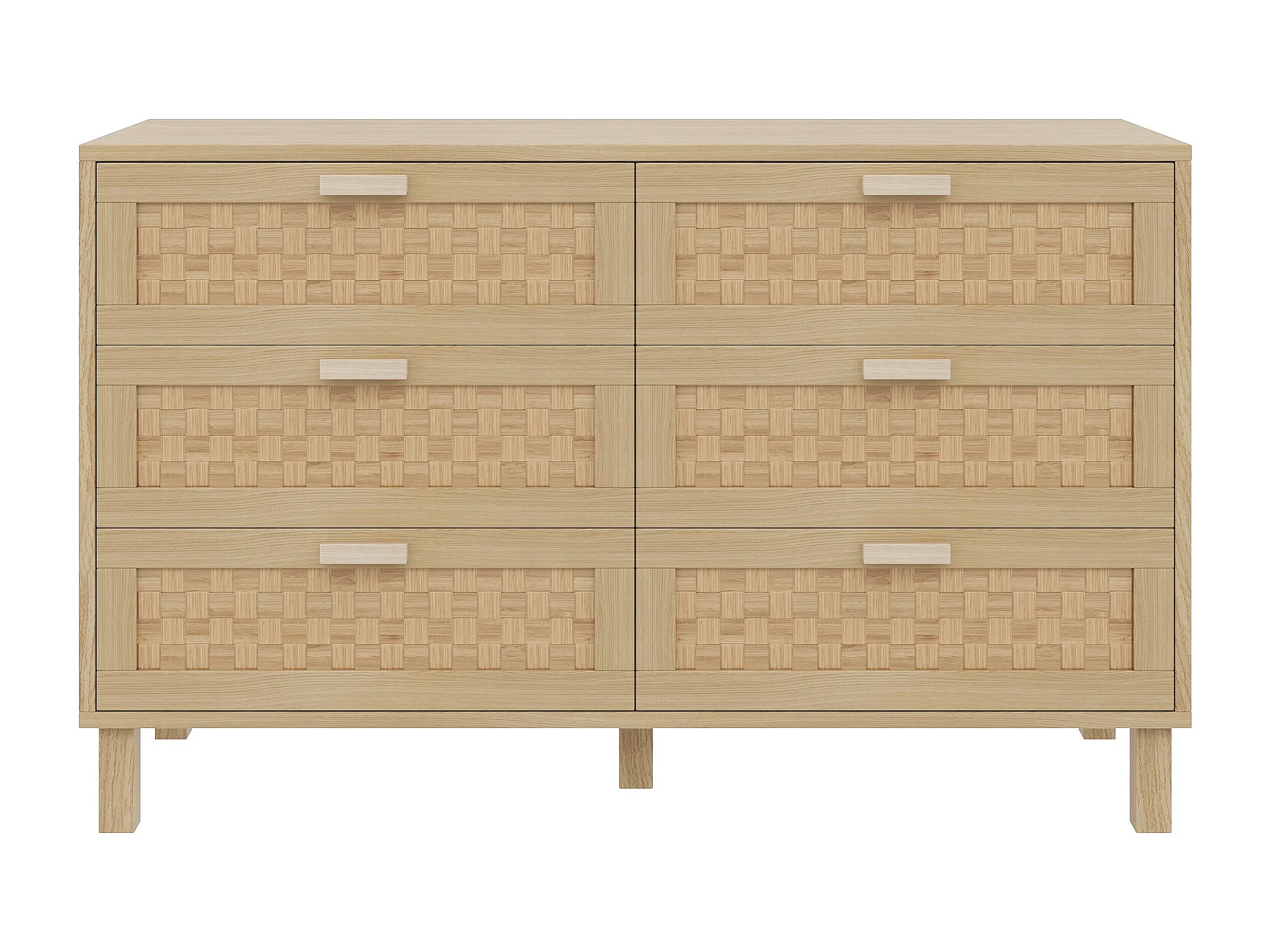 Buffet et commode avec 6 tiroirs - 120 x 40 x 75 cm - tiroirs aspect rotin - aggloméré - naturel
