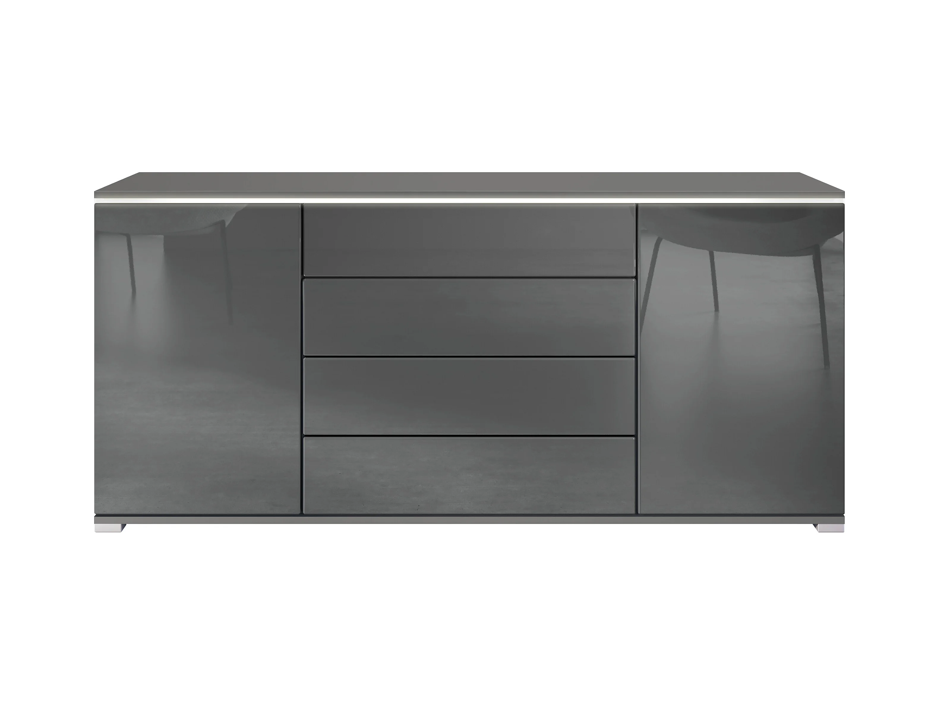 Buffet Faro V2 – Meuble avec 2 Portes & 4 Tiroirs, Armoire avec Bande LED Lumineuse, anthracite mat / gris haute brillance (166,5 x 75,5 x 35)