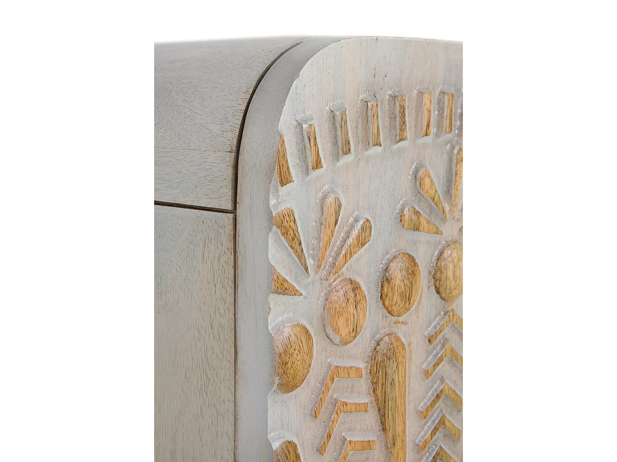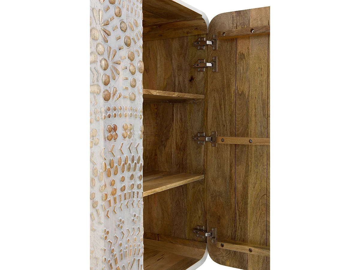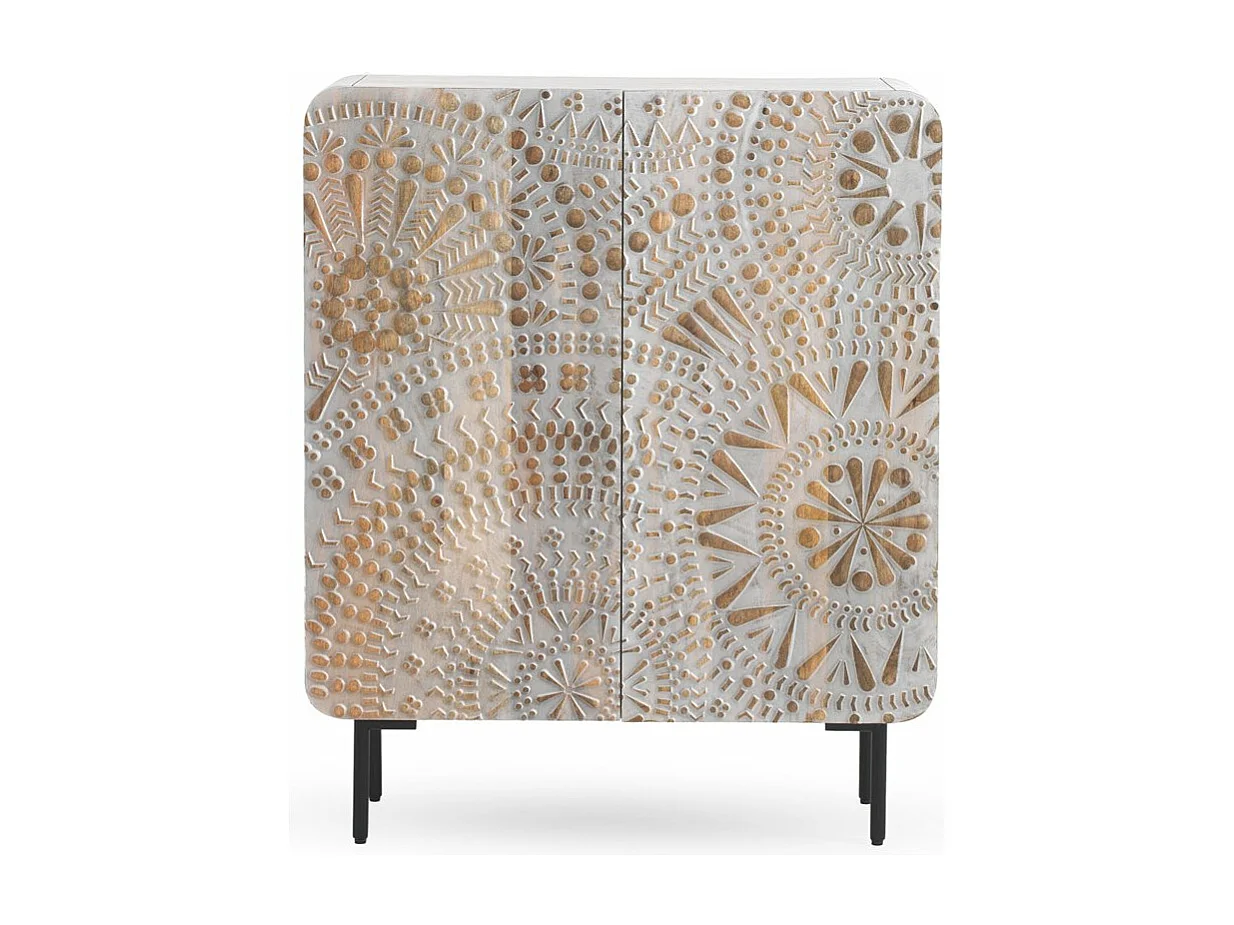 Buffet haut 2 portes gris patiné blanc en bois massif de manguier