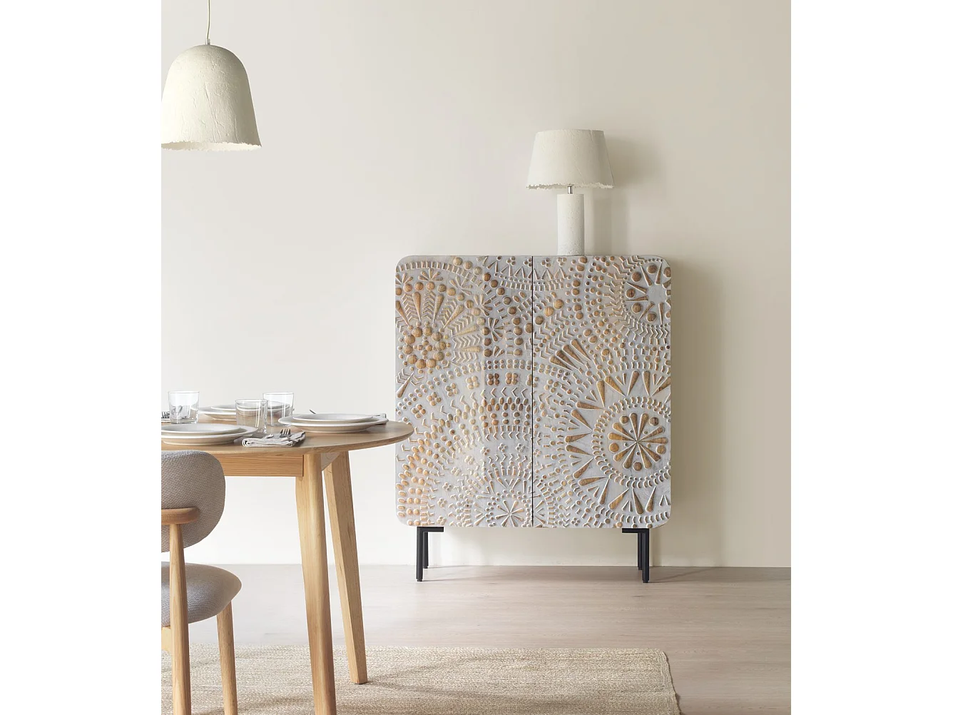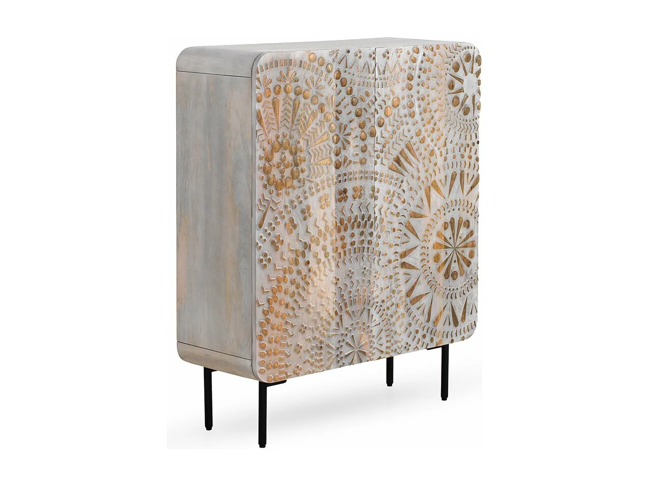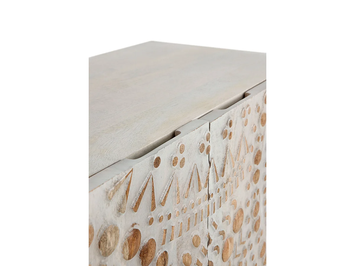 Buffet haut 2 portes gris patiné blanc en bois massif de manguier