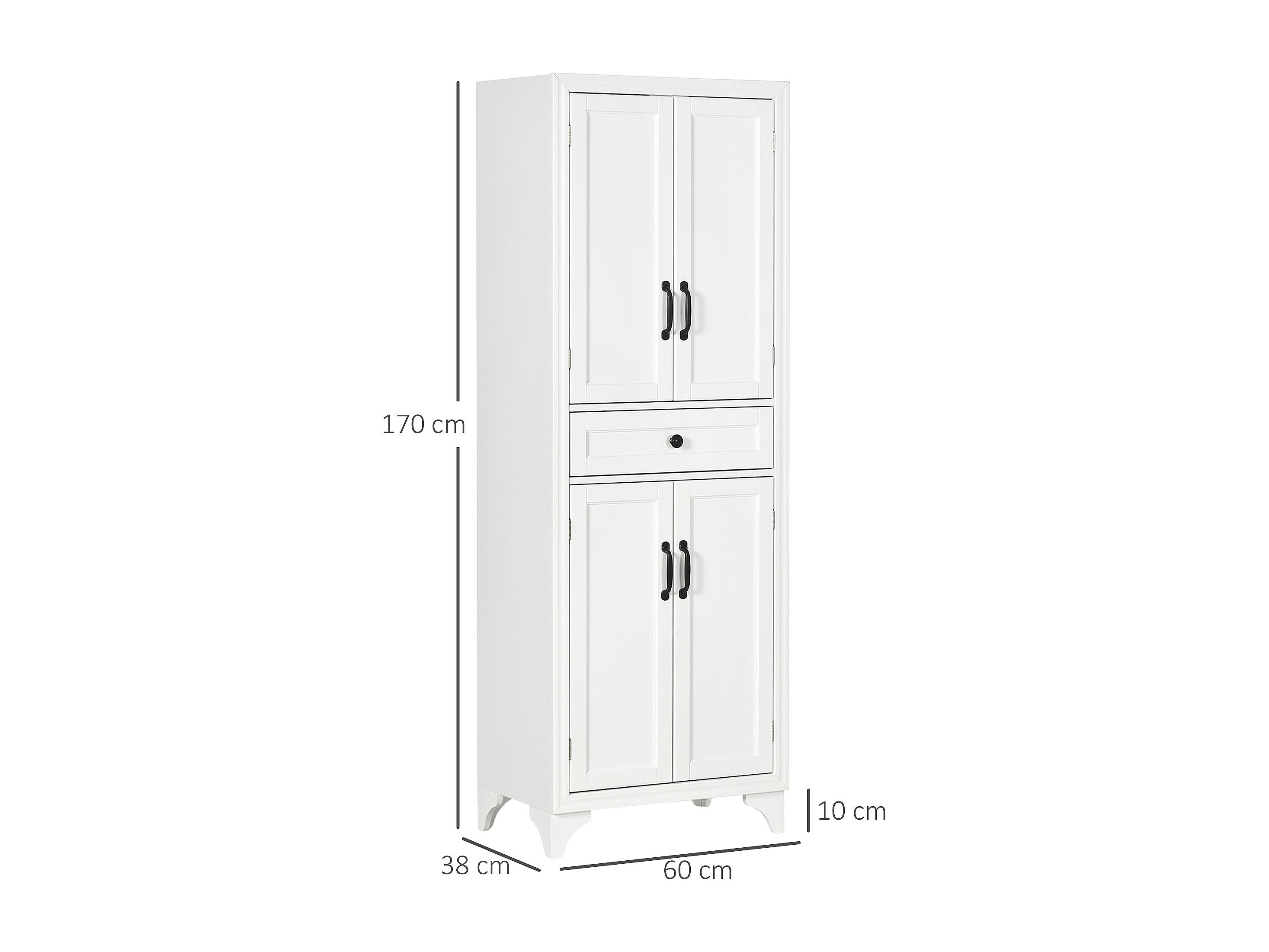 Buffet haut 4 portes 2 étagères tiroir coulissant MDF blanc