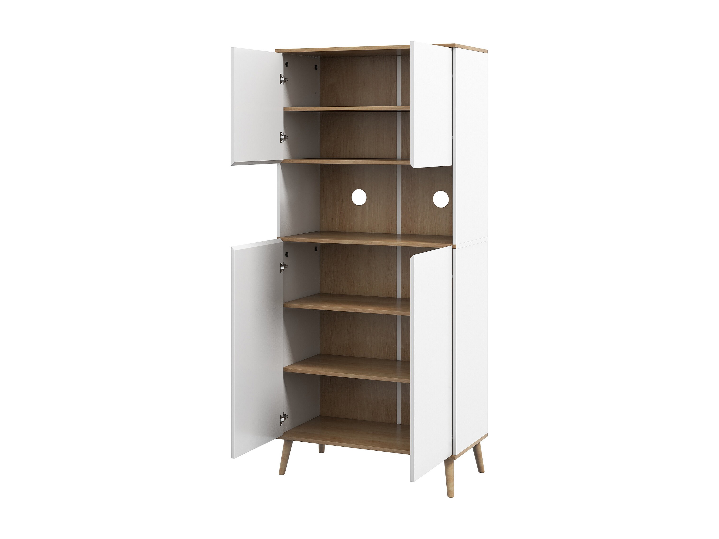 Buffet haut 4 portes 3 étagères réglables grande niche bois pin panneaux blanc aspect chêne clair