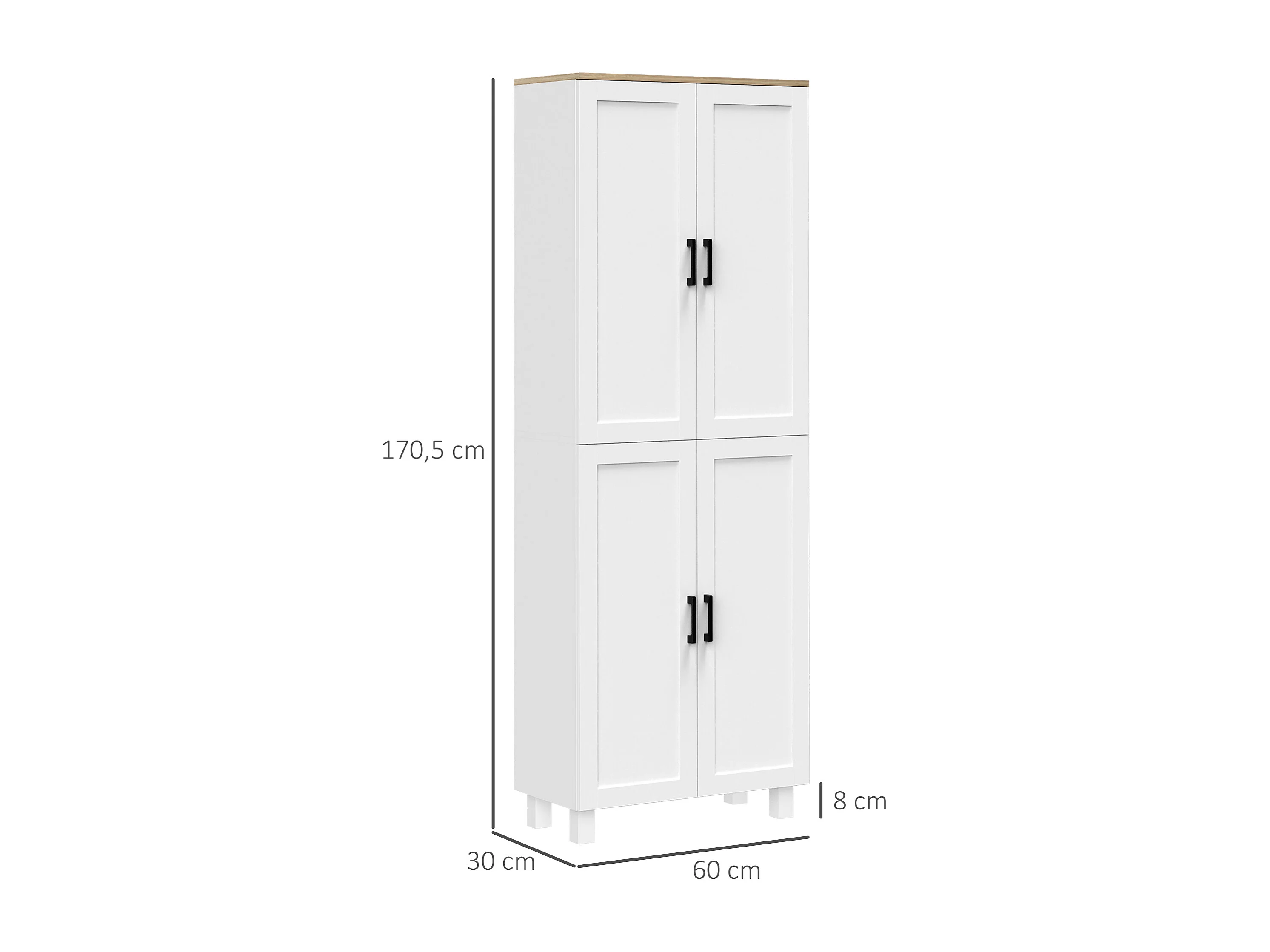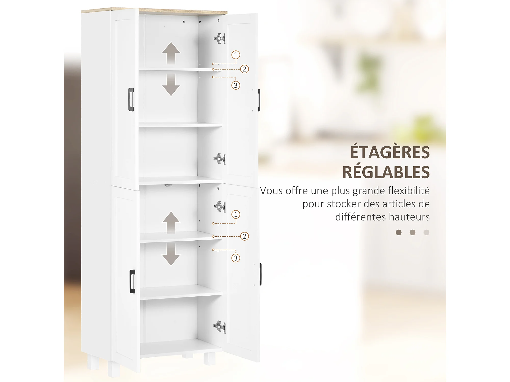 Buffet haut - armoire de cuisine - buffet cuisine vaisselier - 5 étagères - poignées métal noir effet bois clair blanc