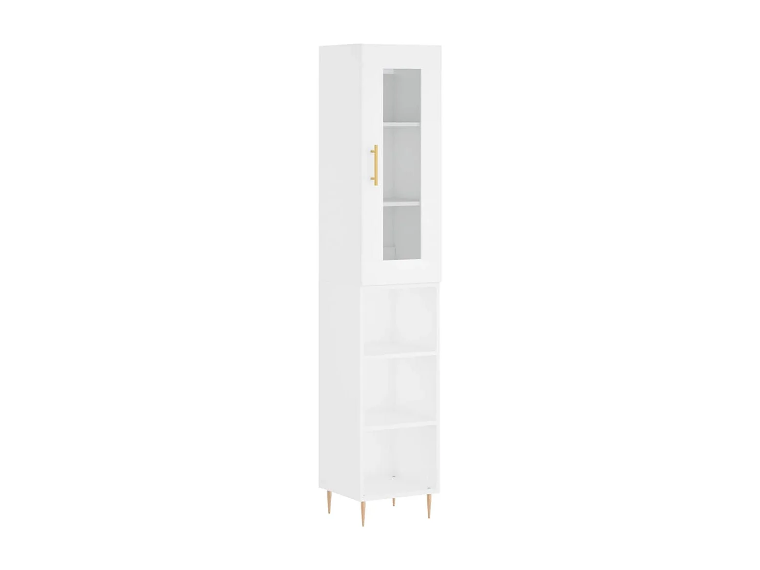 Buffet haut Blanc brillant 34,5x34x180 cm Bois d'ingénierie