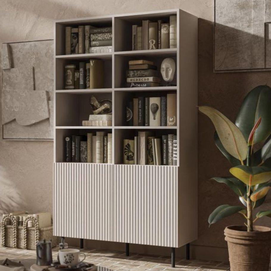 Buffet haut couleur cachemire avec 2 portes et niches de rangement ROTTERDAM