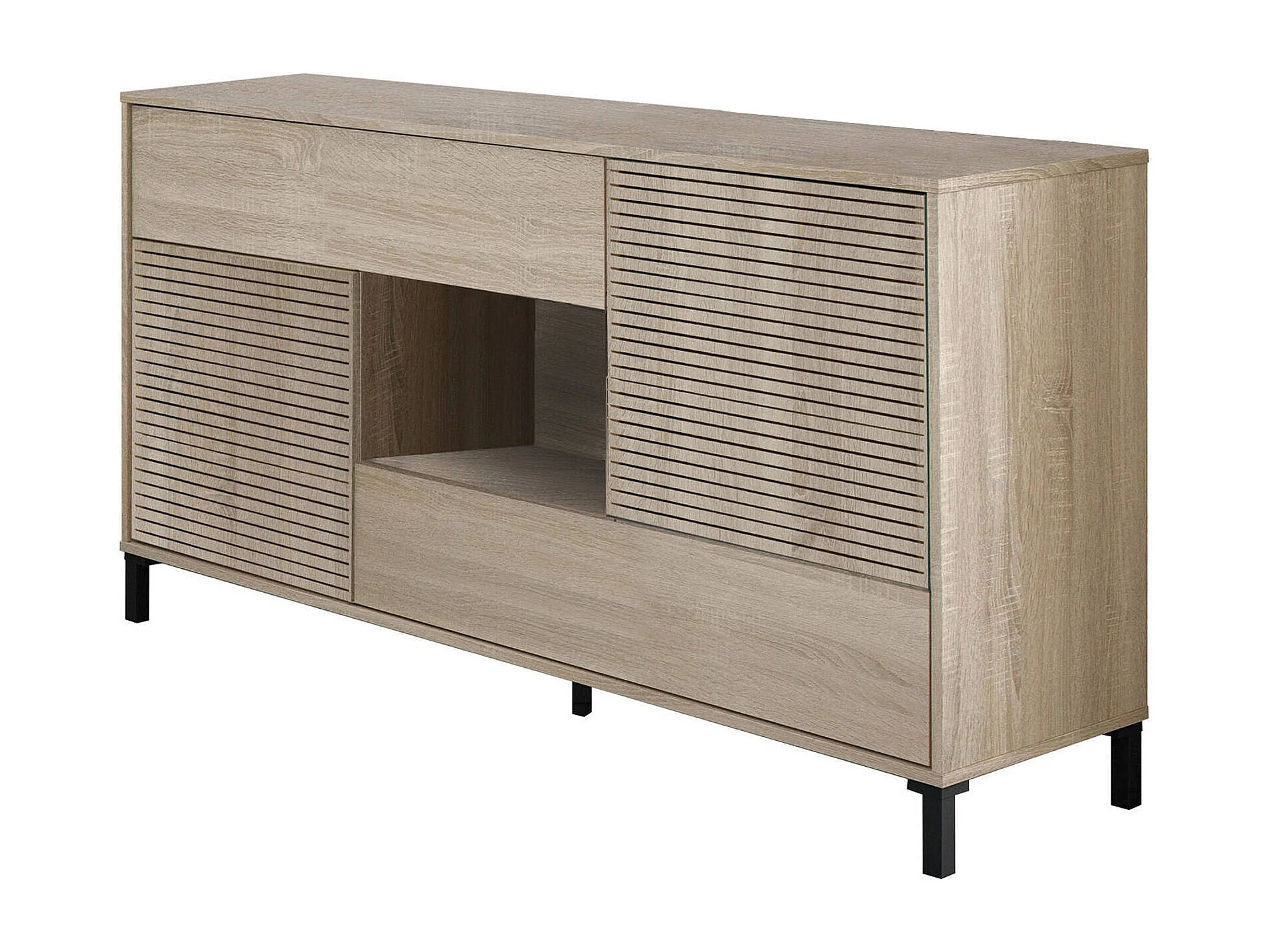 Buffet Dndo, Buffet de salon, Meuble TV, Buffet avec pieds pour salon, Armoire moderne avec 2 portes, 151x41h80 cm, Chêne