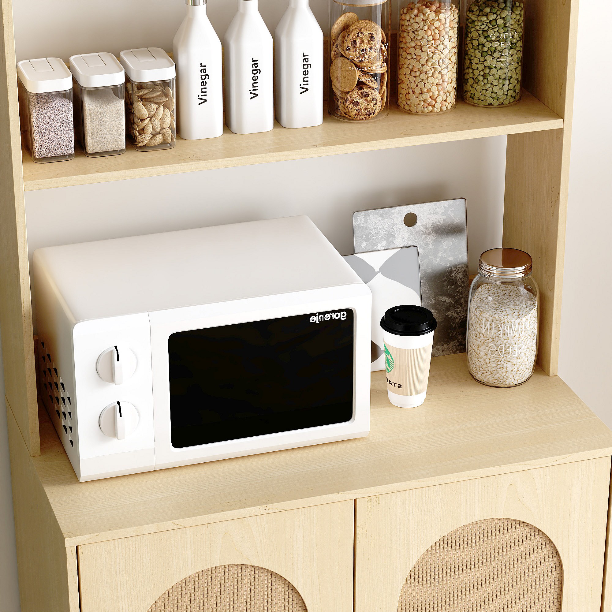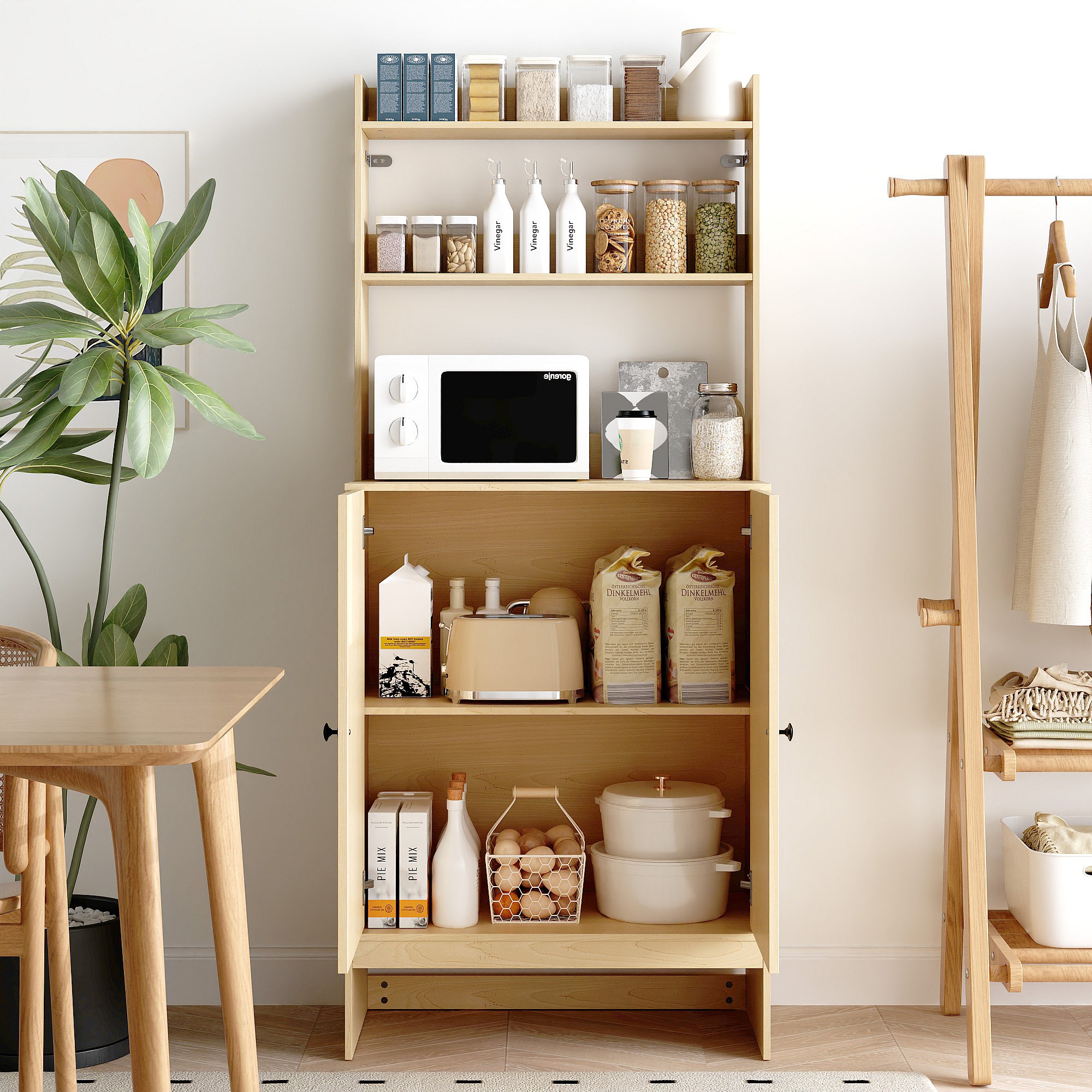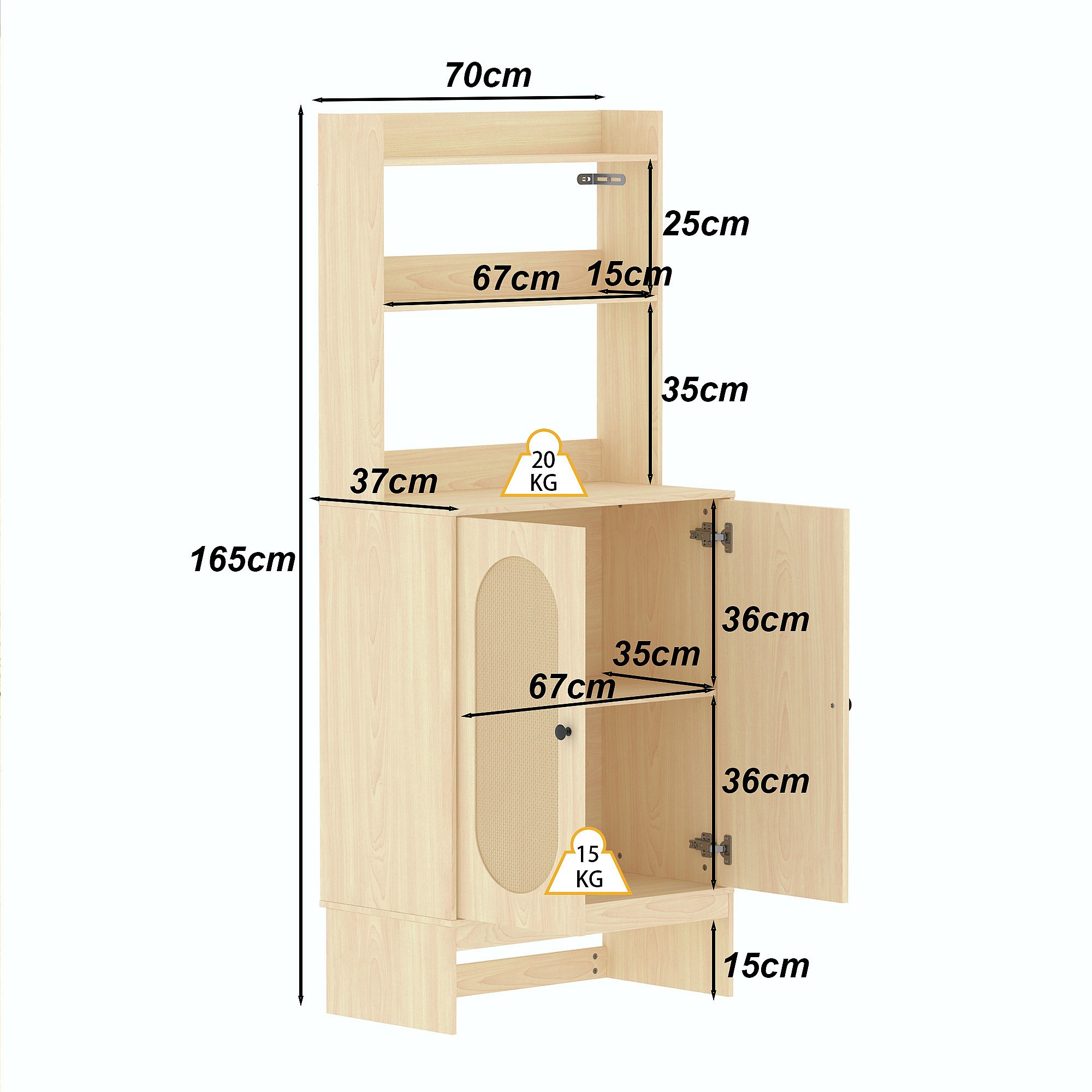 Buffet Haut de Cuisine avec Plan de Travail, Meuble de Rangement avec 2 Portes et Étagères, 70 x 37 x 165cm, Naturel
