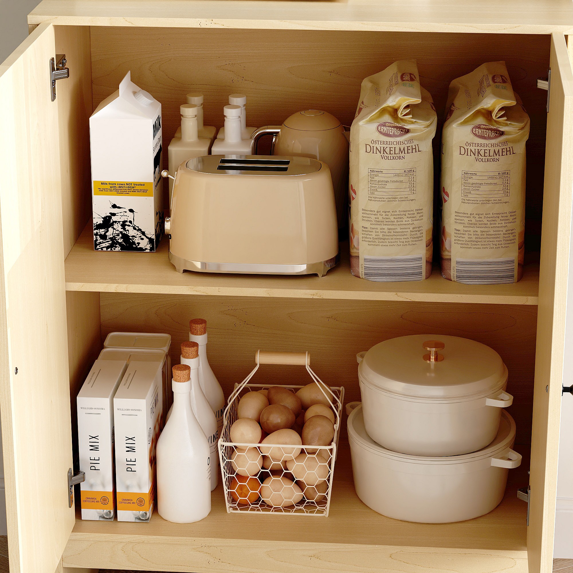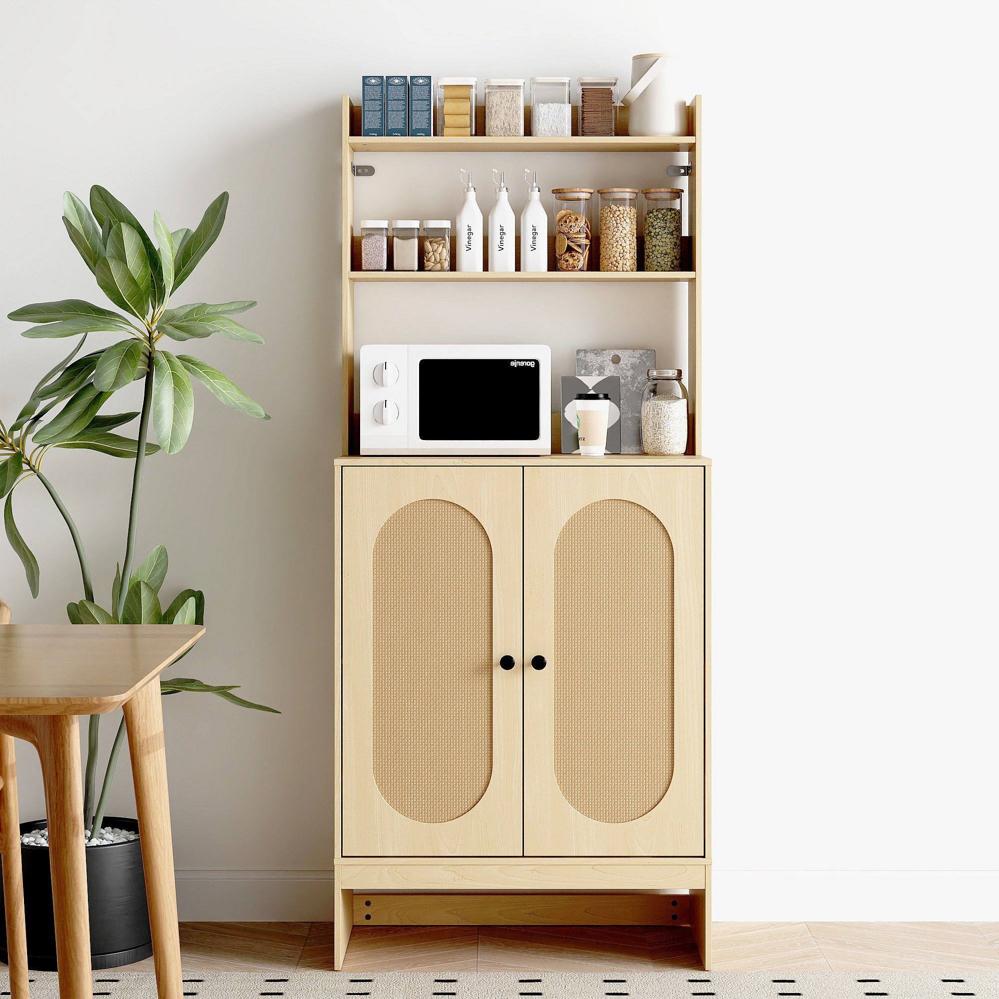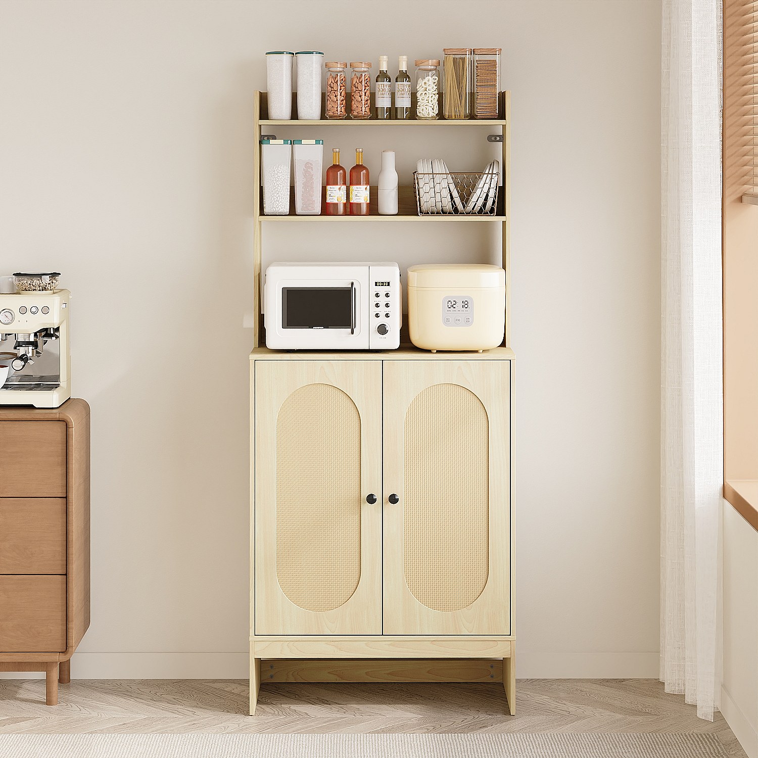 Buffet Haut de Cuisine avec Plan de Travail, Meuble de Rangement avec 2 Portes et Étagères, 70 x 37 x 165cm, Naturel
