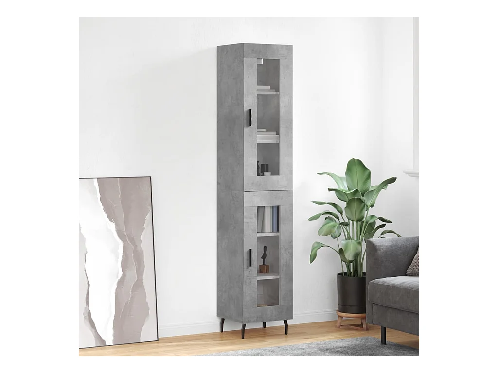 Buffet haut Gris béton 34,5x34x180 cm Bois d'ingénierie